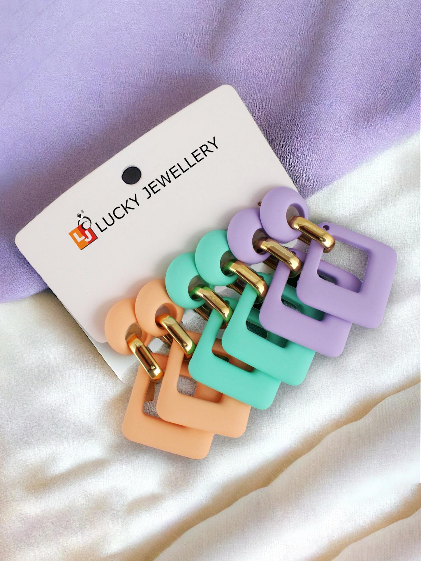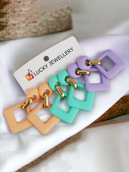 LUCKY JEWELLERY Fashion 3 Pairs Combo Set Of Latest Earrings Celebrity Inspired Stylish Trendy Multi Color Plastic Earing Chain Link Geometric Dangle Earring for Women & Girls (275-CHEX-1014-3) LUCKY JEWELLERY presents these 3 Pairs Of Stylish Designer Fancy Party Wear Square Shaped Chain Link Hoops and Dangle Hanging Earrings for Women and Girls. A designer pair of new design Earings for Women and Girls that will make you feel like a Diva. The color complements all outfits & may be worn as a statement piece to any occasion. LUCKY JEWELLERY has huge collection of latest modern Fashion and Traditional jewellery accessories. LUCKY JEWELLERY is pioneer of Imitation jewellery for women and designer traditional jhumka / jhumki , ear studs, fancy tops, traditional earrings for women , fancy ear rings and american diamond hangings Earrings for women and girls. LUCKY JEWELLERY Fashion and Traditional Jewellery give true value for your money. Buy LUCKY JEWELLERY trendy, artificial and stylish jewellery for women. These are also ideal for birthday gifts for girls, Wife, wedding gifts and anniversary gifts. What You Get:- 6N (3 Pair). Combo Of 3 Pair Earrings. Combo Of 3 Pair Of Square Shaped Chain Link Dangle Earrings.