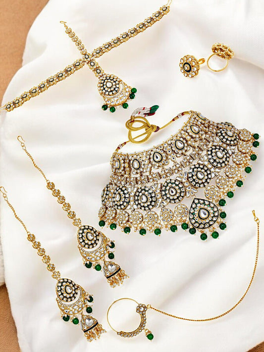Traditional Designer Kundan Stone Green Meenakari Choker Bridal Set