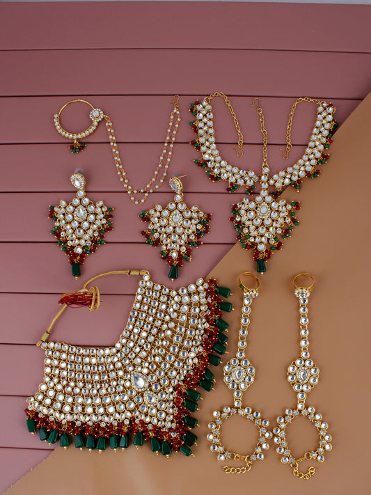 Traditional Stone Bridal Set 9 Pcs. For Girls & Women