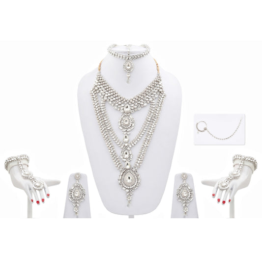 Platinum Plated Silver Polish Dulhan Bridal Jewelry Set 8 Pcs.