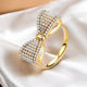 18K Gold-Plated Adjustable Finger Rings | Elegant Bow Design Ring Studded with Beads & Stones (350-CHFA-1046)