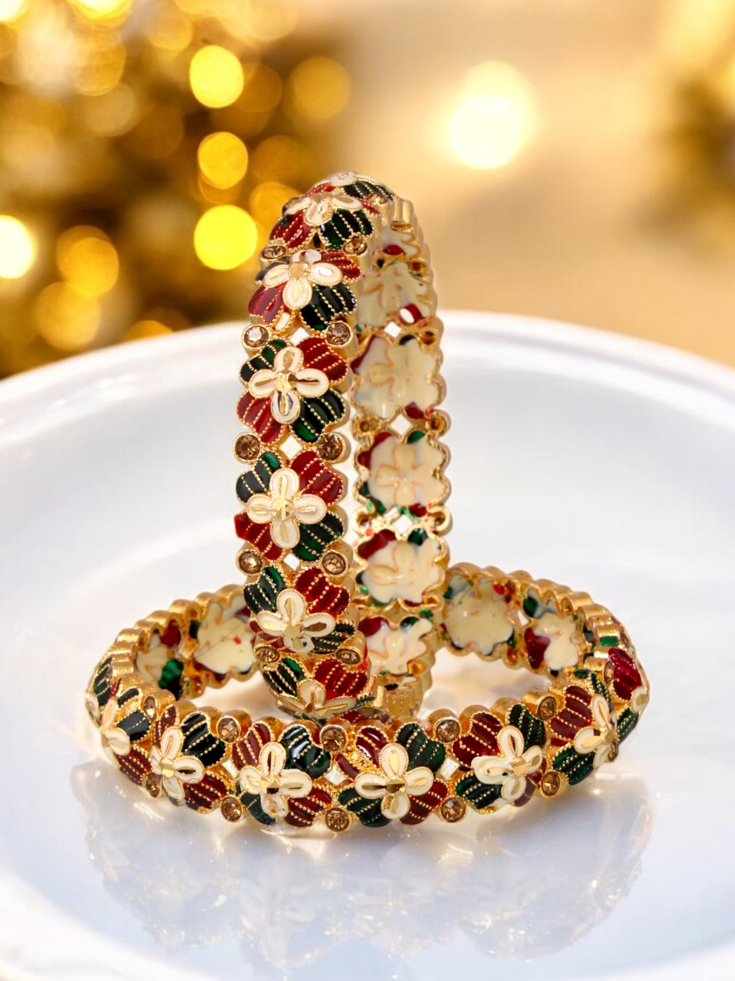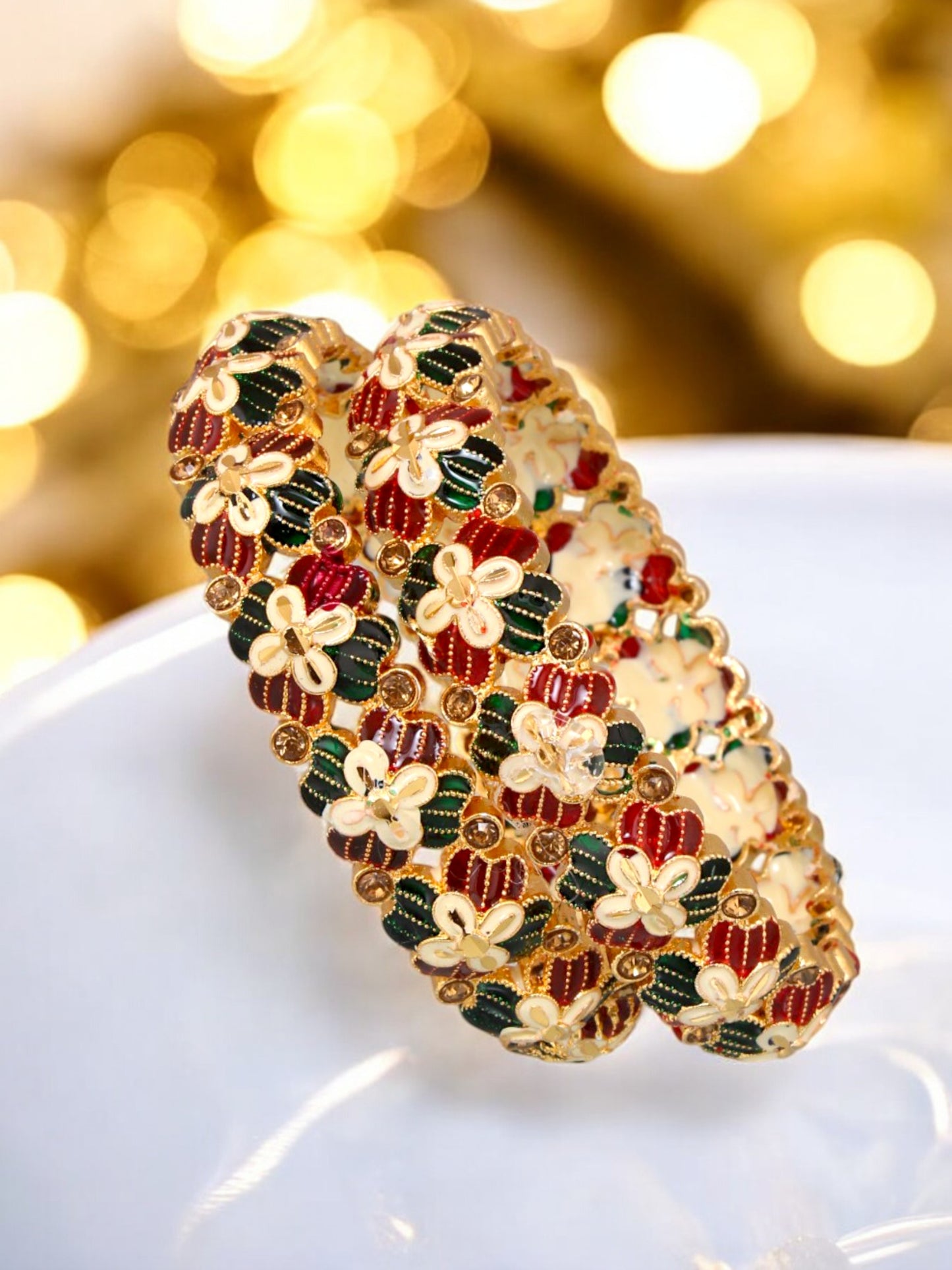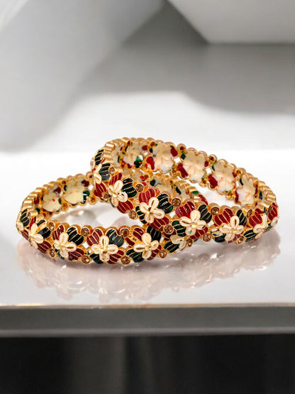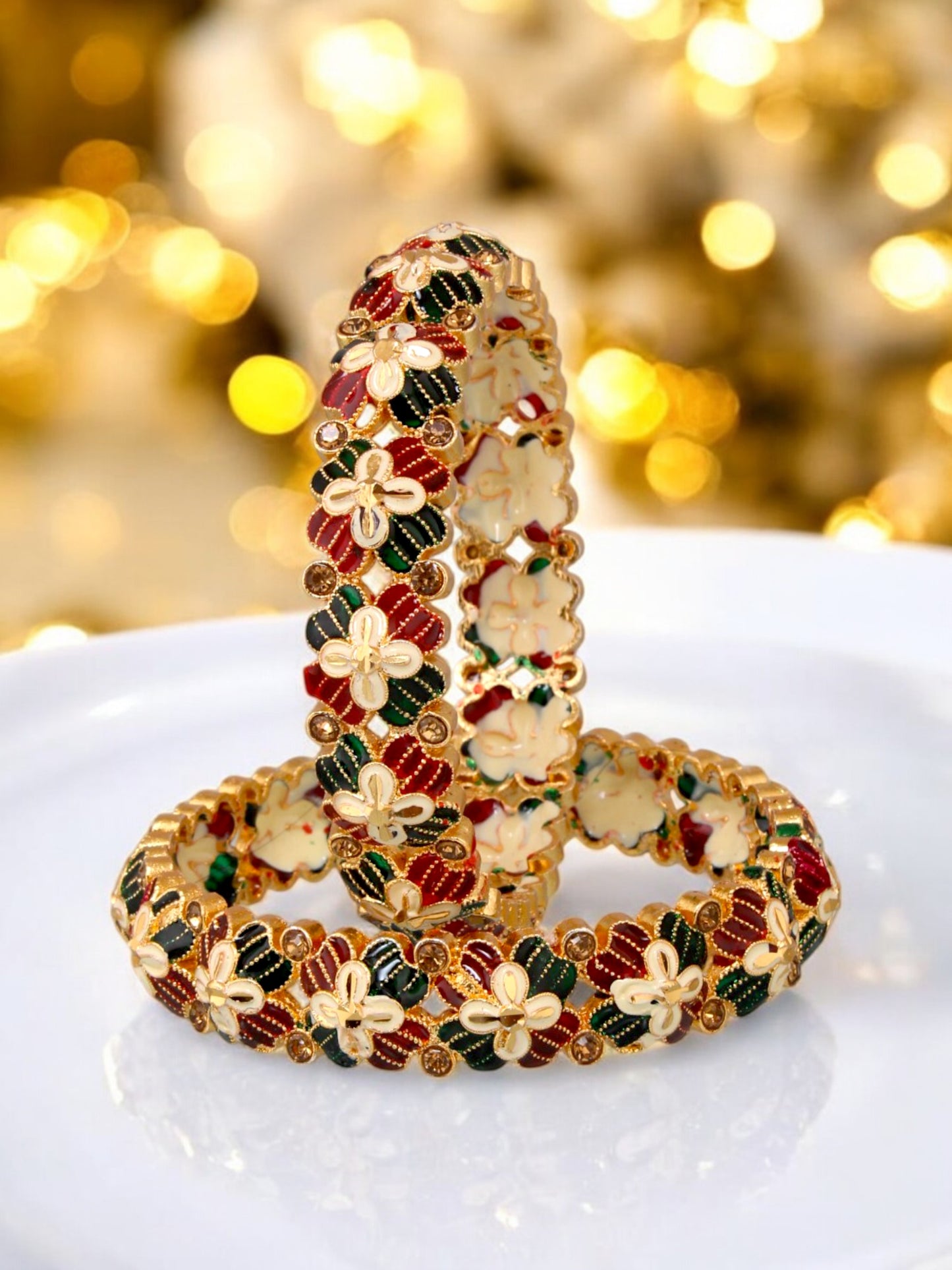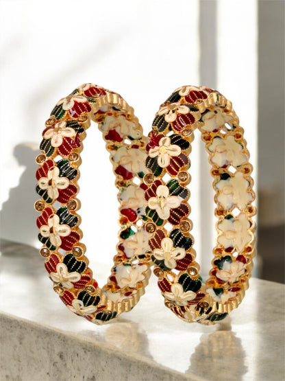 18k One Gram Gold Plated Traditional Designer Pack of 2 Bangle Set For Women