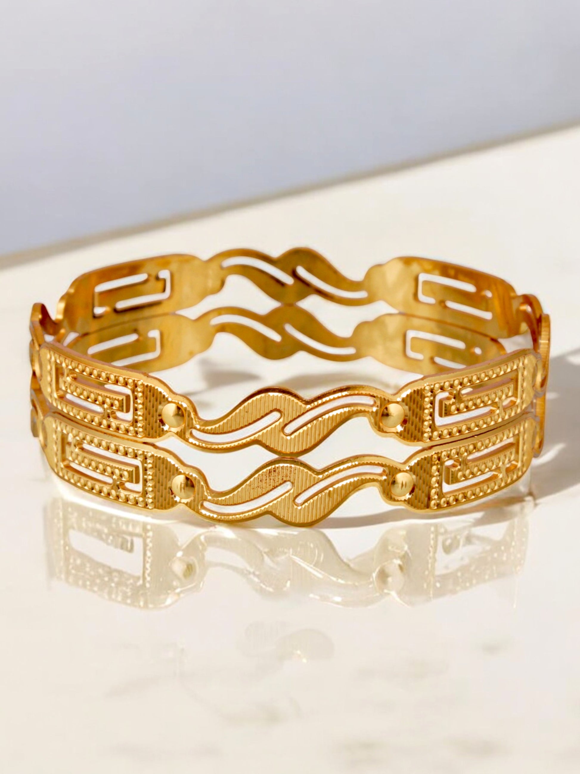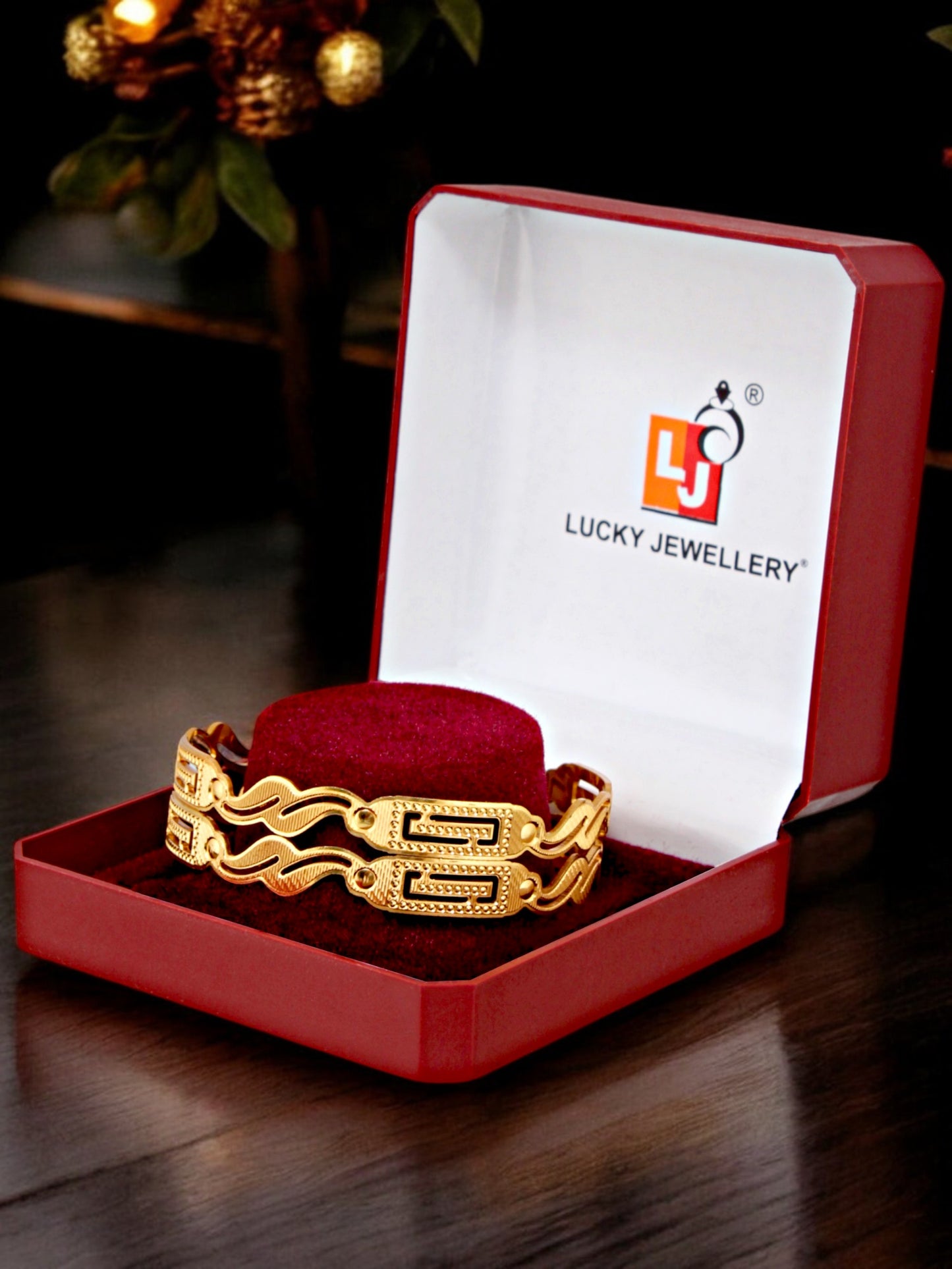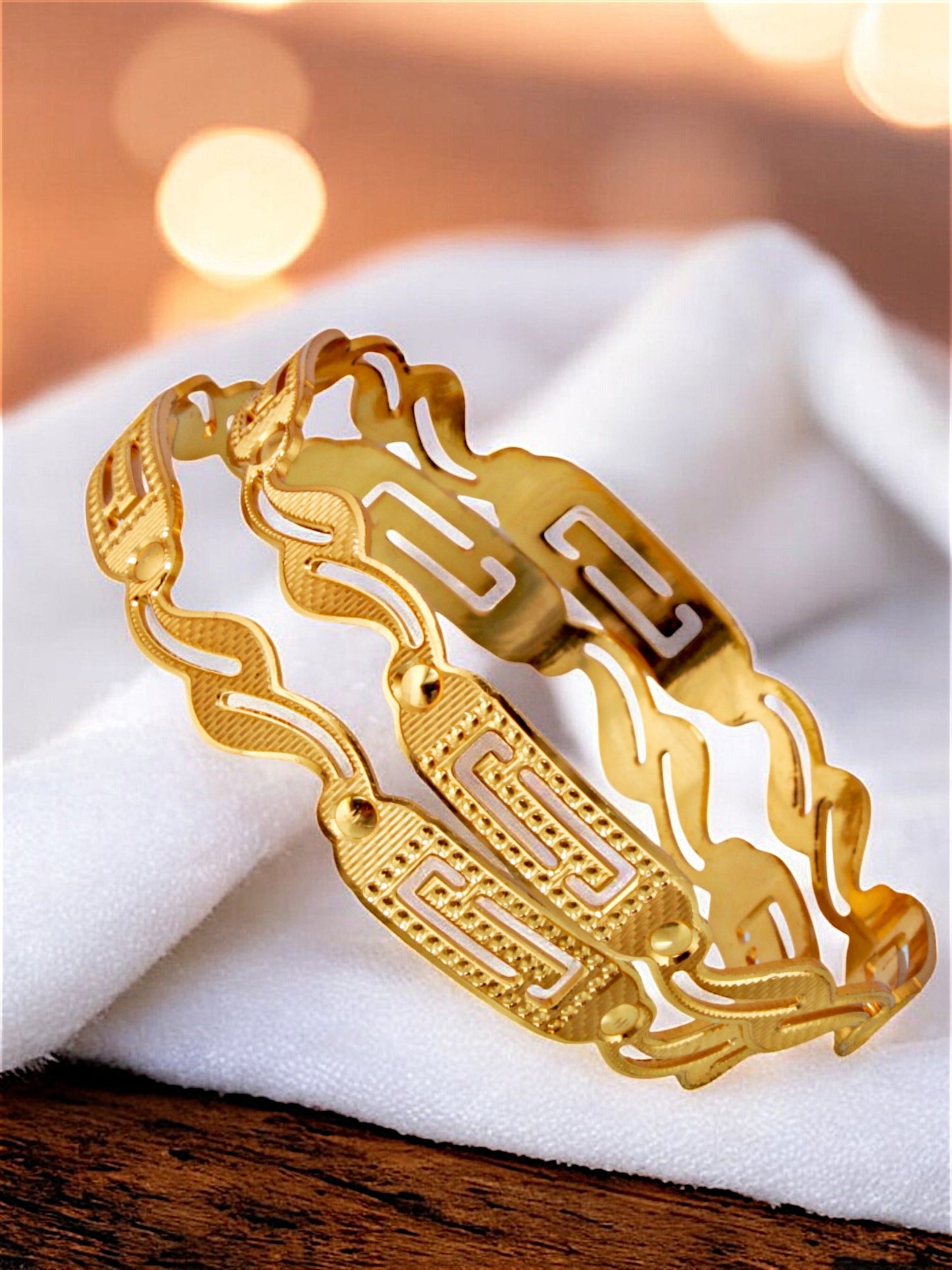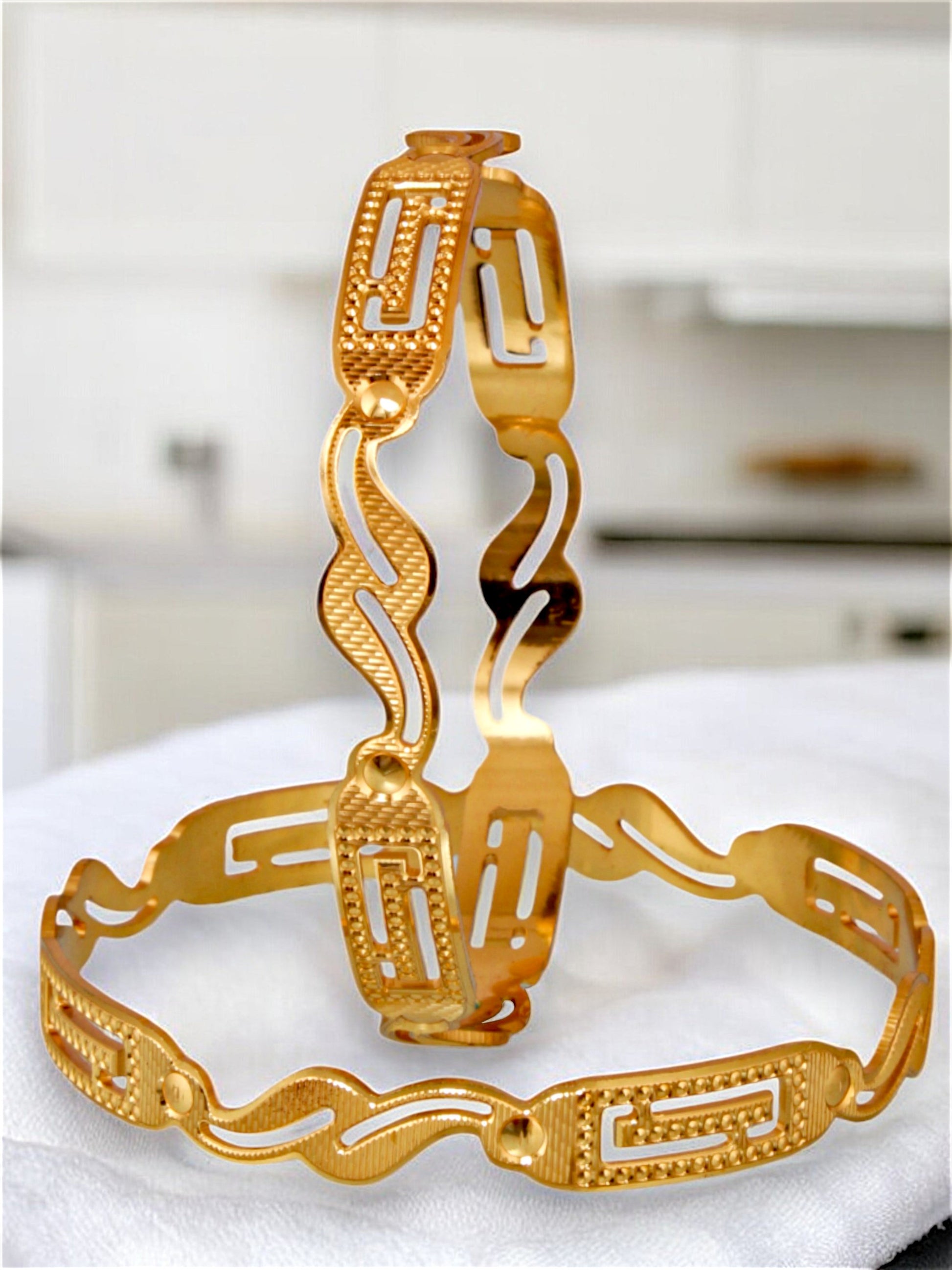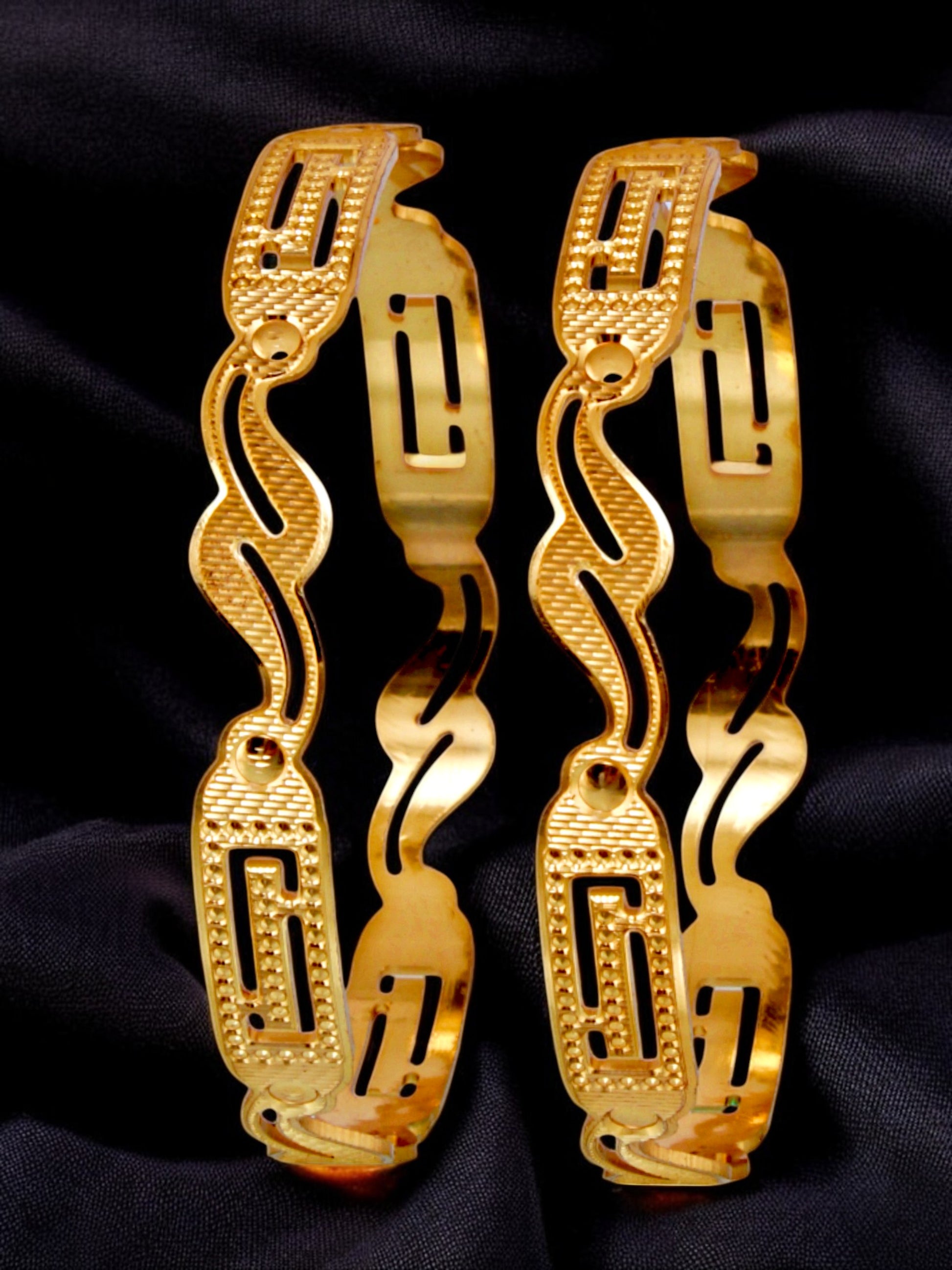 18k One Gram Gold Plated Traditional Designer Pack of 2 Bangle Set For Women
