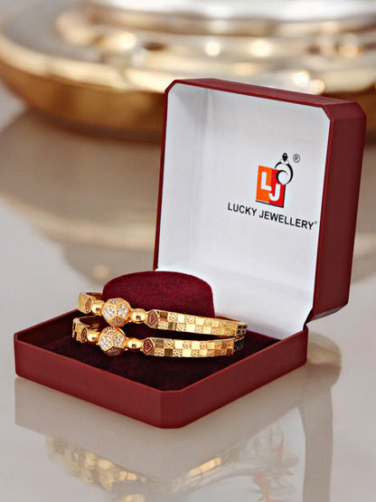 18k One Gram Gold Plated Traditional Designer Pack of 2 Bangle Set For Women
