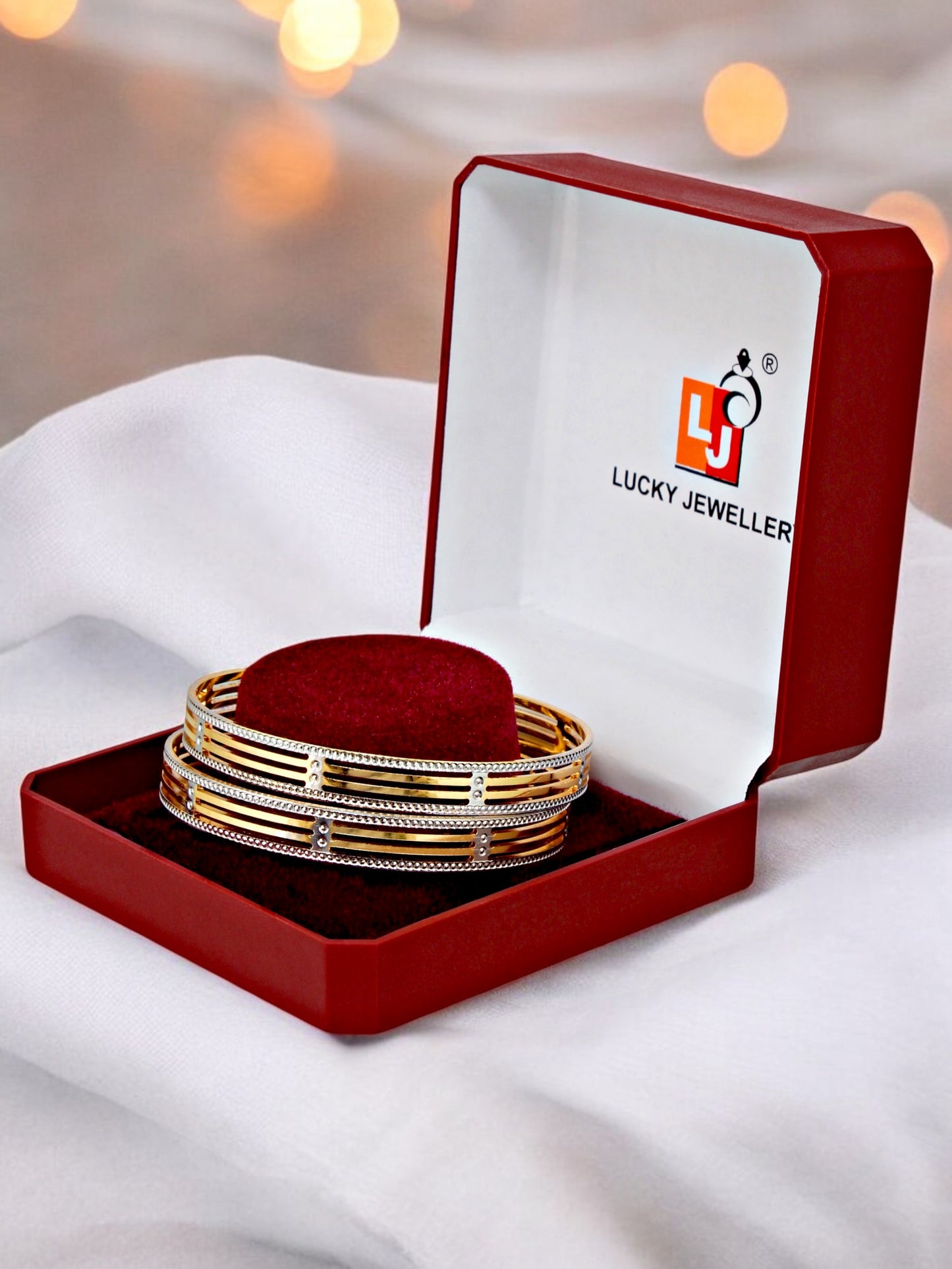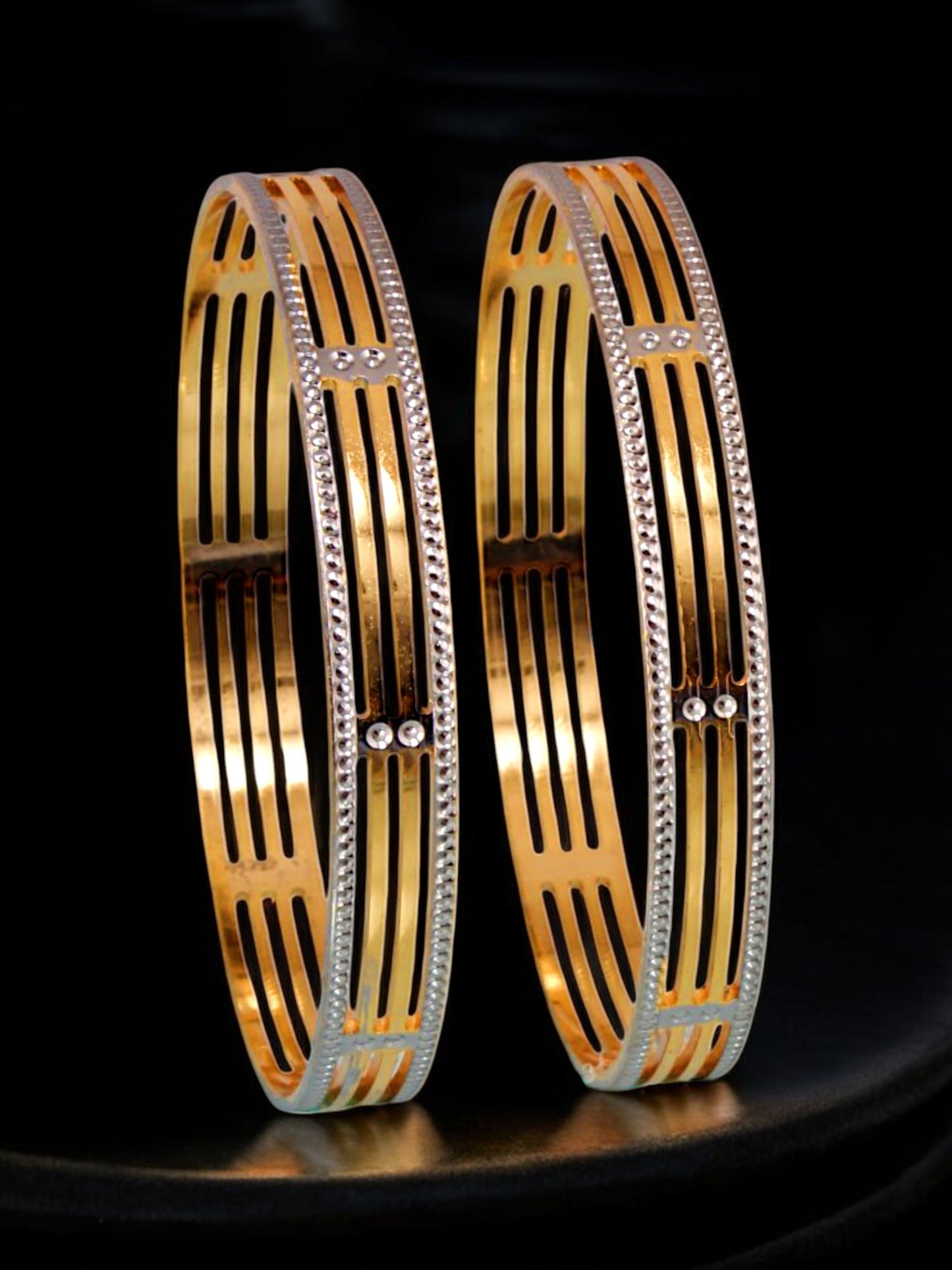18k One Gram Gold Plated Traditional Designer Pack of 2 Bangle Set For Women