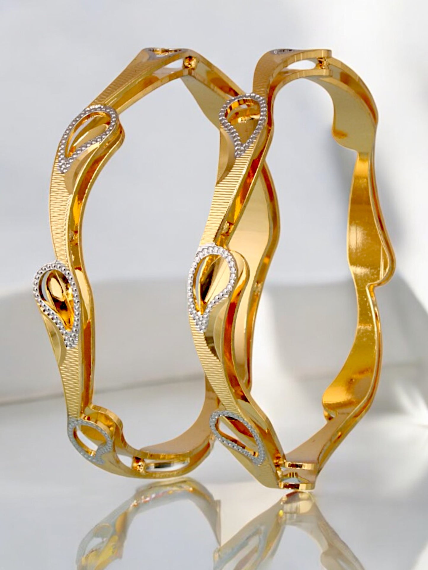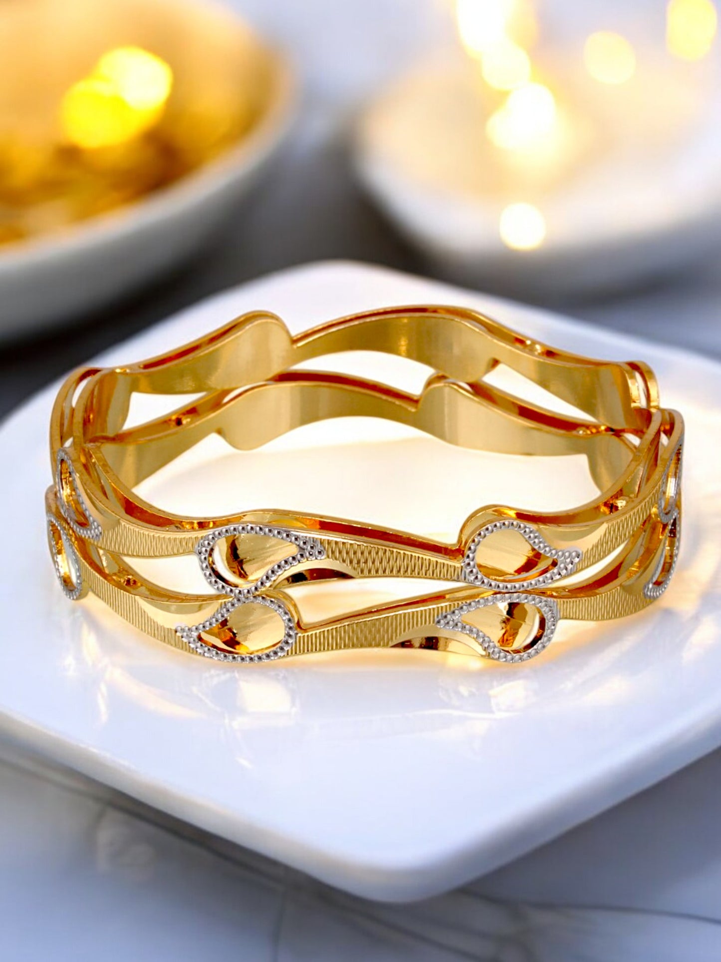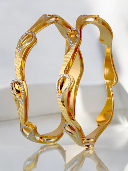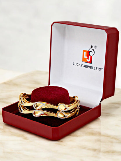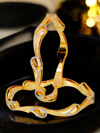 18k One Gram Gold Plated Traditional Designer Pack of 2 Bangle Set For Women