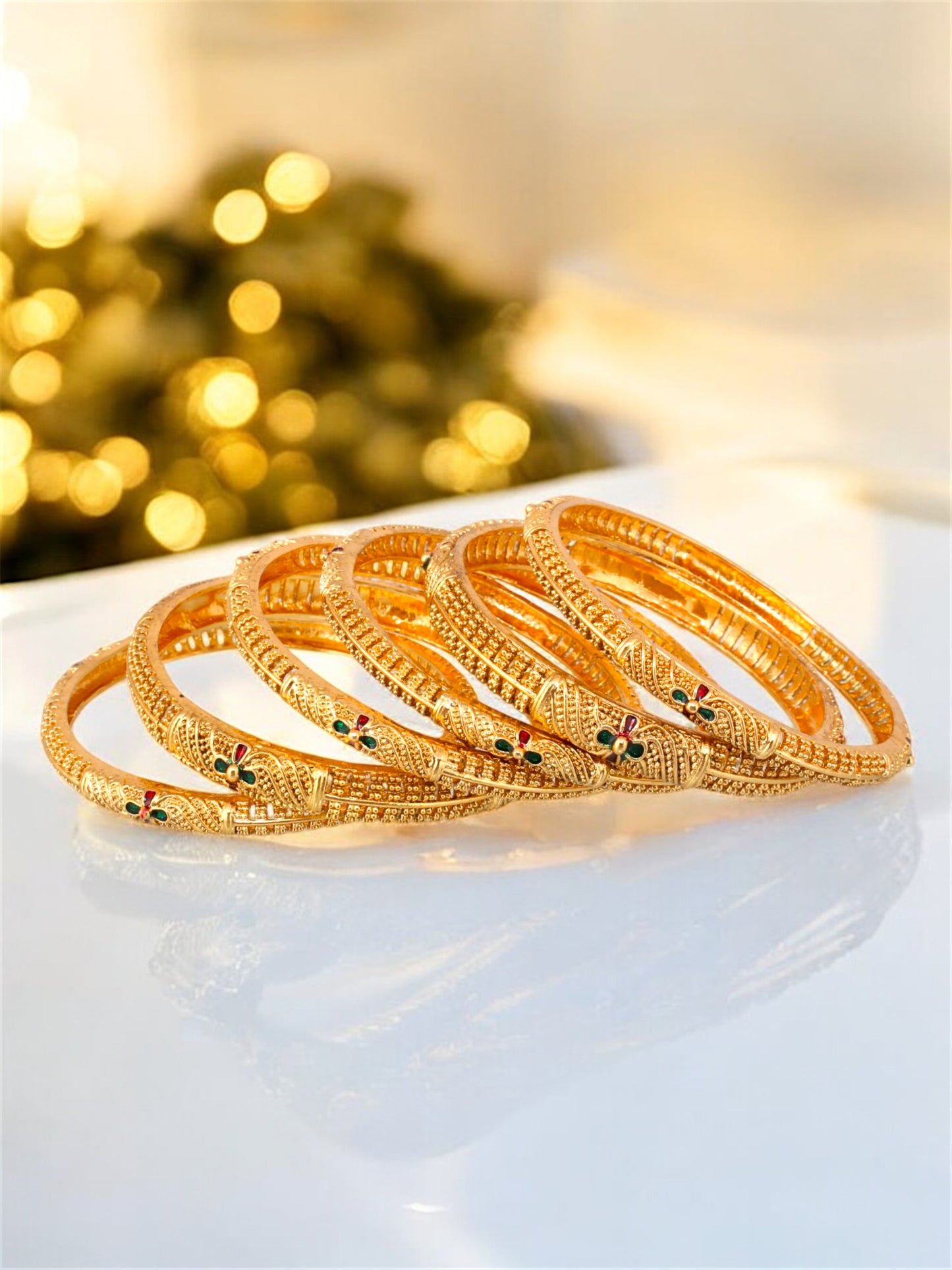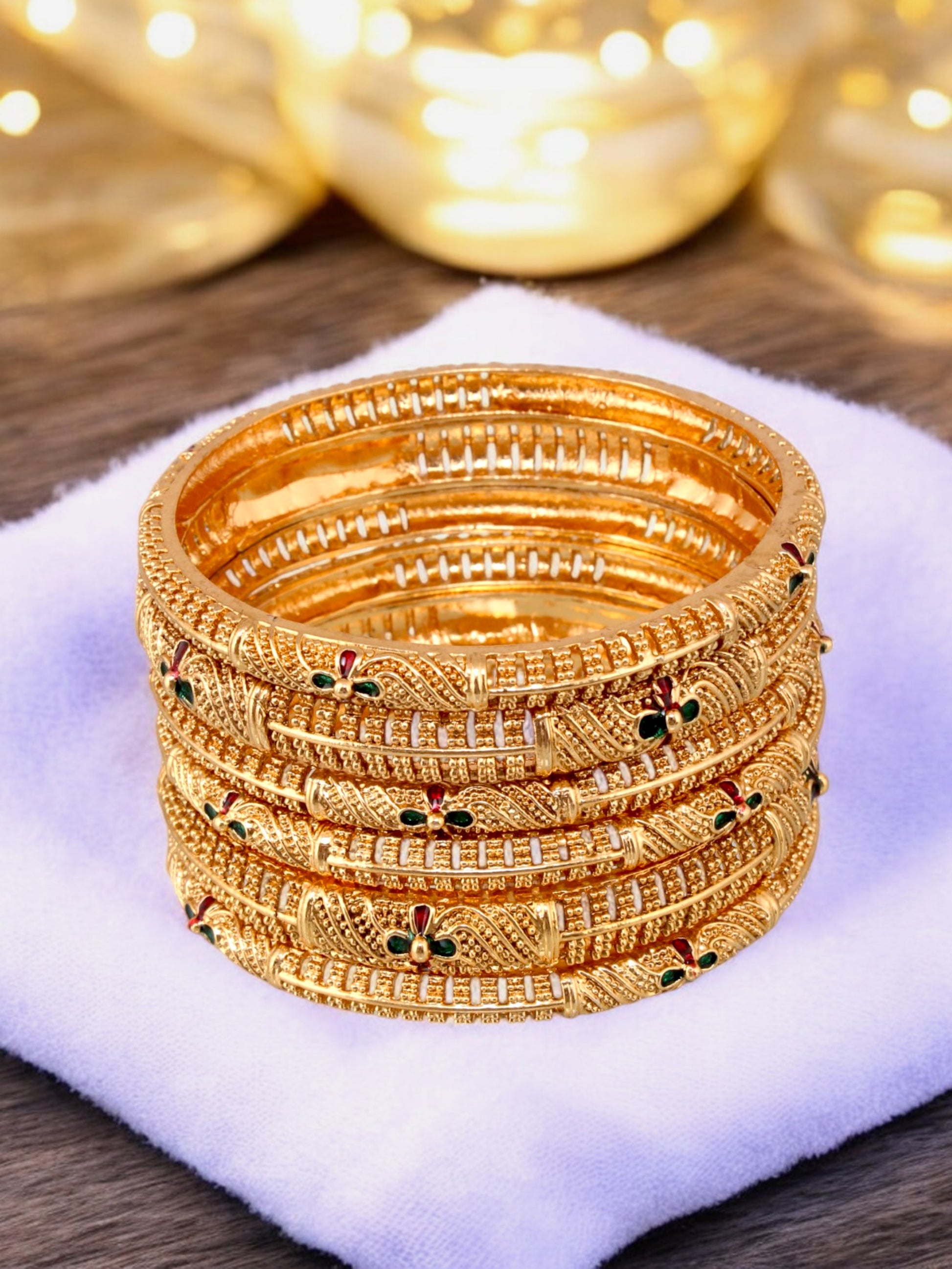 18k One Gram Gold Plated Traditional Designer Pack of 6 Bangle Set For Women