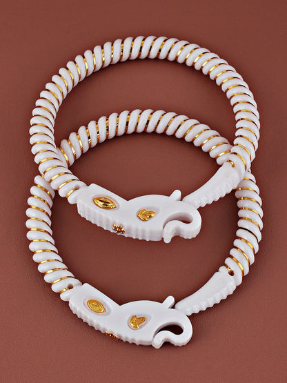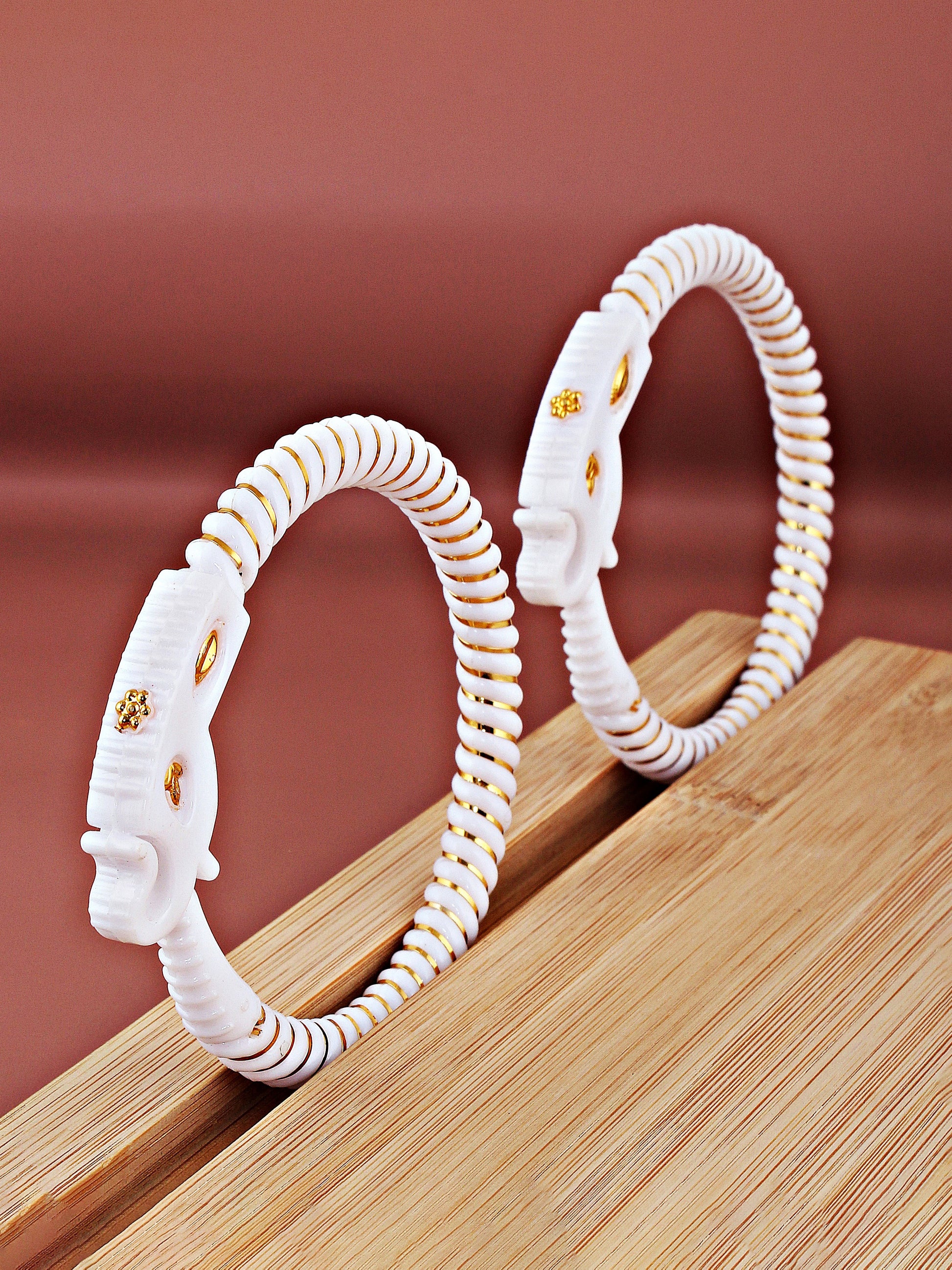 Lucky Jewellery Designer Pair of Bengali Bangle in White Color Traditional Ethnic 2 Pcs. Bangles set for Women This pair of Bangles will make you Stunning and Graceful look. The Bangles are delicately studded with sparkling crystal stone. Adorn it with your favourite formal attire to enhance your overall looks. This Bangles set is studded with finest quality of coloured that gives render amazing look.