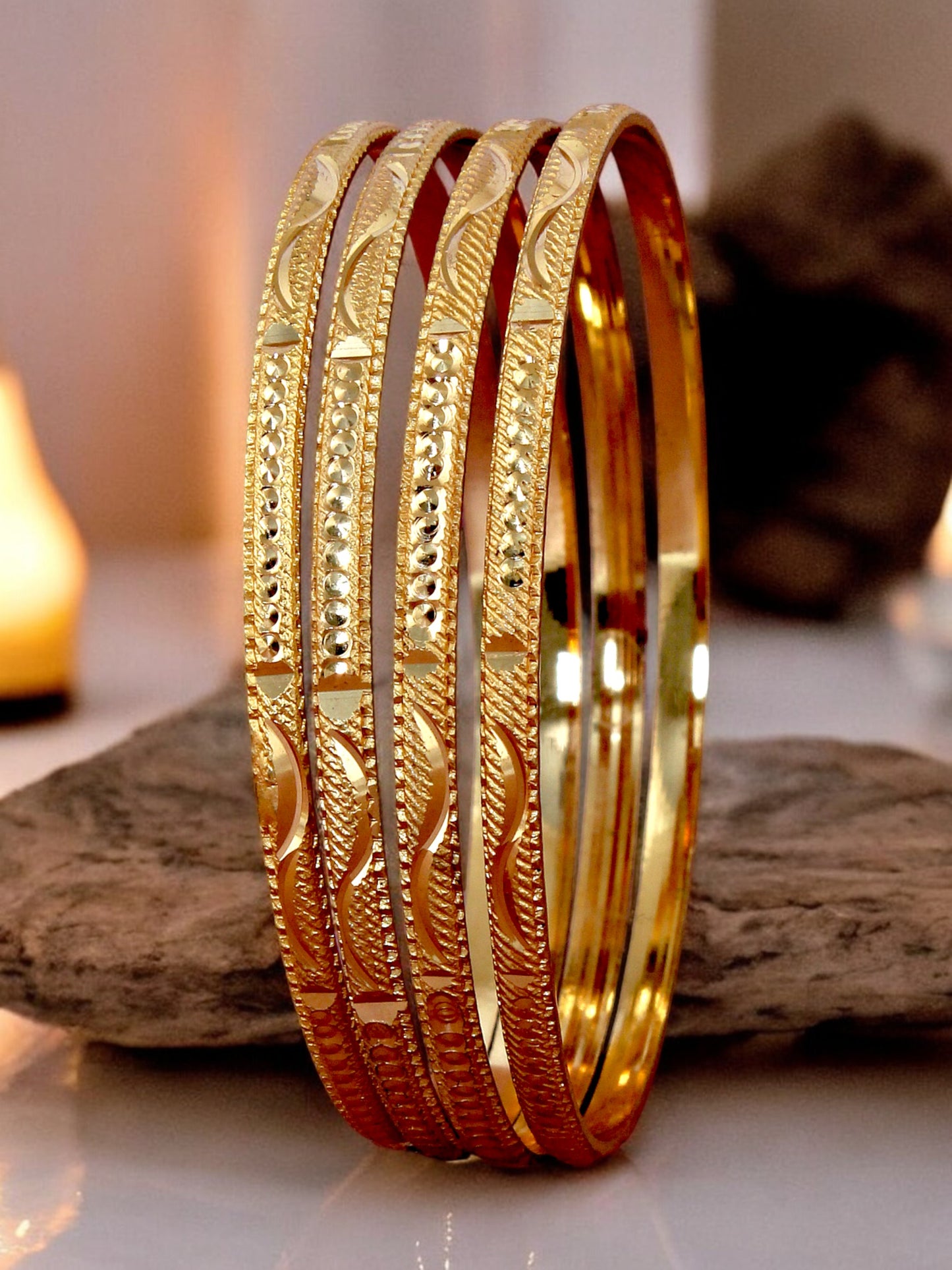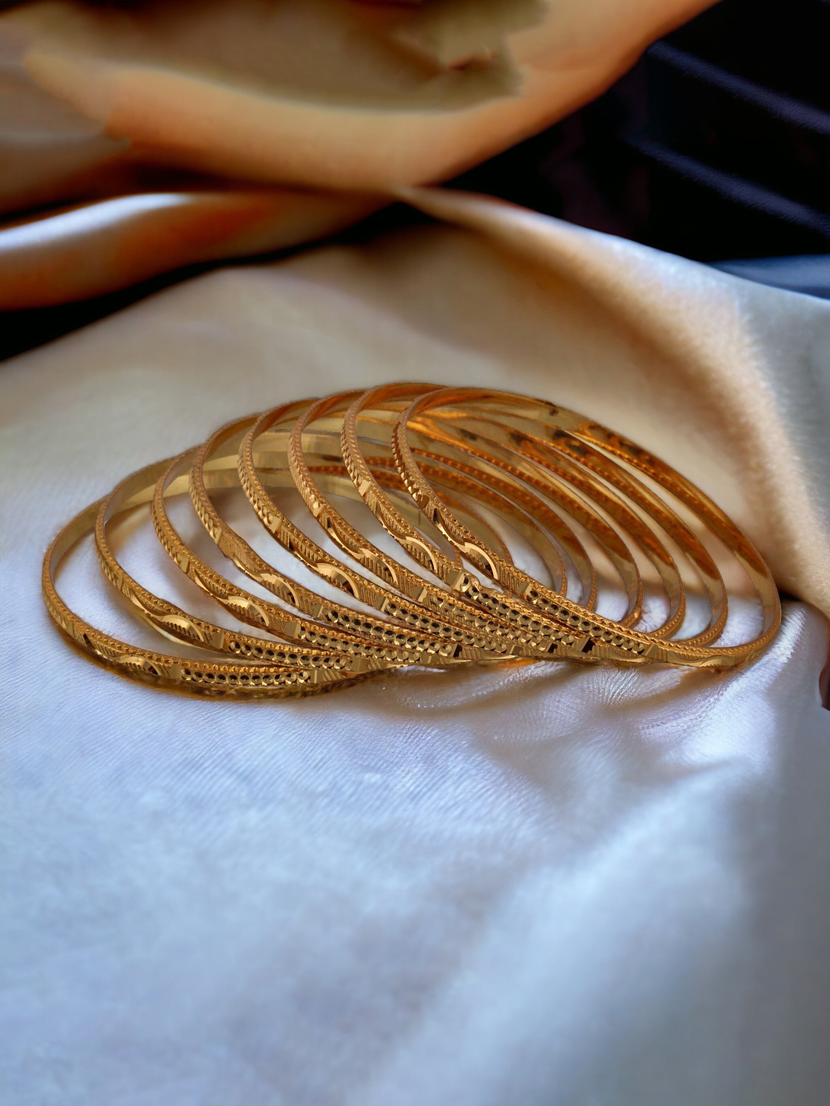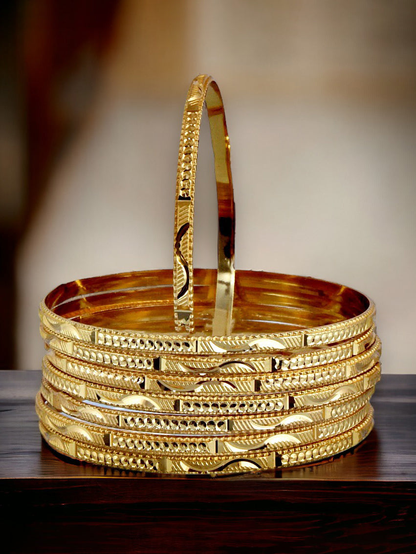 LUCKY JEWELLERY Gold Plated Designer Golden Color Traditional Ethnic 8 Pcs. Bangles Set for Women This pair of Bangles will make you Stunning and Graceful look. The Bangles are delicately studded with sparkling crystal stone. Adorn it with your favourite formal attire to enhance your overall looks. This Bangles set is studded with finest quality of coloured that gives render amazing look.