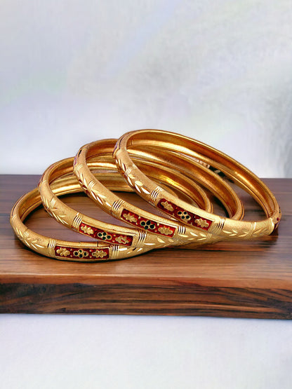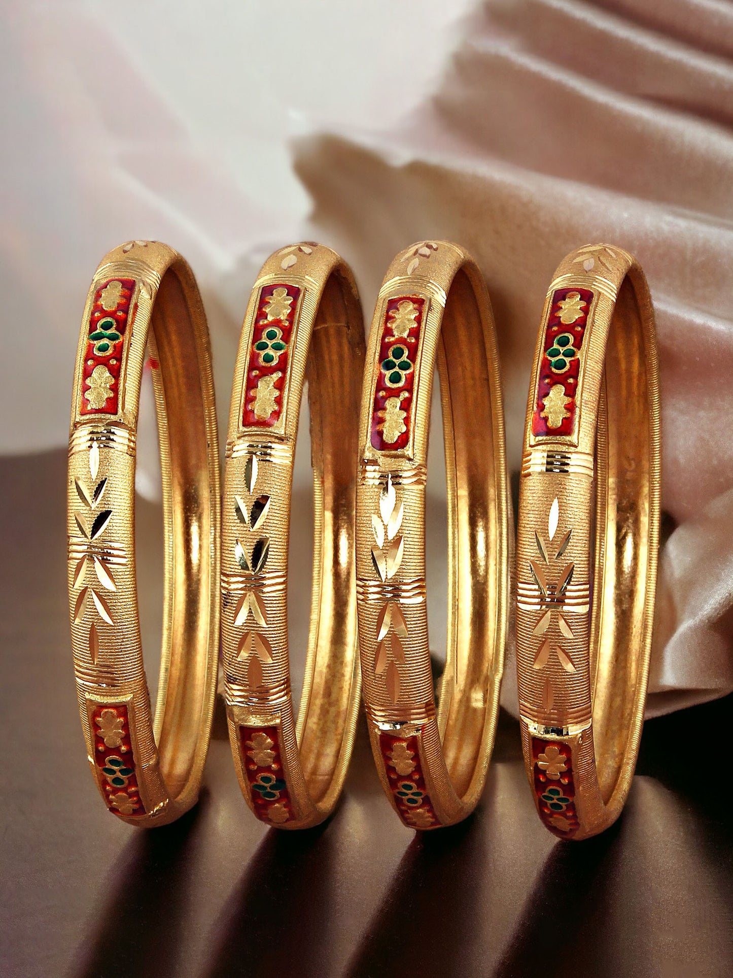 LUCKY JEWELLERY Gold Plated Designer Golden Color Traditional Meenakari Ethnic 4 Pcs. Bangles Set for Women This pair of Bangles will make you Stunning and Graceful look. The Bangles are delicately studded with sparkling crystal stone. Adorn it with your favourite formal attire to enhance your overall looks. This Bangles set is studded with finest quality of coloured that gives render amazing look.