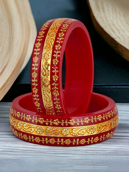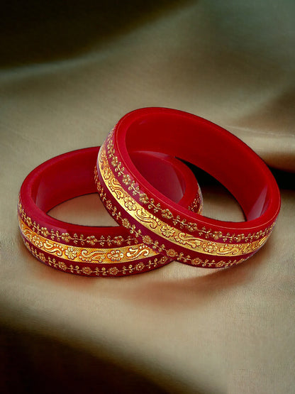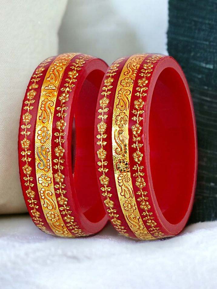 LUCKY JEWELLERY Gold Plated Floral Design Red Color Traditional Ethnic 2 Pcs. Bangles Set for Women This pair of Bangles will make you Stunning and Graceful look. The Bangles are delicately studded with sparkling crystal stone. Adorn it with your favourite formal attire to enhance your overall looks. This Bangles set is studded with finest quality of coloured that gives render amazing look.