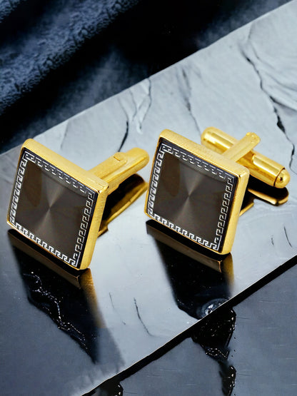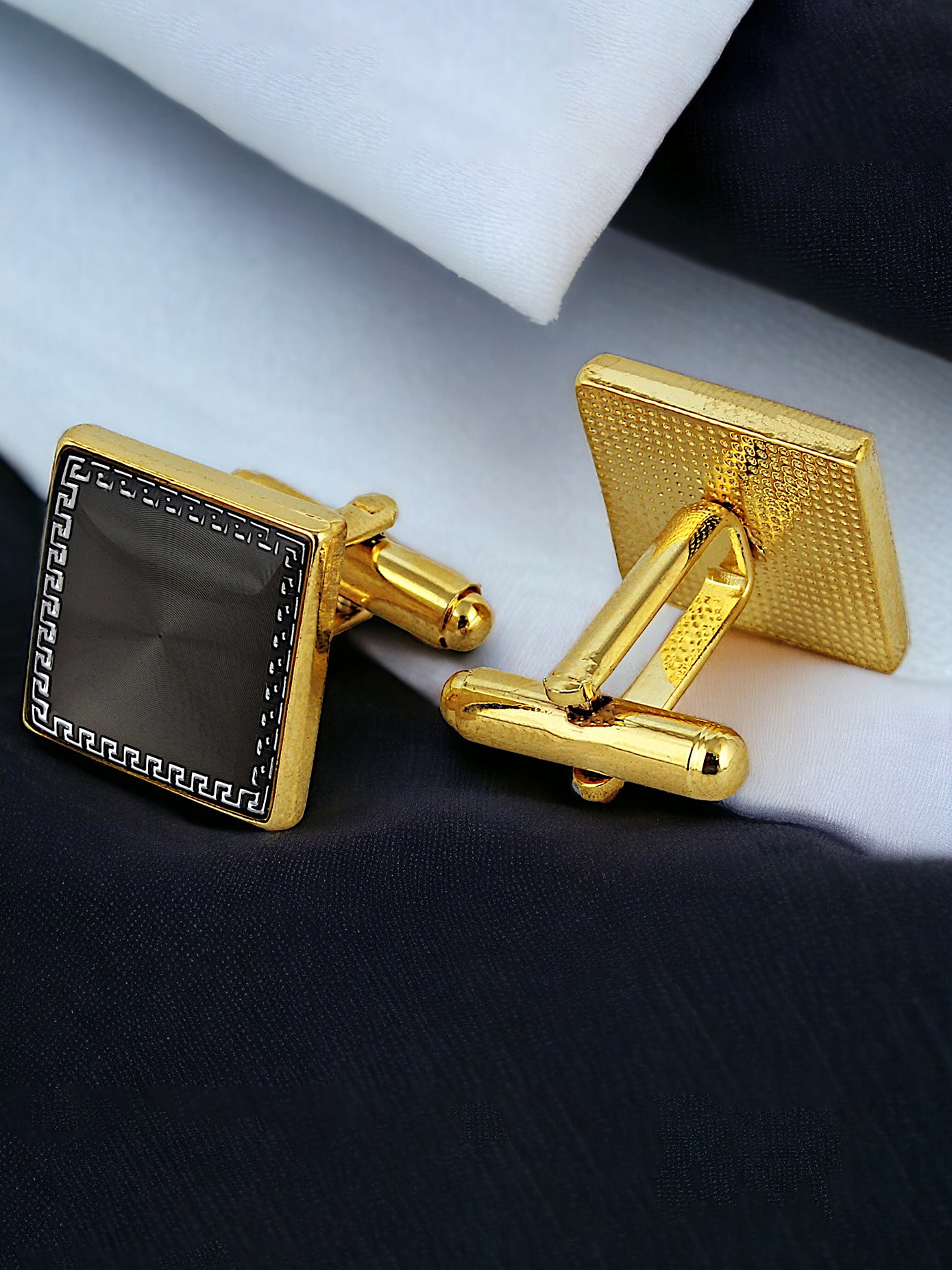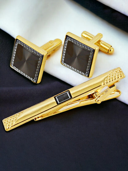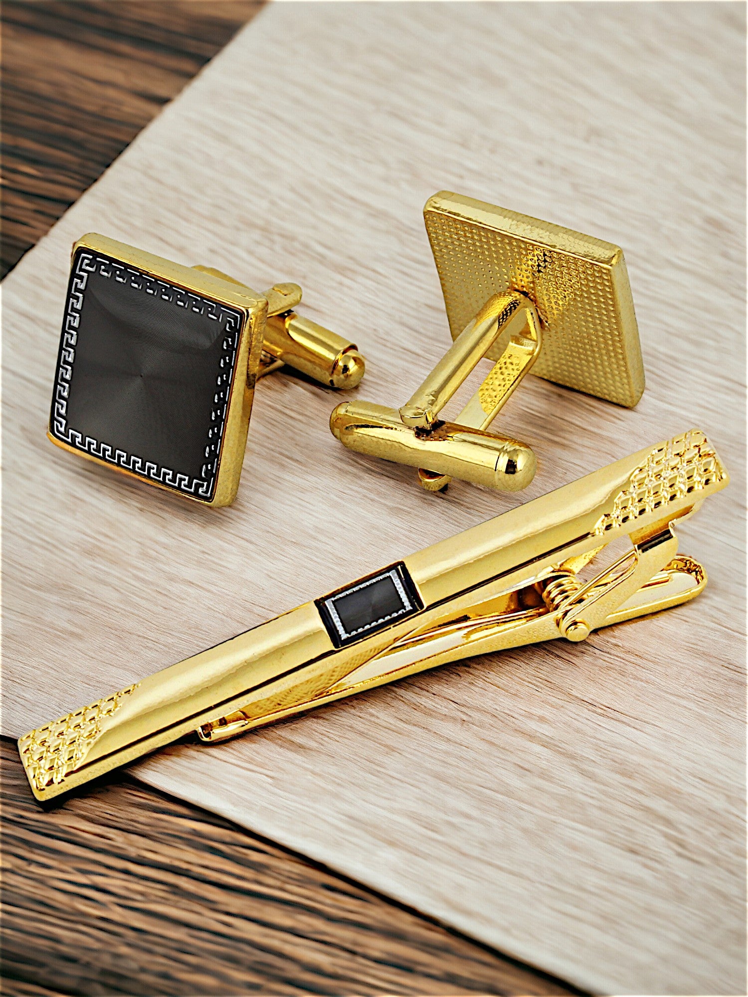 Lucky Jewellery Men Jewelry Gold Plated Black Color Cufflink Formal Sleeve Button Cuff Shirt Button, Suit, Blazer Cufflinks and Tie Pin Combo Gift Set For Men Cufflinks and tie pins are small accessories that add style and polish to a man's outfit. Cufflinks fasten the cuffs of a dress shirt, coming in various designs from classic to modern. Tie pins keep a necktie in place while also adding a touch of sophistication. Both accessories come in different materials and styles, allowing men to express their individuality and enhance their formal attire with ease.