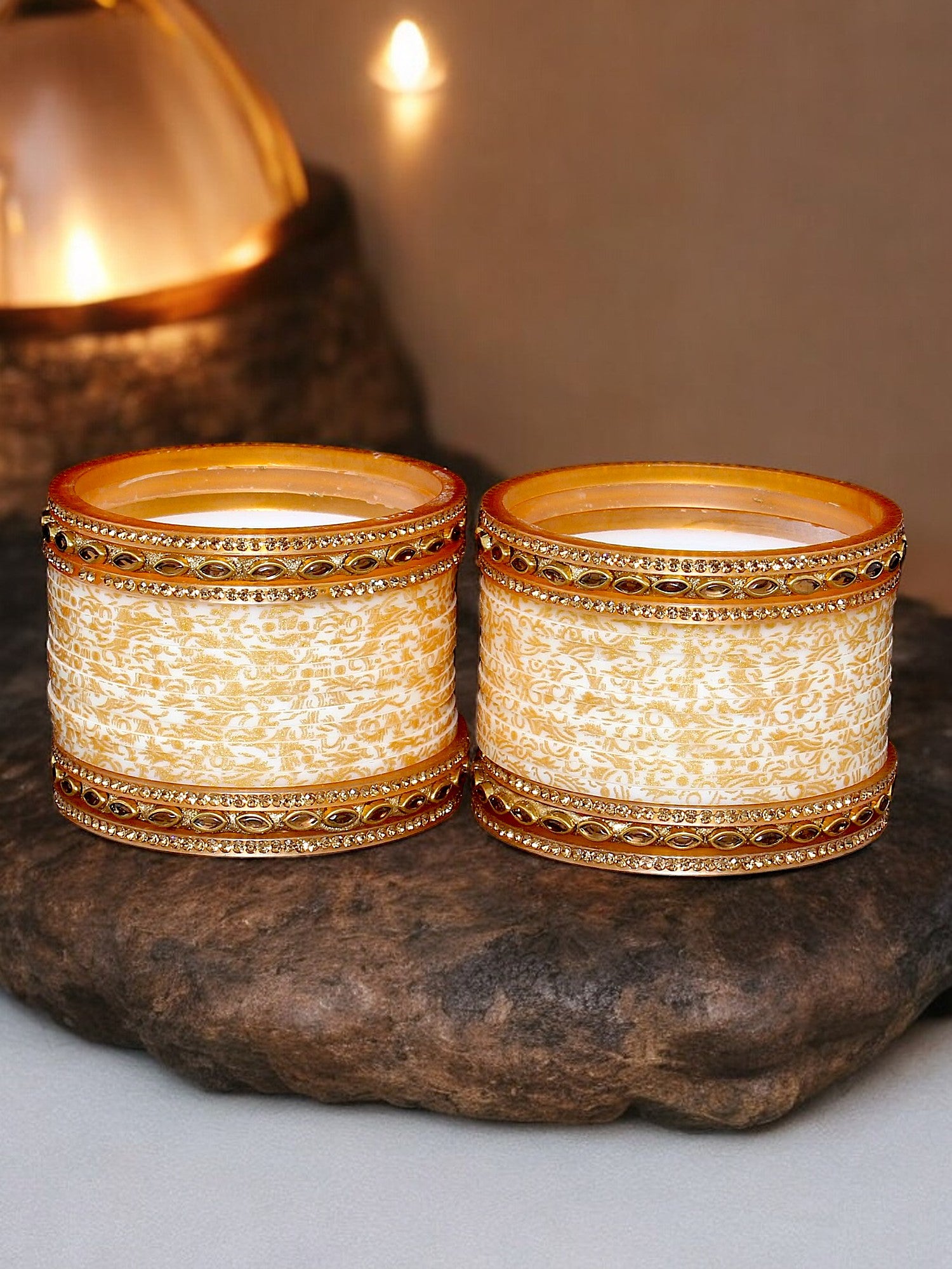 Lucky Jewellery Bridal Bangle Set Wedding Punjabi Chuda Designer Chura CZ Stone with Kundan Stone Cream Color Small Size Choora for Women Celebrate your special day with the timeless elegance of our Bridal Punjabi Chura. This stunning set of traditional red bangles, adorned with intricate, symbolizes prosperity and marital bliss. Each bangle is crafted with meticulous attention to detail, blending classic artistry with modern flair to create a truly unique accessory. Perfectly capturing the essence of Punjabi heritage, this chura will not only enhance your bridal ensemble but also serve as a cherished keepsake of your beautiful journey. Make an admirable gift for your Mother, Sister, Wife and Girlfriend. | Ideal For Party, Office & Daily Wear | Can Be Used On Birthday, Marriage, Engagement, Shadi Any Occassion. |