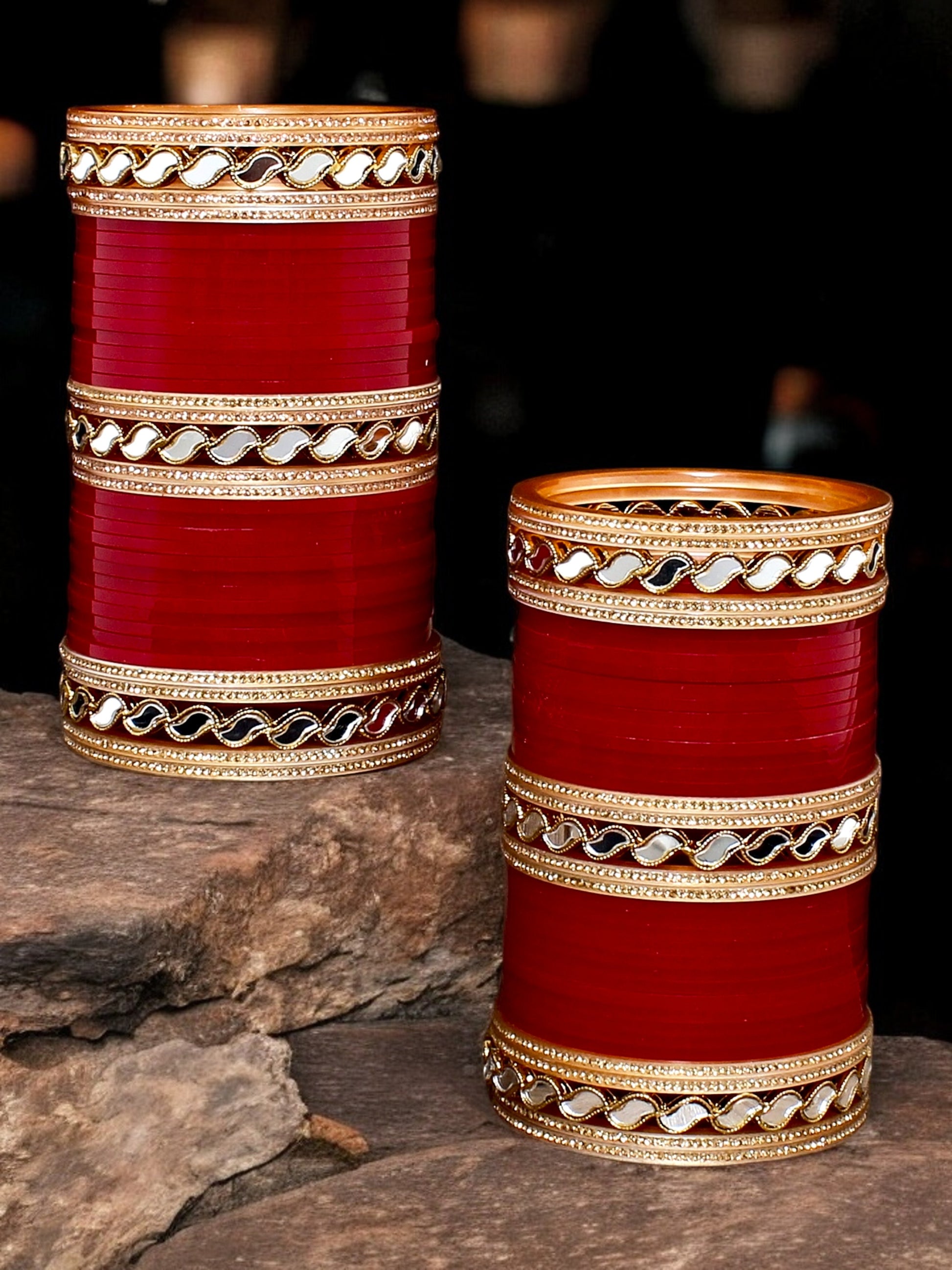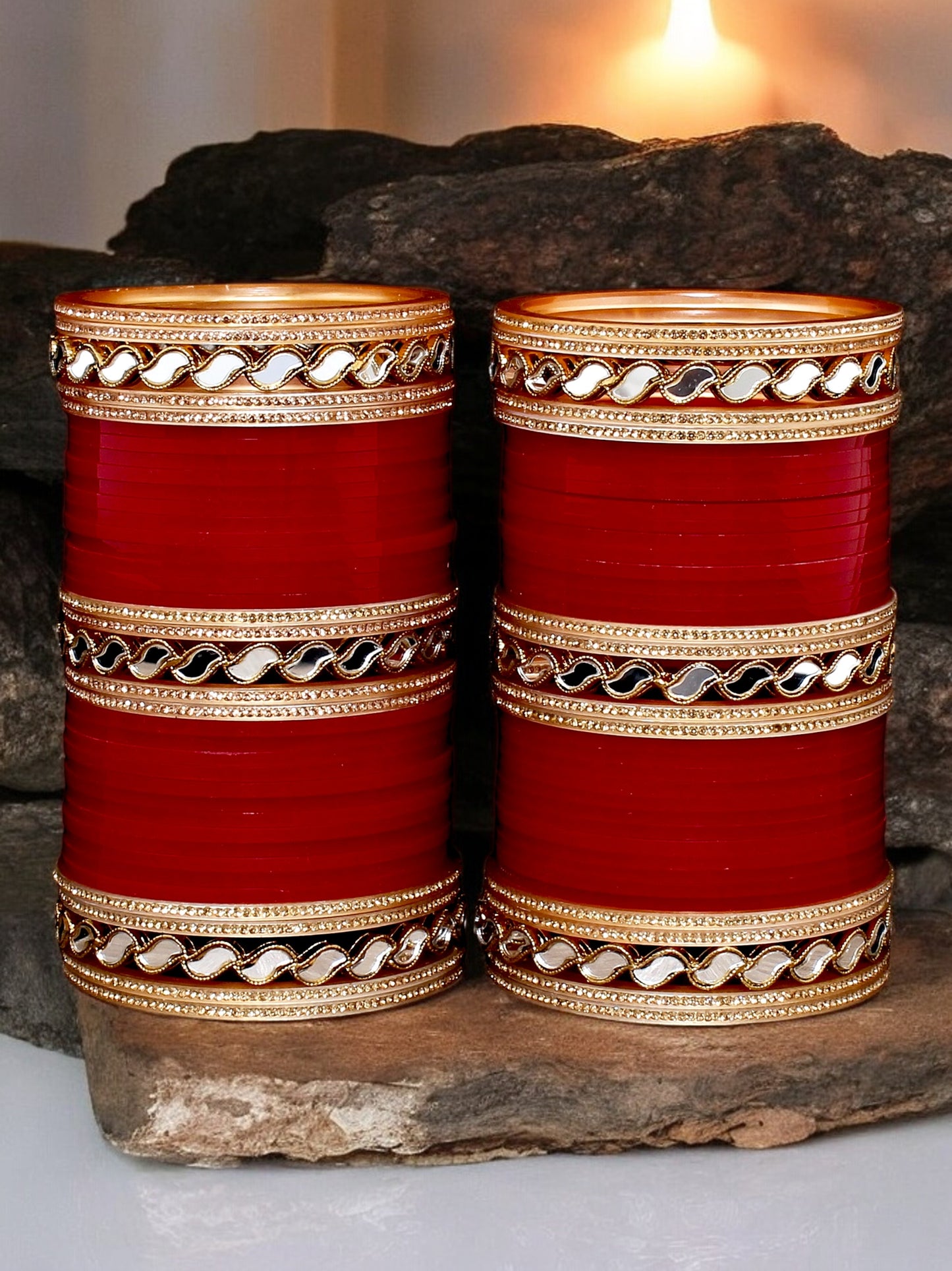 Lucky Jewellery Bridal Bangle Set Wedding punjabi chuda Mirror Work Designer chura CZ Stone Maroon color Choora Celebrate your special day with the timeless elegance of our Bridal Punjabi Chura. This stunning set of traditional red bangles, adorned with intricate, symbolizes prosperity and marital bliss. Each bangle is crafted with meticulous attention to detail, blending classic artistry with modern flair to create a truly unique accessory. Perfectly capturing the essence of Punjabi heritage, this chura will not only enhance your bridal ensemble but also serve as a cherished keepsake of your beautiful journey. Make an admirable gift for your Mother, Sister, Wife and Girlfriend. | Ideal For Party, Office & Daily Wear | Can Be Used On Birthday, Marriage, Engagement, Shadi Any Occassion. |