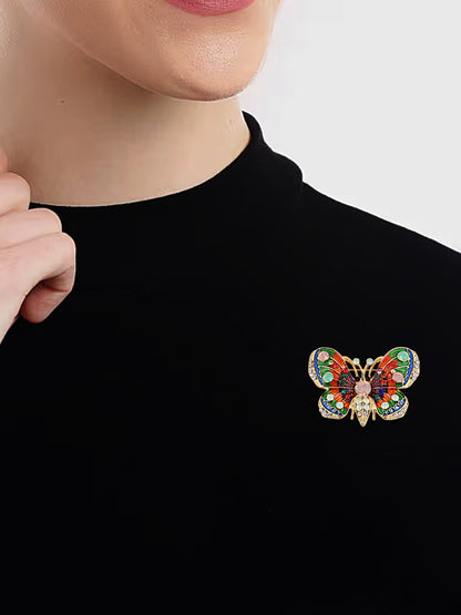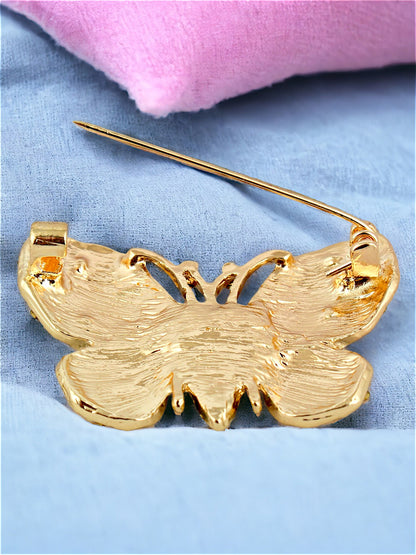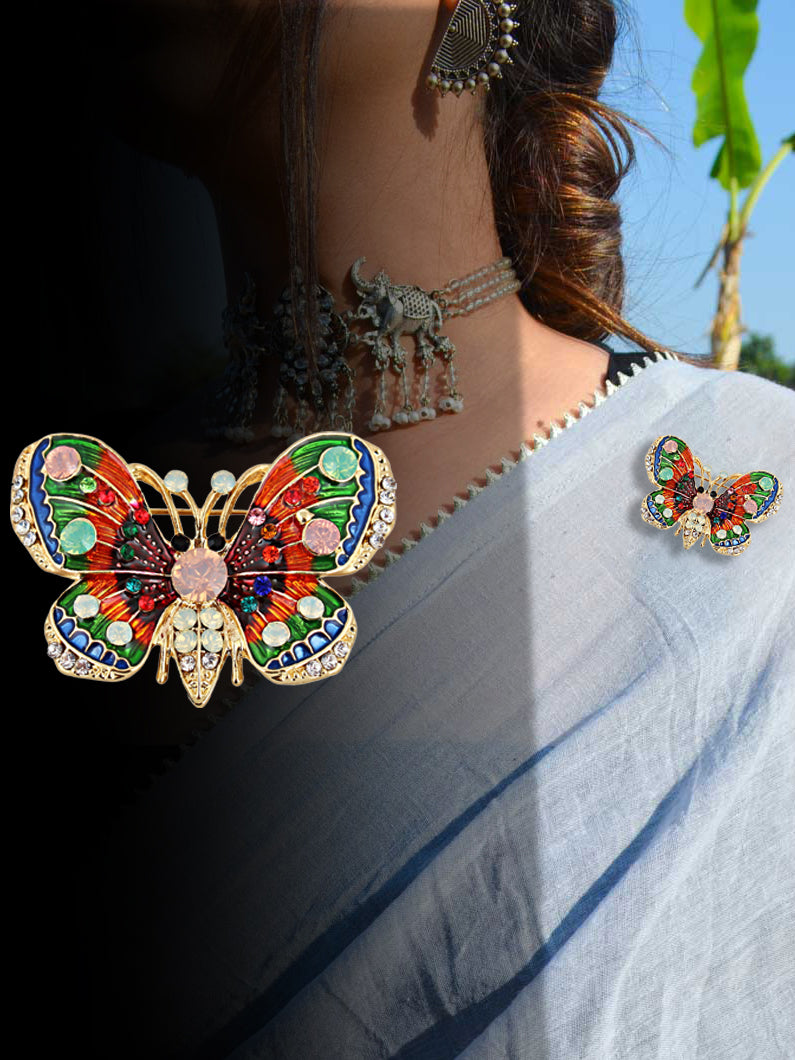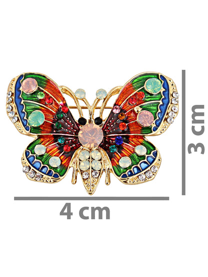 LUCKY JEWELLERY Designer Gold Plating Multi Color Meenakari Enamel Butterfly With Stones Saree Pin Unisex Brooch Pin For Women/Girls/Men (225-CHOM1-1177)