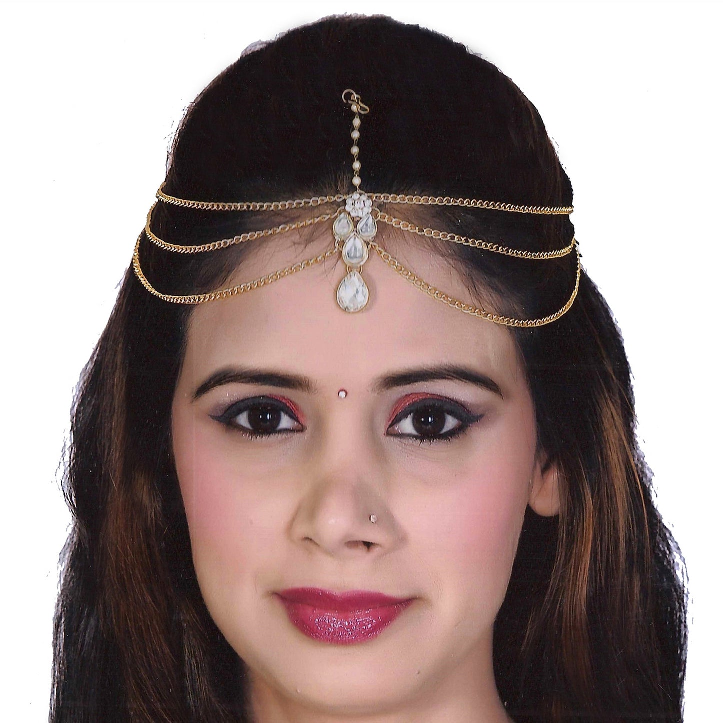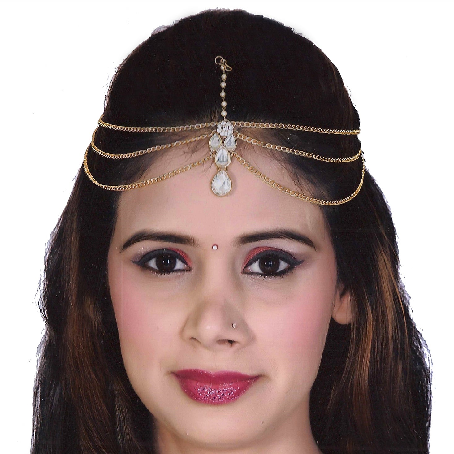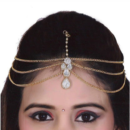 Designer Gold-Plated Kundan Maang Tikka and Pearl Matha Patti for Women and Girls