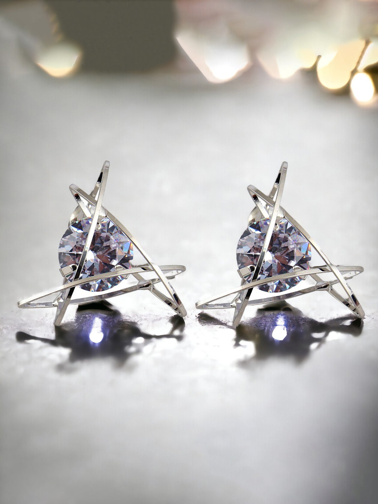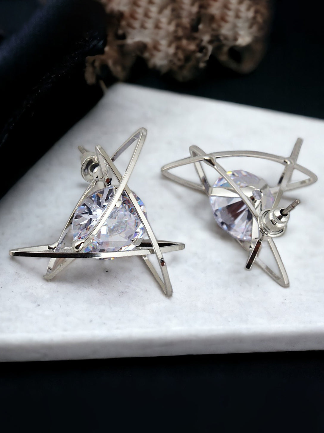Lucky Jewellery Silver Plated Trendy Sparkling Stone Triangular Shaped Earrings For Girls & Women With a elegant earring so beautiful in your Fashion Jewelry collection, you never have to worry about not getting your fusion and gorgeous looks right. The earring has been crafted with utmost care and precision and boasts absolute perfection and flawlessness in terms of design and finish, which has been given a lovely plating and high polish. Complete the look by pairing this set with matching earring. This piece of jewelry comes with the Lucky Jewellery assurance of quality and durability.