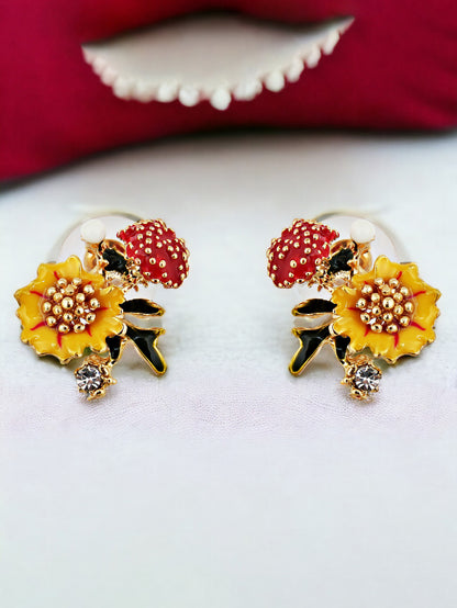 18k Gold Plated Yellow Color Floral Design Stud Tops Earring For Girls & Women