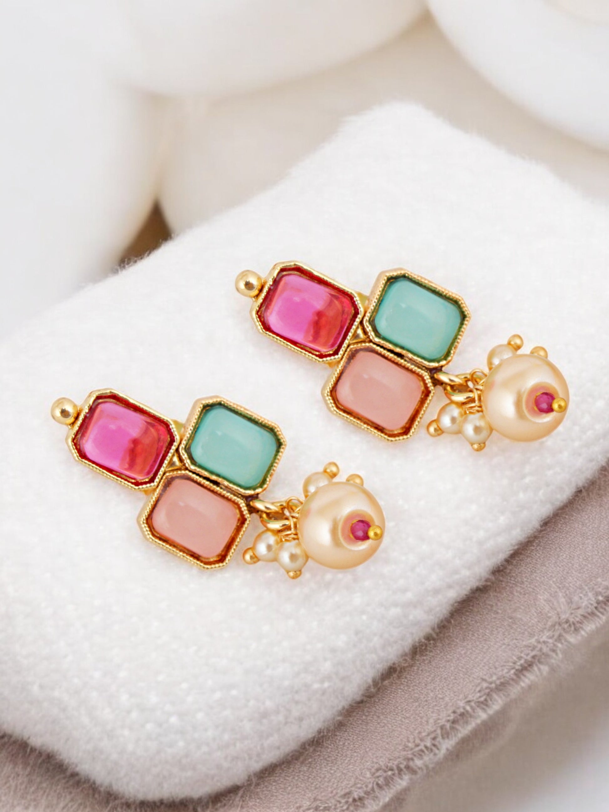 Gold Plated Multi Color Choker Necklace Set with Earrings for Women & Girls (743-PSR-2085-MT)