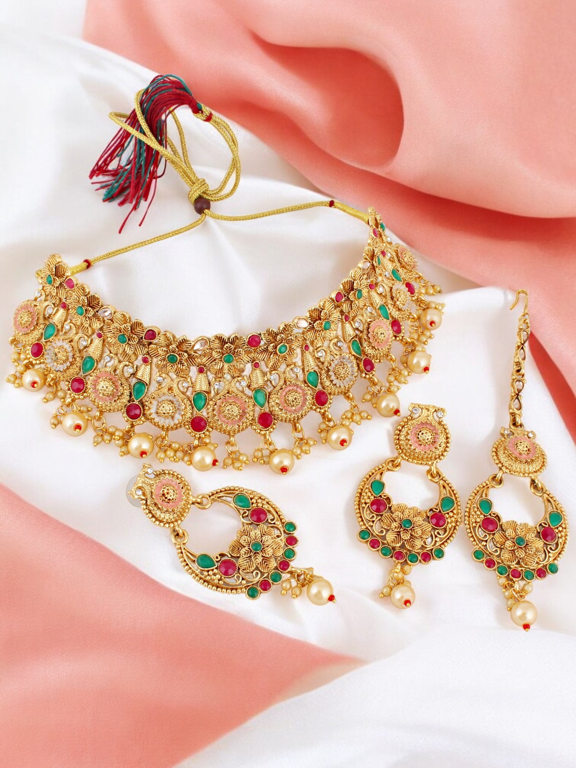 Gold-Plated Meenakari Choker Necklace Set Traditional Jewelry for Women & Girls (759-G2SR-003-MT)