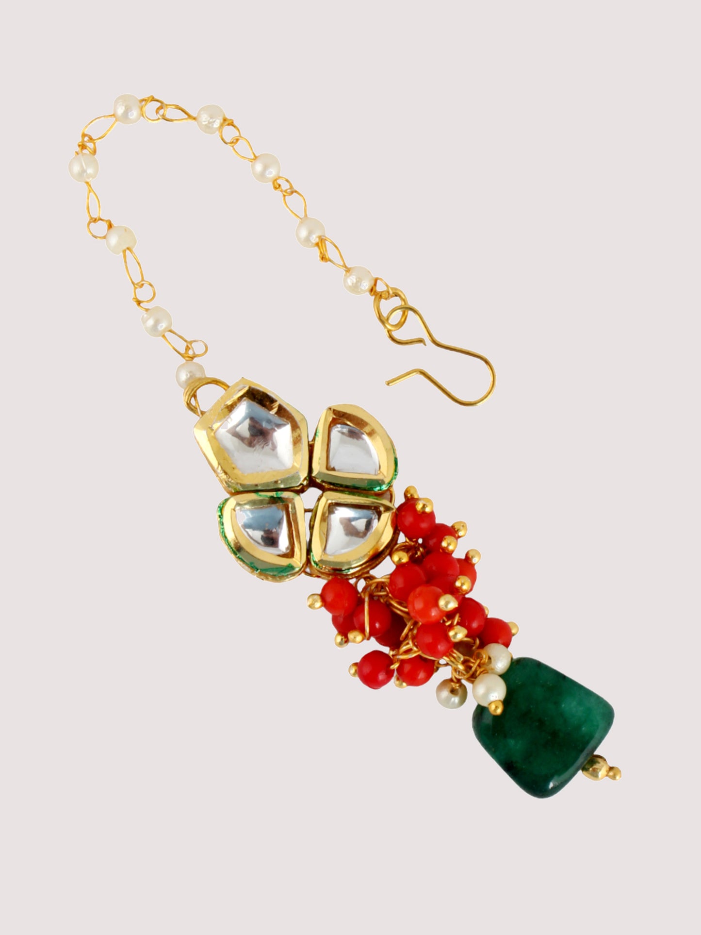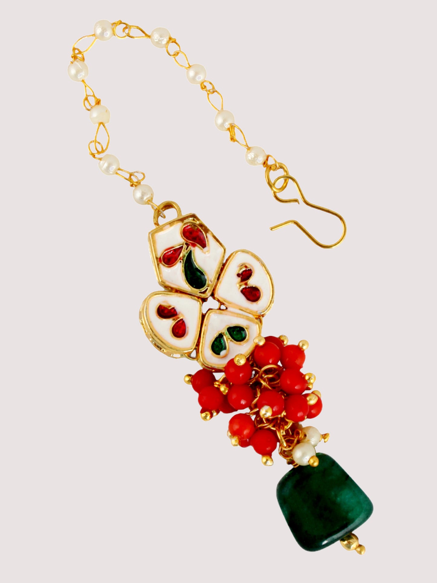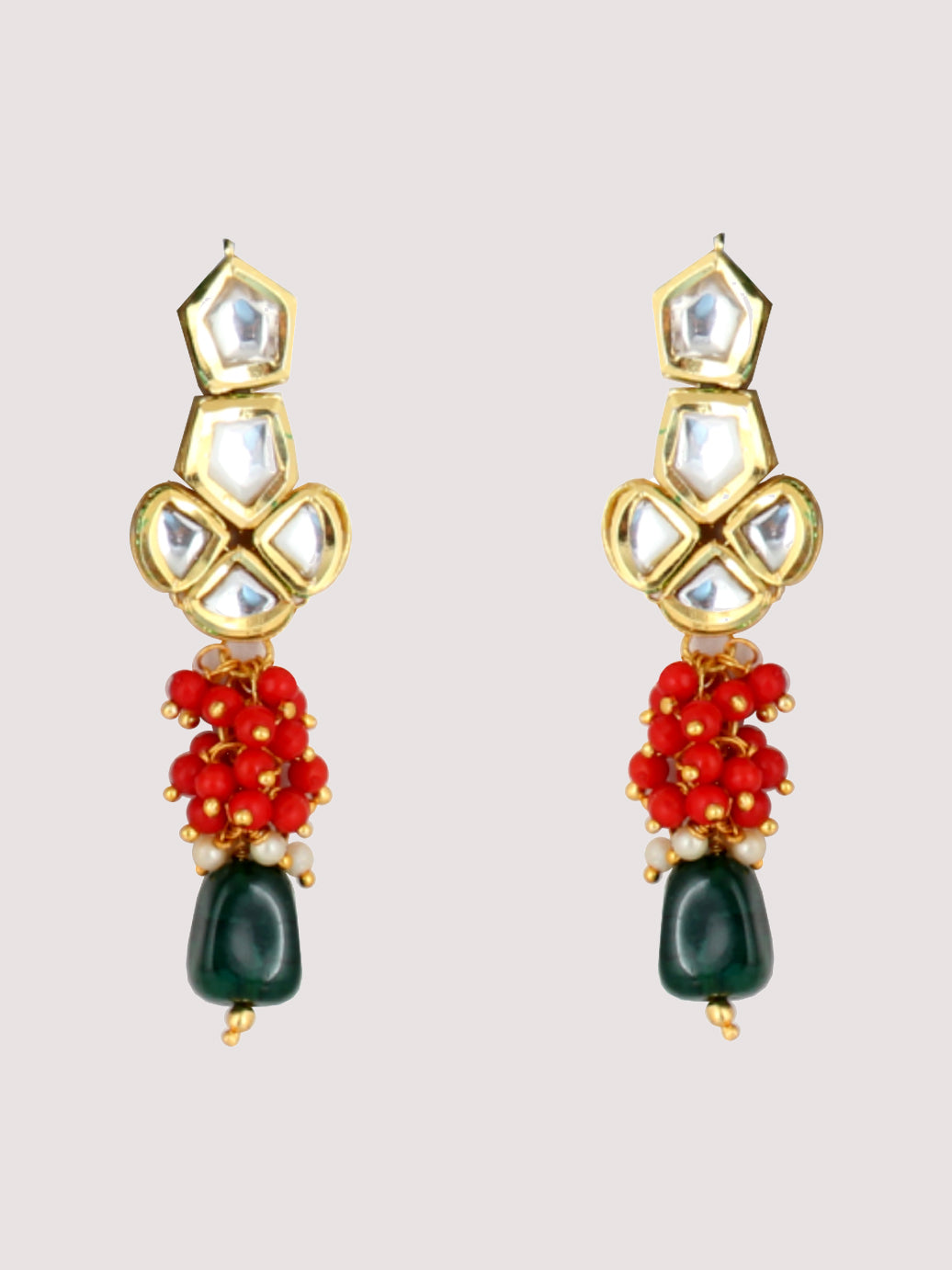 | Meenakari 18K Gold plated party wear Multicolor pentagon shape Uncut Kundan Combo Necklace Set This stunning Necklace set from LUCKY JEWELLERY will certainly delight all the lovely Indian girls, who are ready to get married. This Necklace set includes matching earrings, one Necklace Set. Further, this set is studded with finest quality of coloured and white stones that render amazing look.