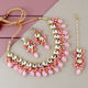 | LUCKY JEWELLERY Back Meenakari 18k Gold Plated Pink Color Tika Earring Combo Uncut Big Faux Kundan Choker Necklace set |