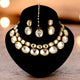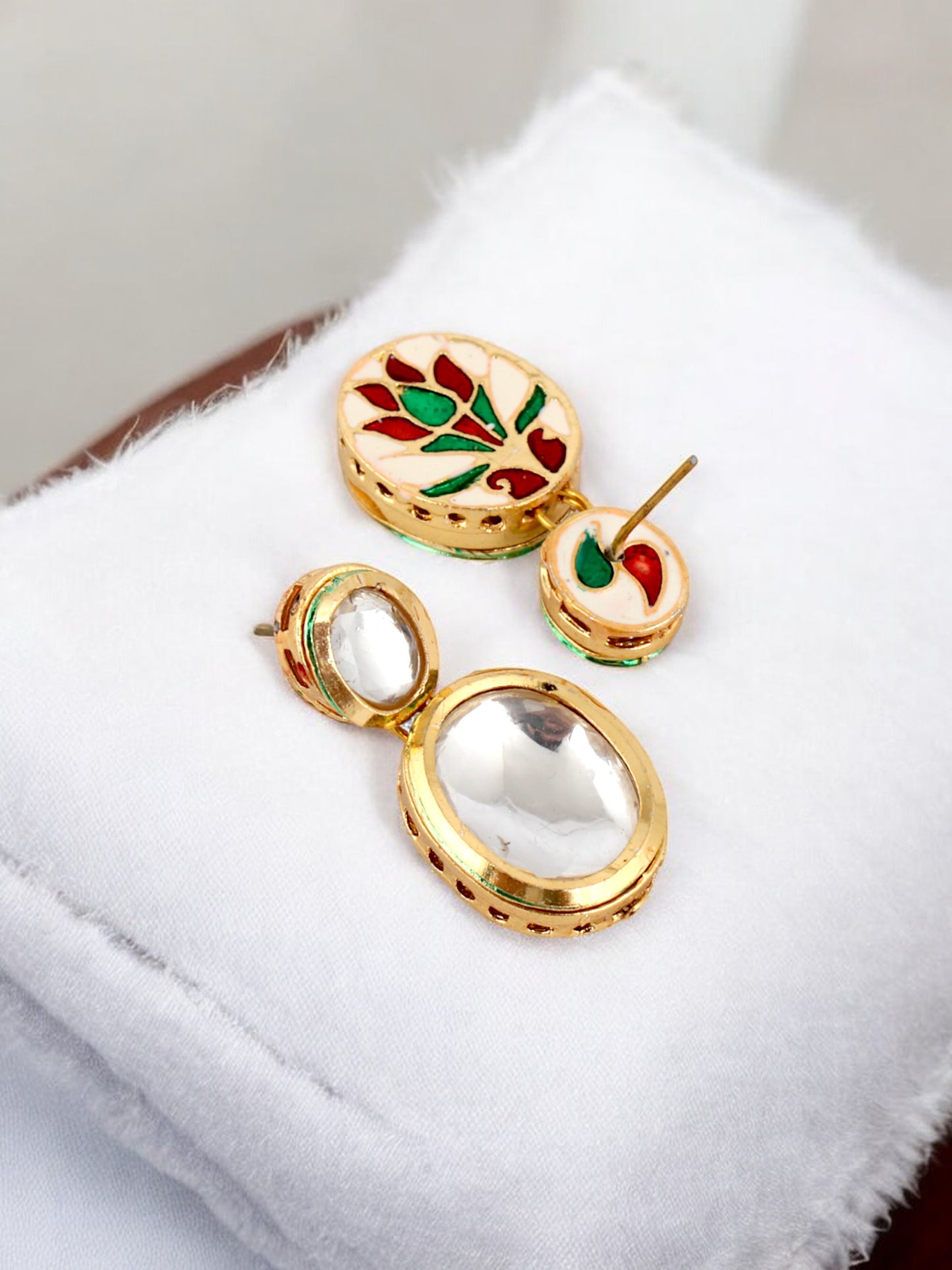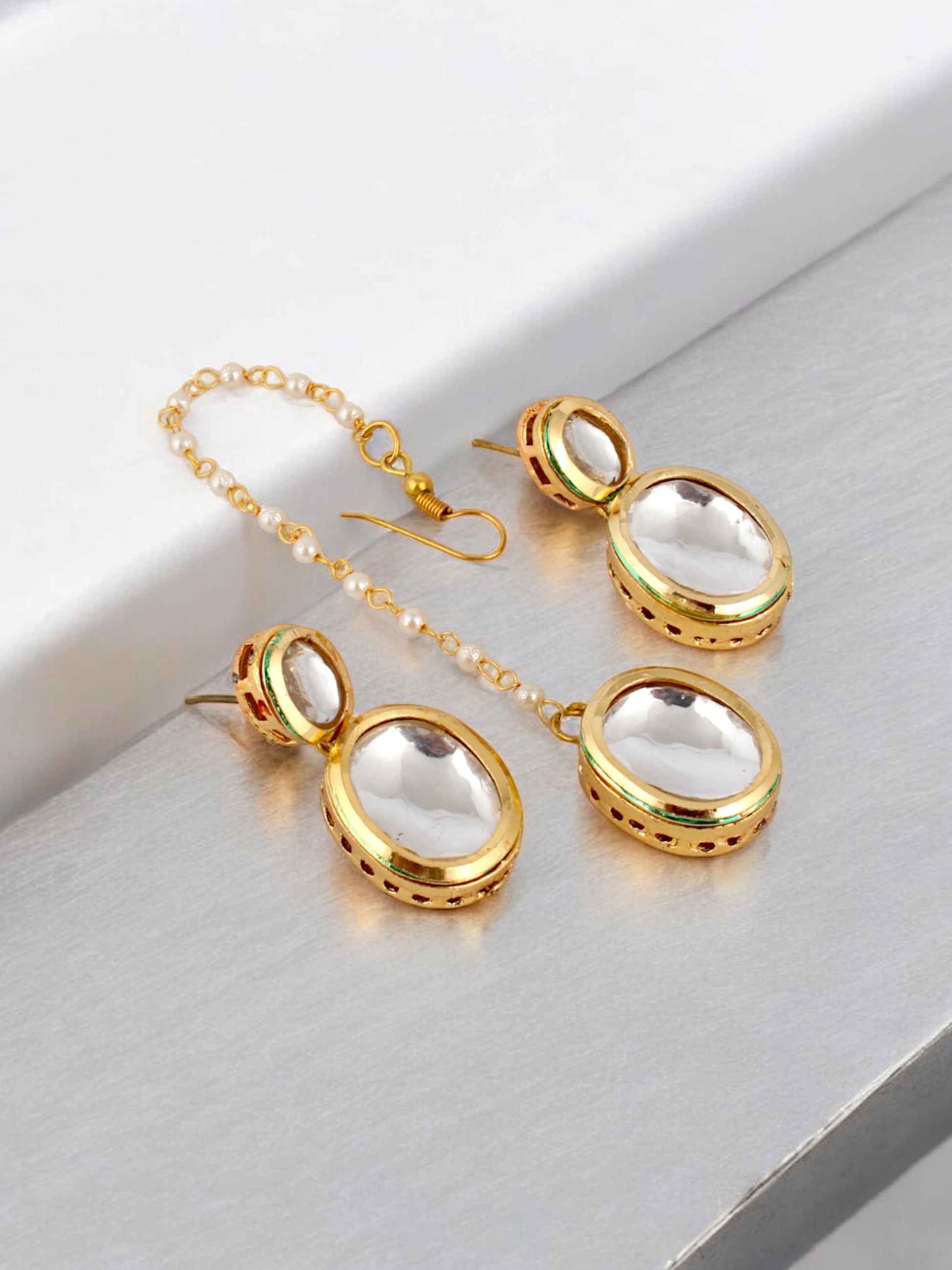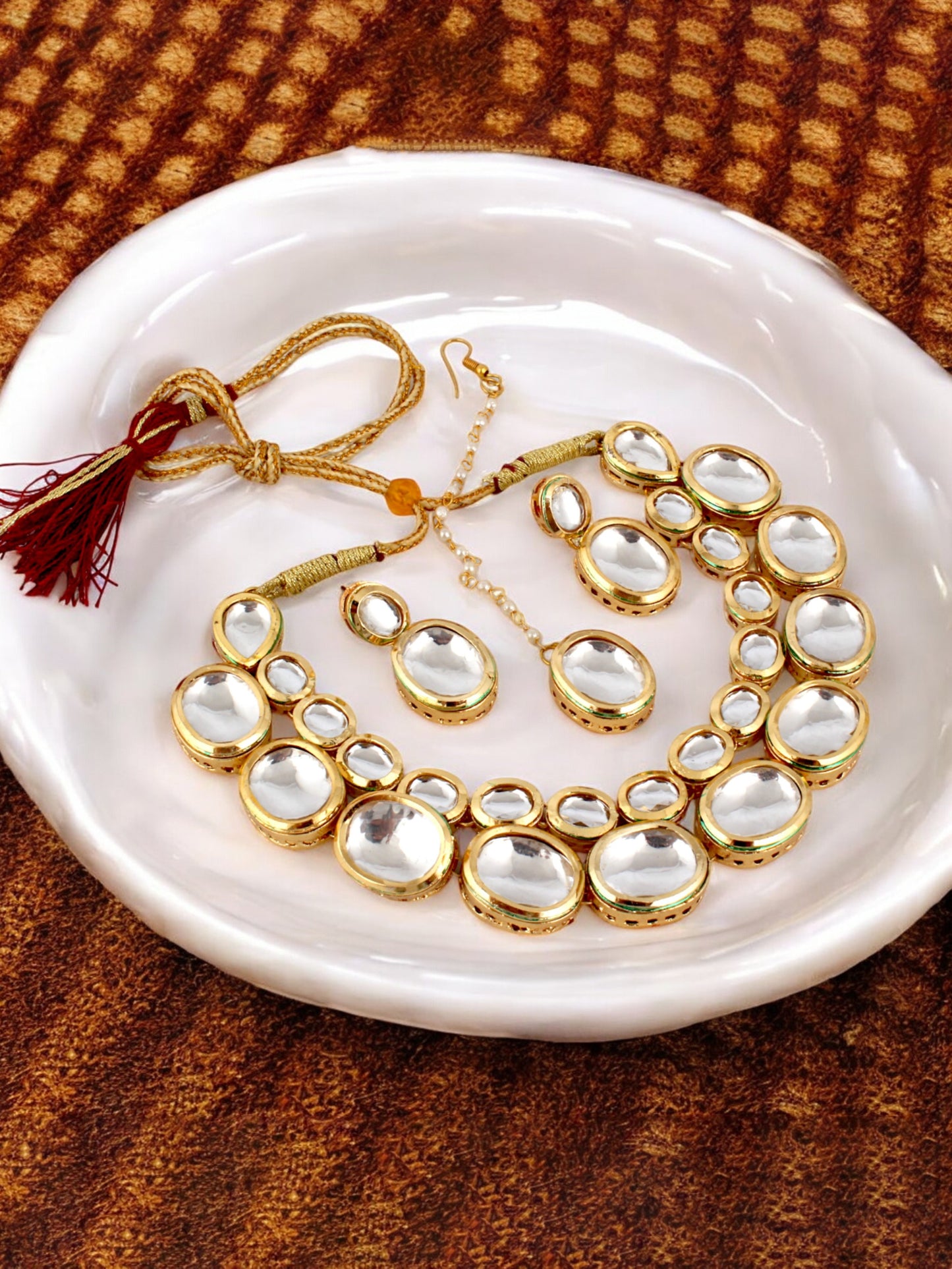 Lucky Jewellery Back Meenakari 18k Gold Plated White Color Tika Earring Combo Set Uncut Big Square Kundan Double Layered Stone Choker Necklace set Women & Girls