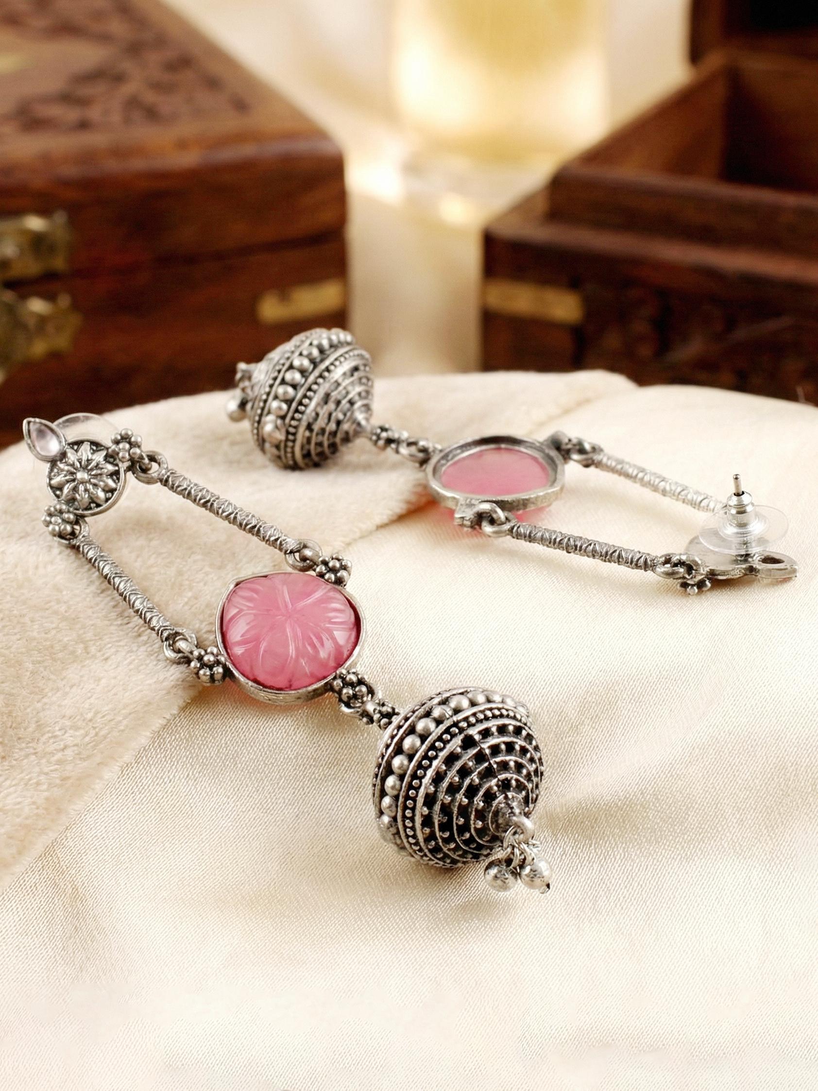 Oxidised Silver Pink Stone Long Dangler Earrings For Girls & Women (370-KEG-13541-PK-S)