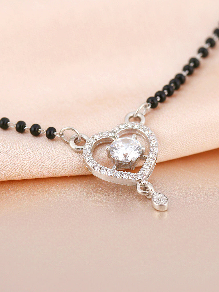 Silver Plated AD Stone Mangalsutra with Black Beads for Women