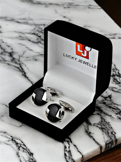 Lucky Jewellery Unique Men Jewelry Silver Plated Black Color Round Sleeve Button Formal Cuff Button Wedding Shirt Button, Suit, Blazer Cufflinks Pair Gift Set For Men (300-CHC4-1008-BL-S) Cufflinks for men are small accessories worn on the cuffs of dress shirts. This piece of accessories come in various styles, shapes, and materials, such as metal, enamel, or even non-precious stones. These little gems add a touch of elegance and personality to a man's formal attire. This piece of accessories work by fastening the cuffs together, providing a secure and stylish closure. Whether you're dressing up for a formal event or adding a classy touch to your everyday look, cufflinks are a subtle yet significant detail that can make a big difference.