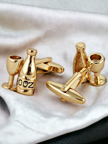 Lucky Jewellery Unique Men Jewelry Gold Plated Cocktail Party wine/champagne Bottle with Glass Design Sleeve Button Formal Cuff Button Wedding Shirt Button, Suit, Blazer Cufflink Pair Gift Set For Men