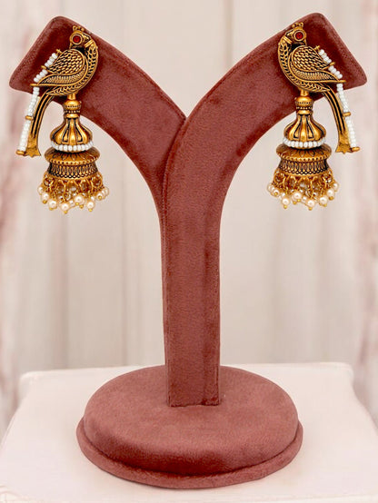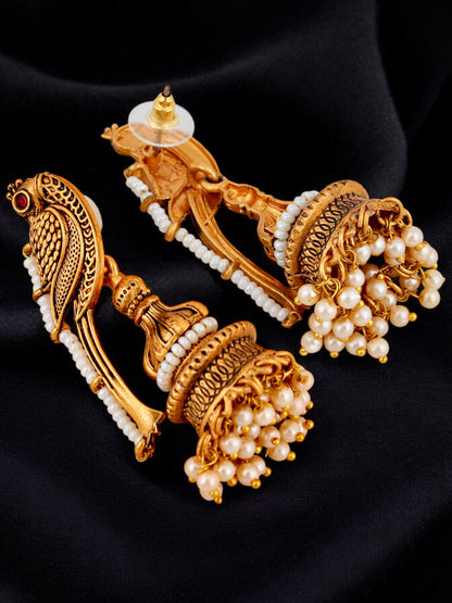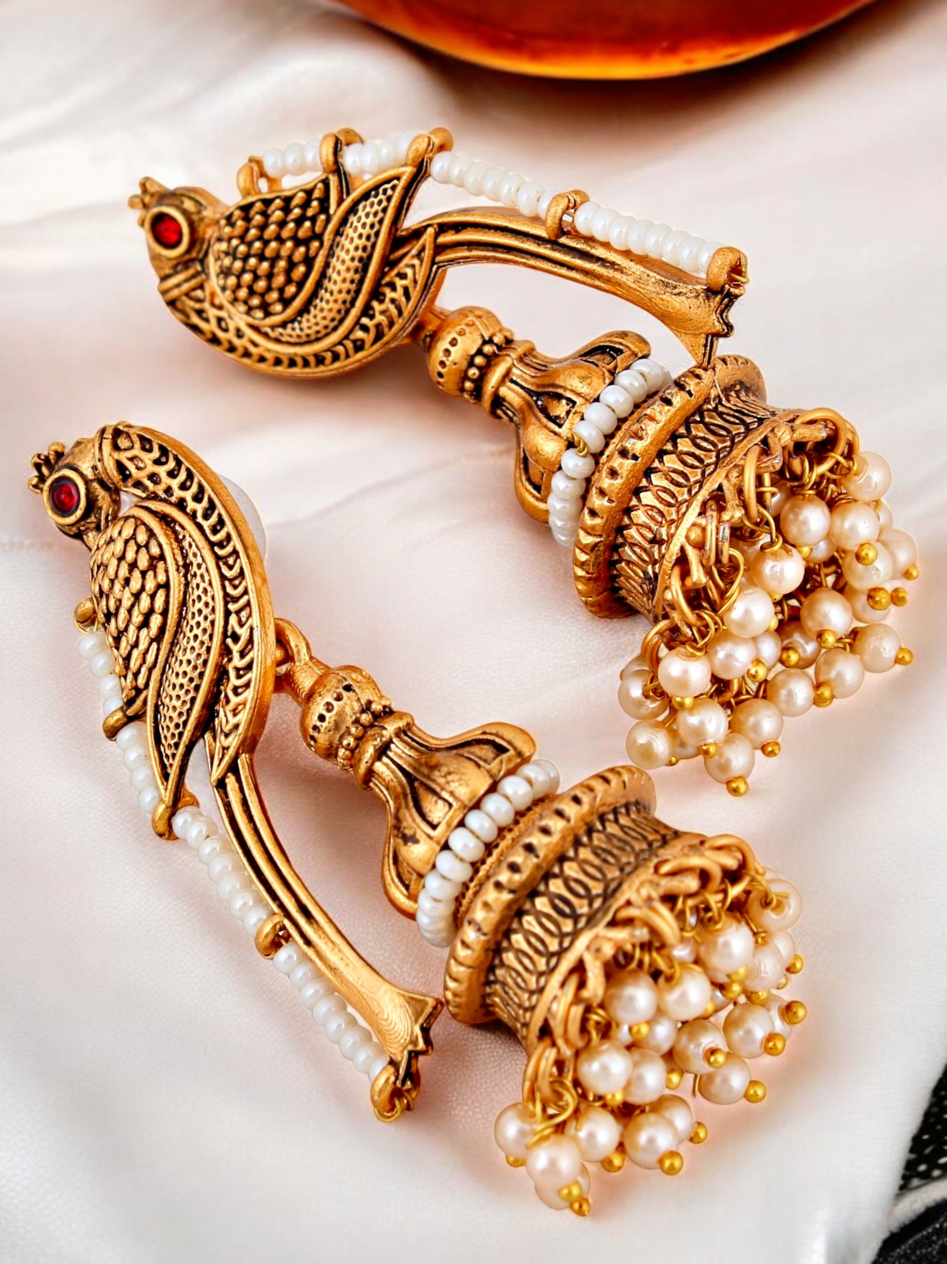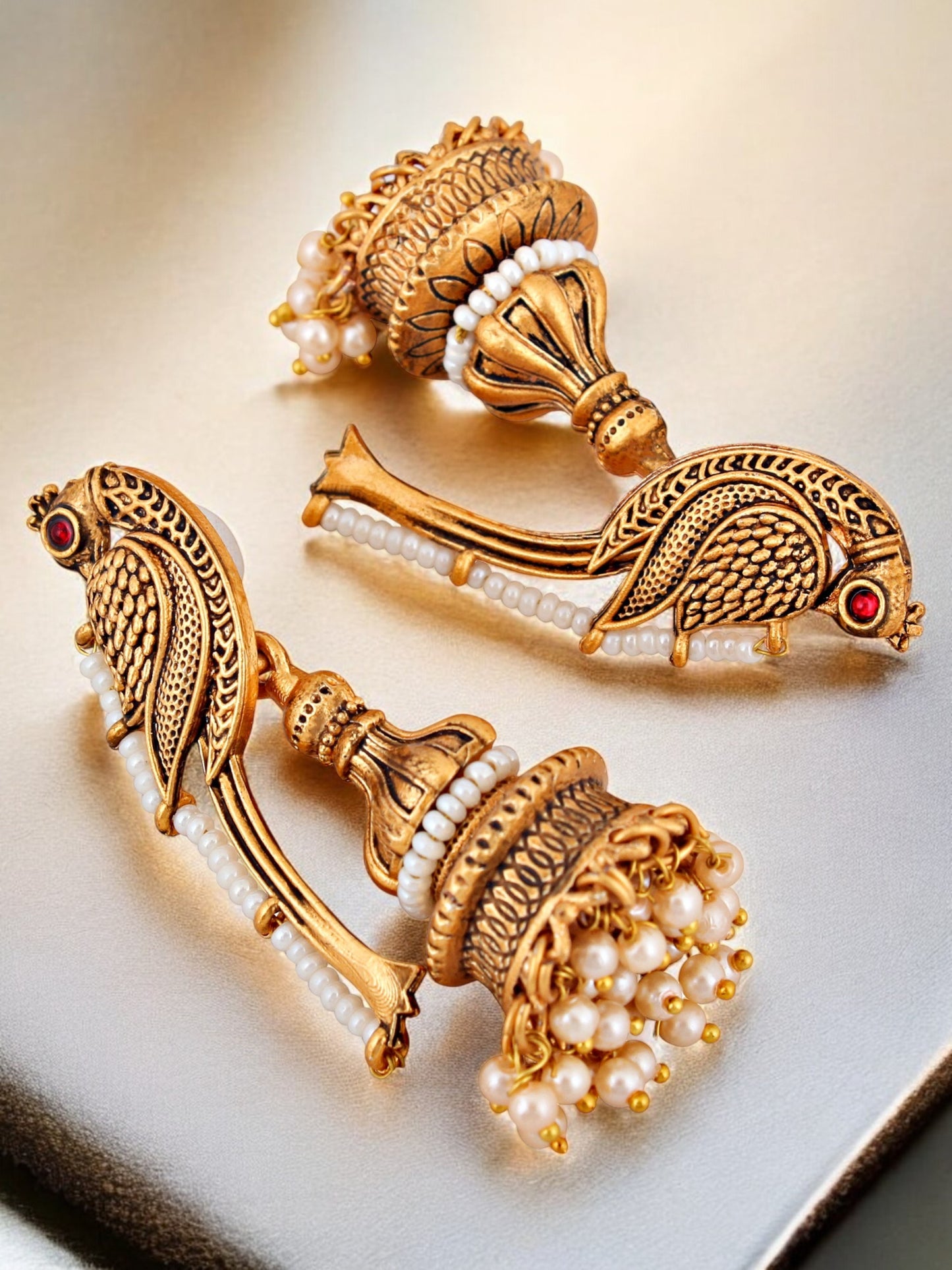 Trendy Celebrity Inspired Oxidised Gold Jhumki For Girls & Women | Black Metal Jhumkee Earing Set