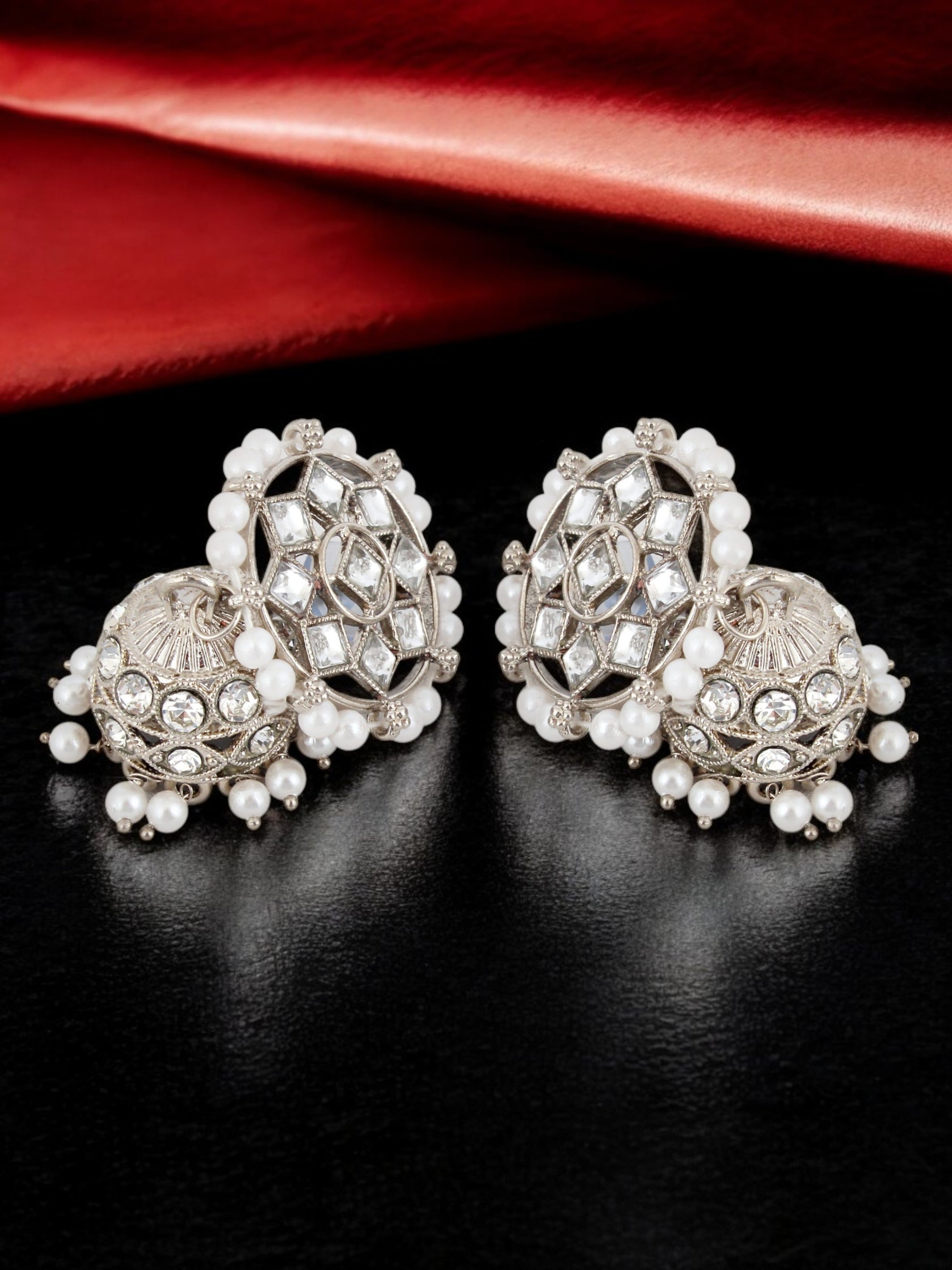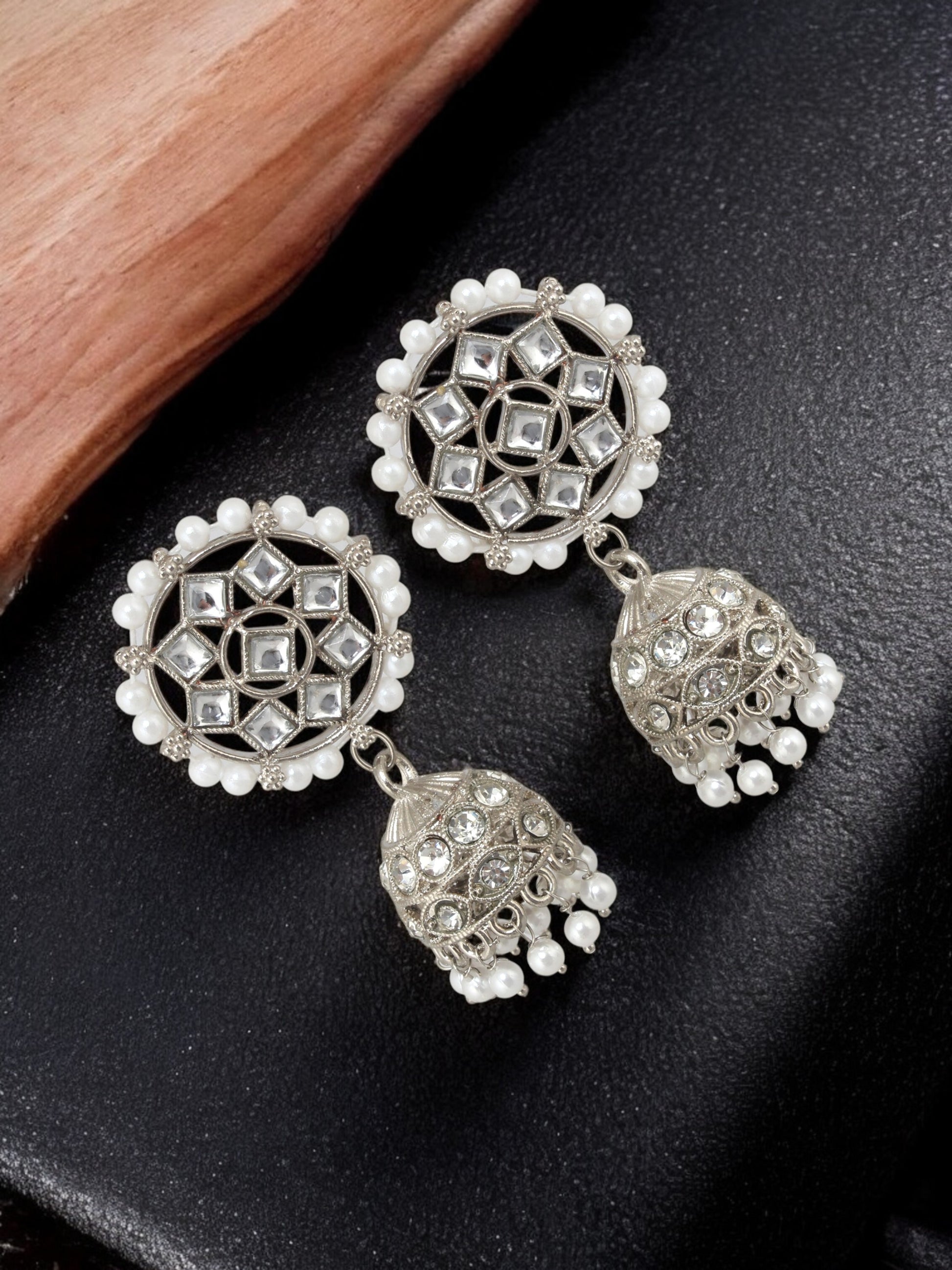 Trendy Silver Plated Kundan Beaded Choker Necklace Set (380-SSK-5120A-W-S)