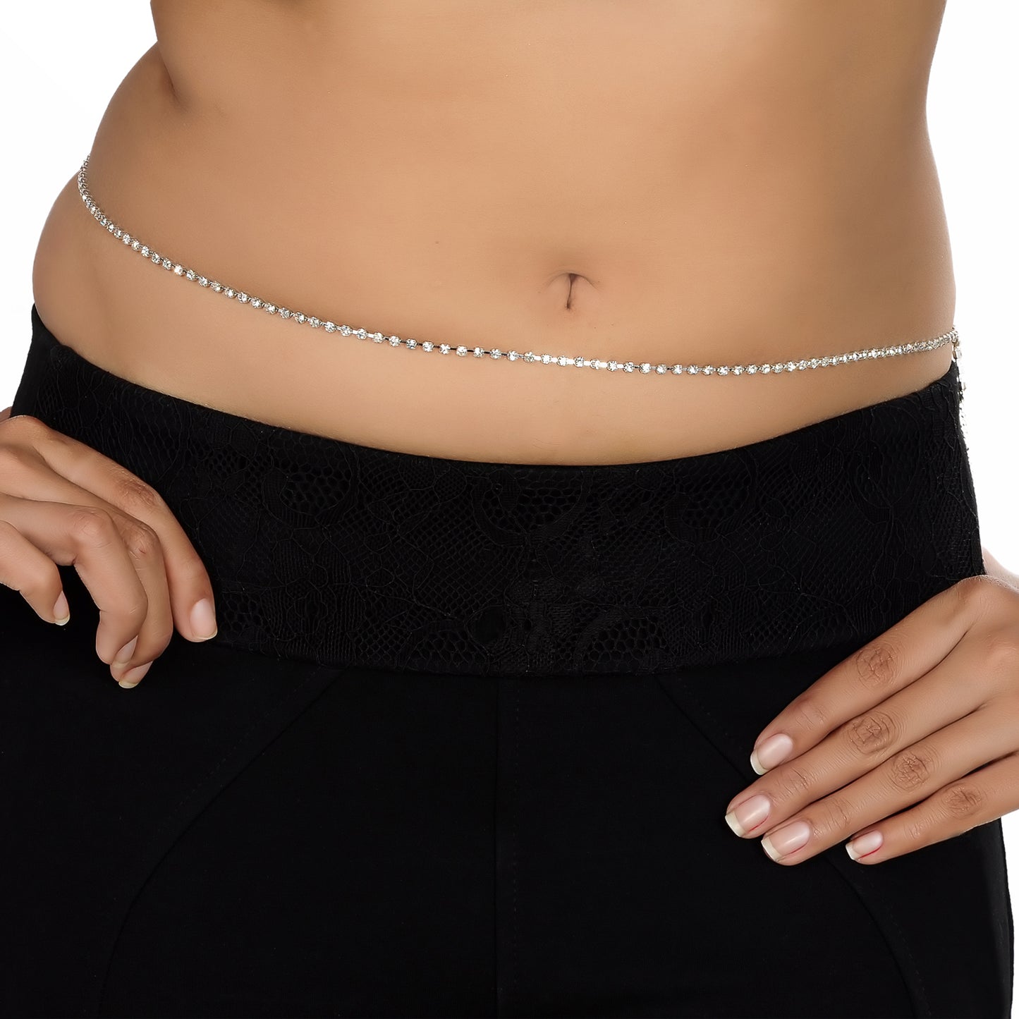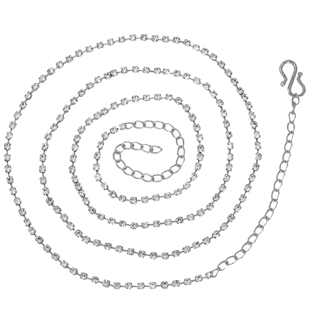 Lucky Jewellery Designer Silver White Color Alloy Waist Belt For Women & Girls A fabulous ornament that will light up your aura when you wear it. Featuring marvelously designed Rhinestone kamarband. It is the best ornament to wear on weddings or special occasions or just gift it to your loved ones.