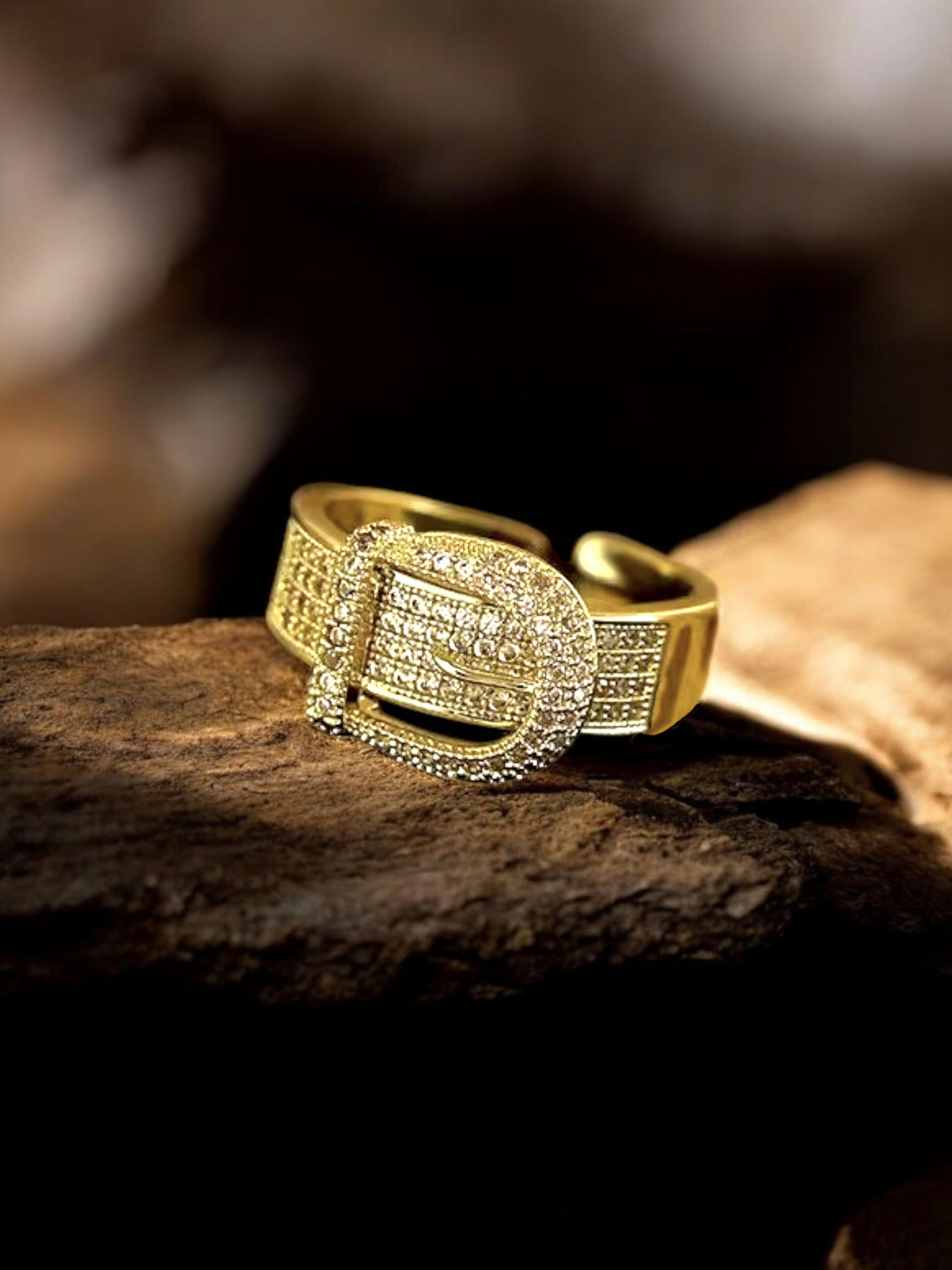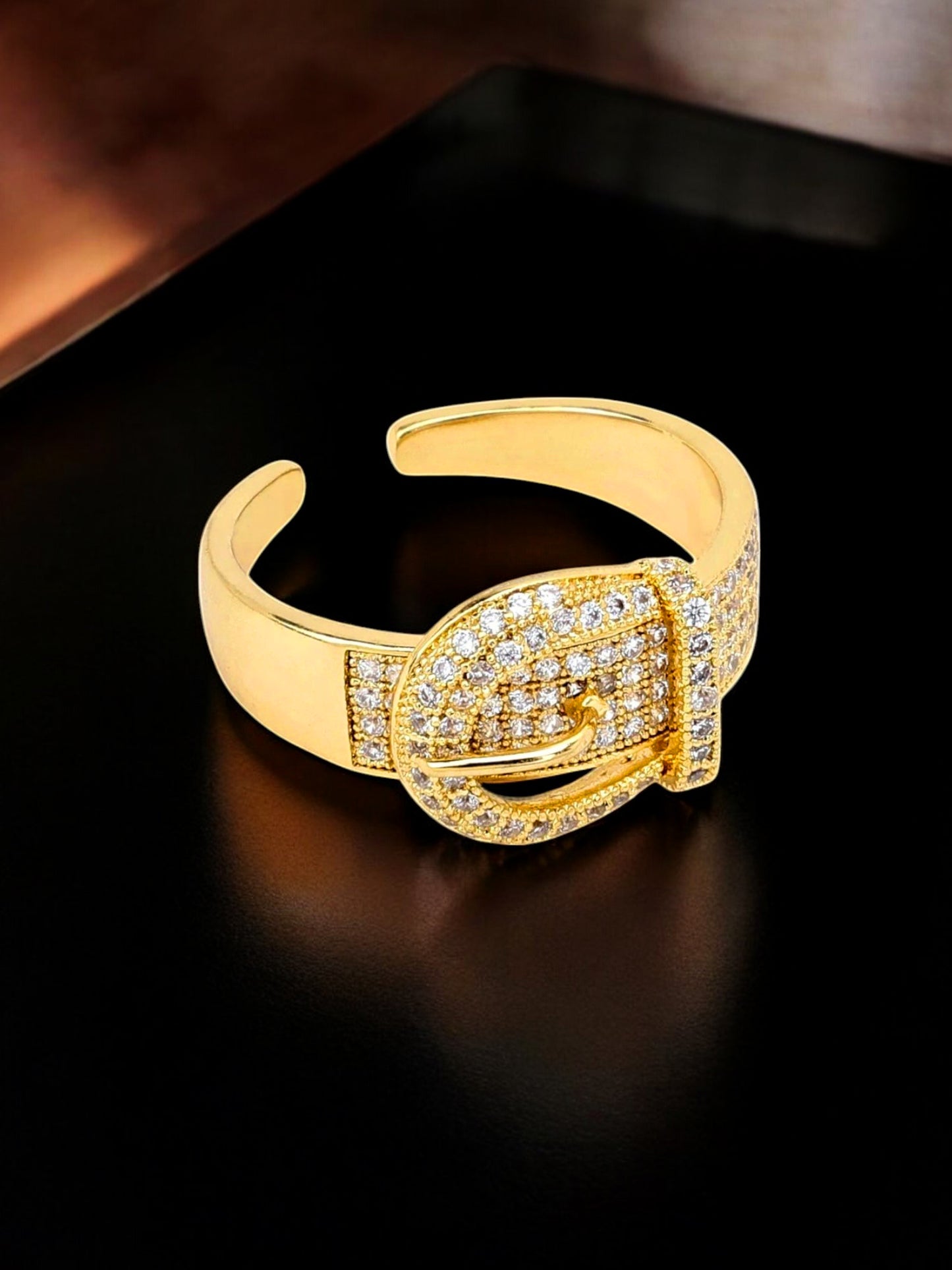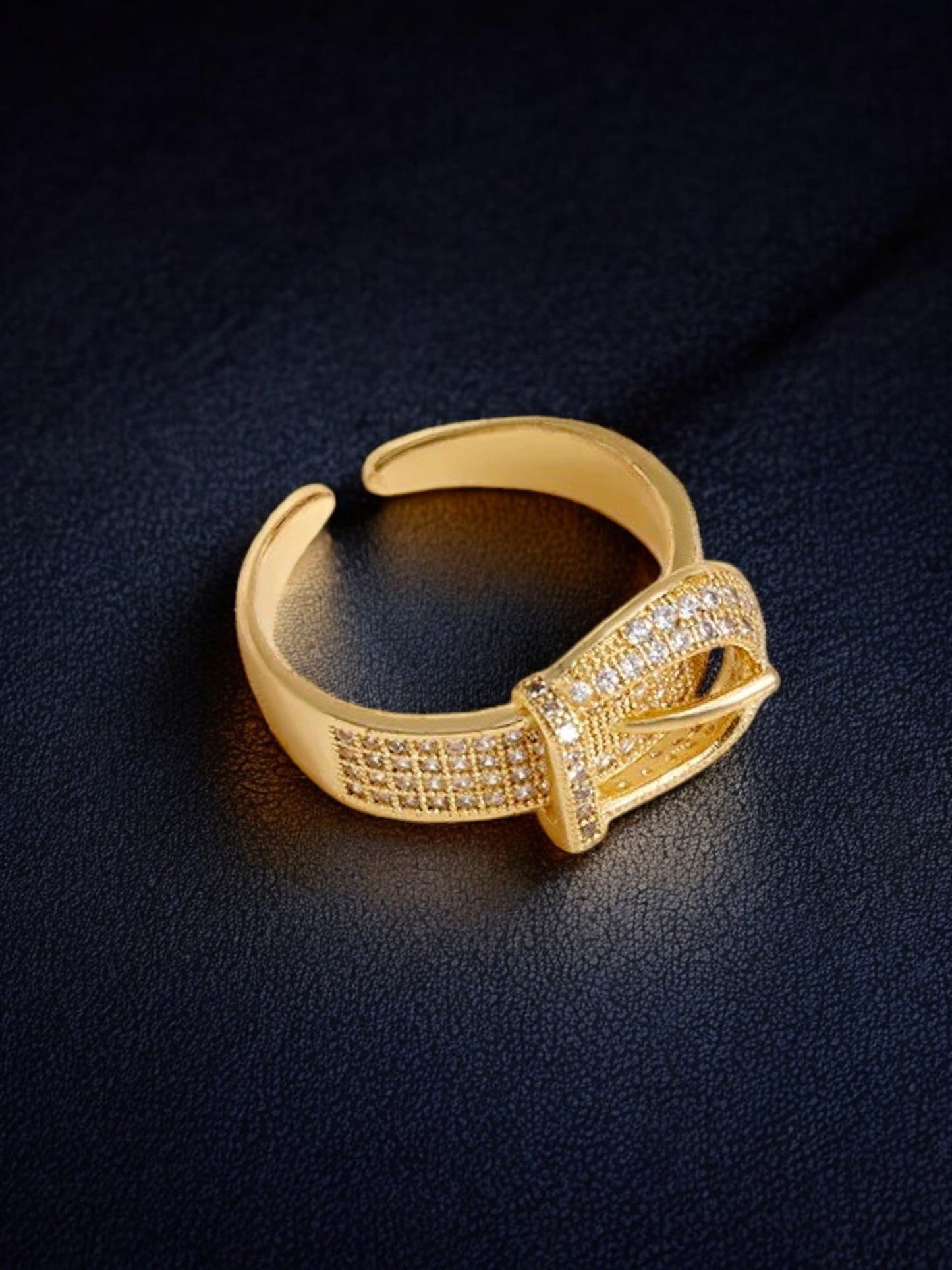 Add a touch of elegance to your look with this stylish adjustable open finger ring, designed for both men and women. Featuring a trendy belt buckle design, this unisex 18K gold-plated ring enhances any outfit with its timeless charm. The adjustable design ensures a comfortable and flexible fit, making it suitable for all finger sizes. Studded with stones, it adds a sophisticated touch, perfect for both everyday wear and special occasions. This versatile unisex ring makes a wonderful gift for birthdays, anniversaries, weddings, Valentine’s Day, or any special moment. Surprise your loved ones with this chic and elegant jewelry piece they will cherish forever.