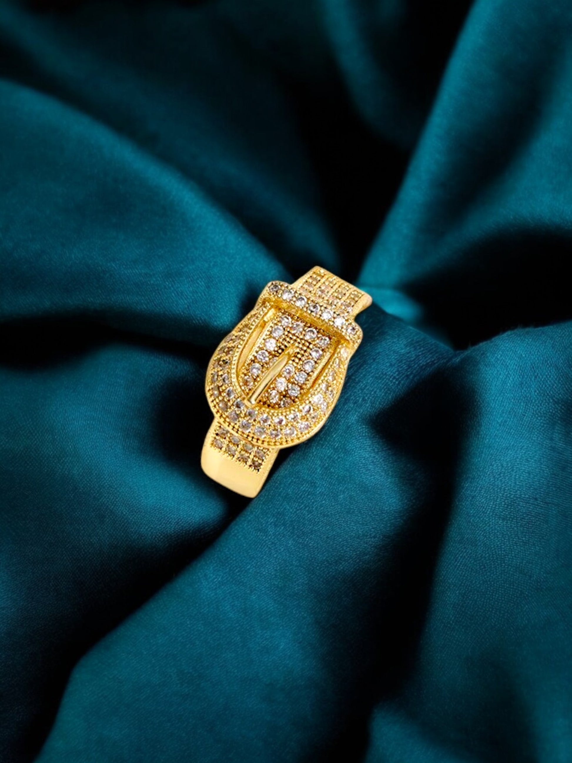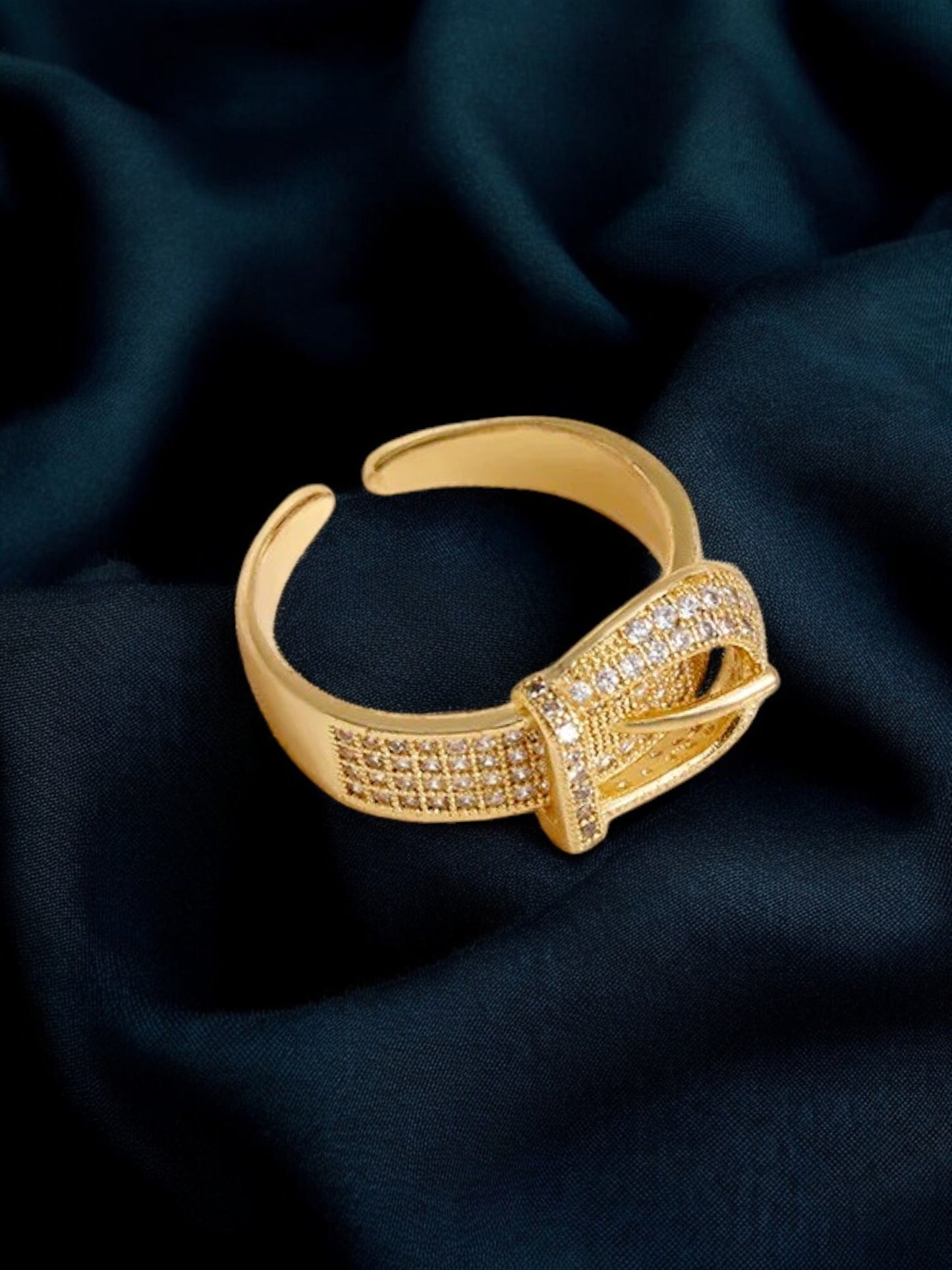 18K Gold-Plated Open Adjustable Finger Rings | Trendy Belt Buckle Design Unisex Ring (435-CHFA-1031)