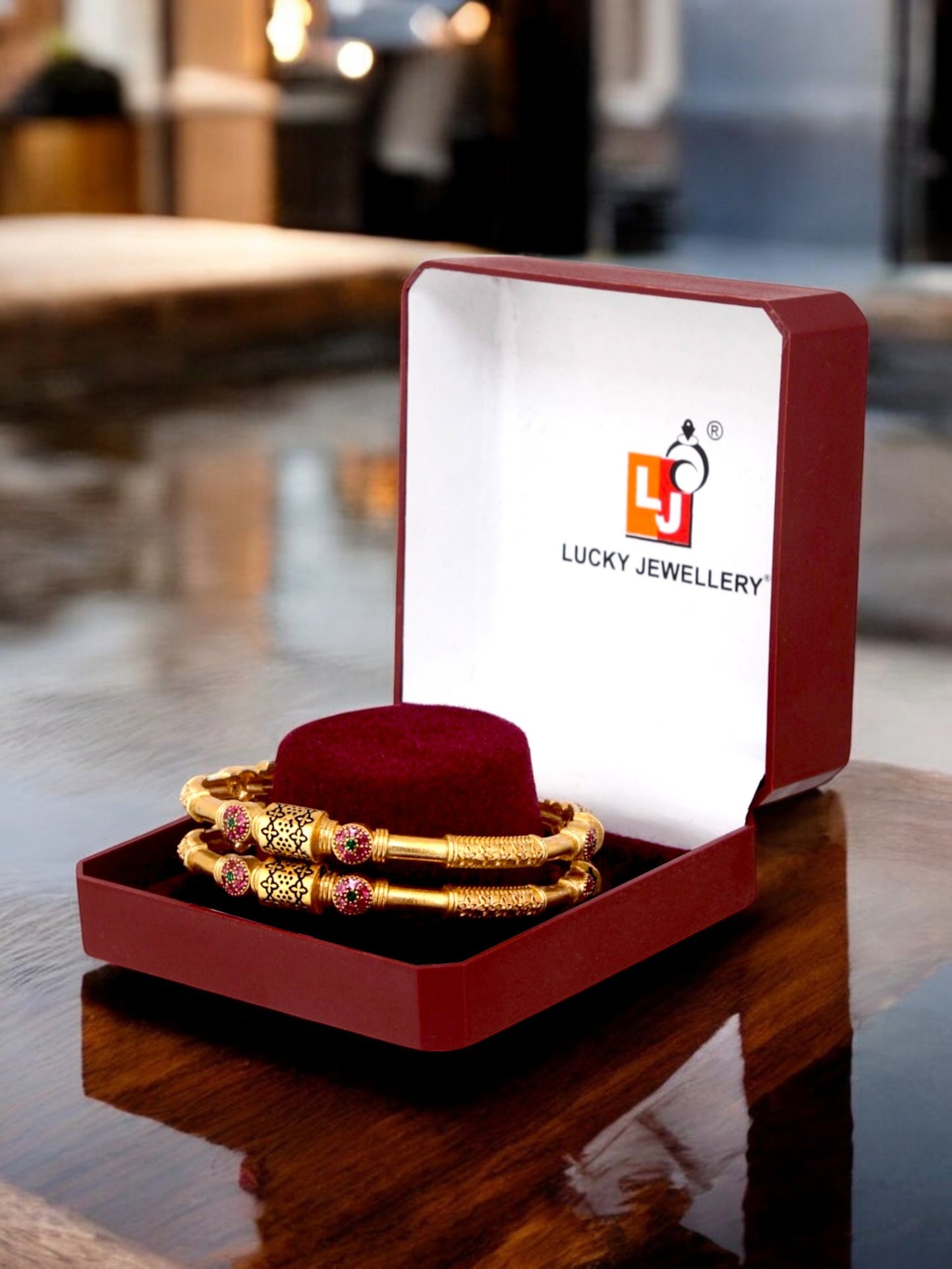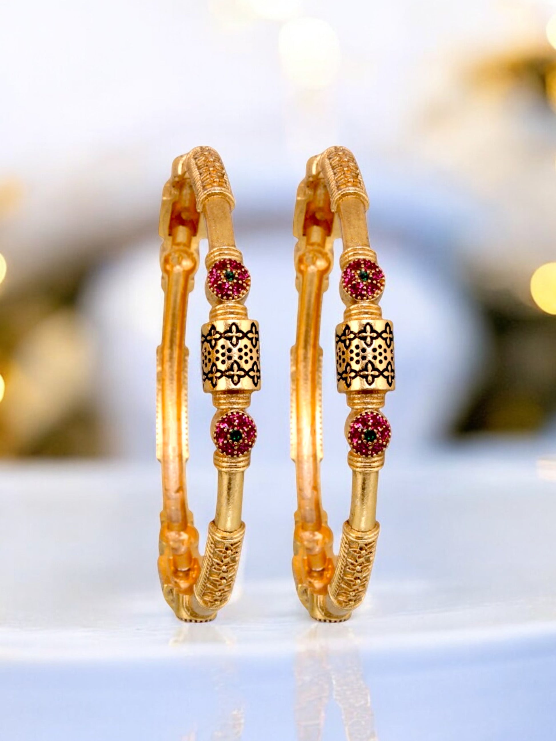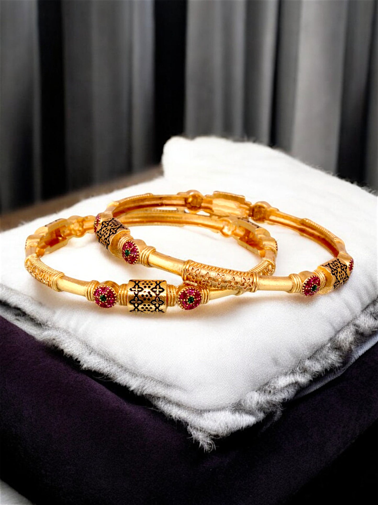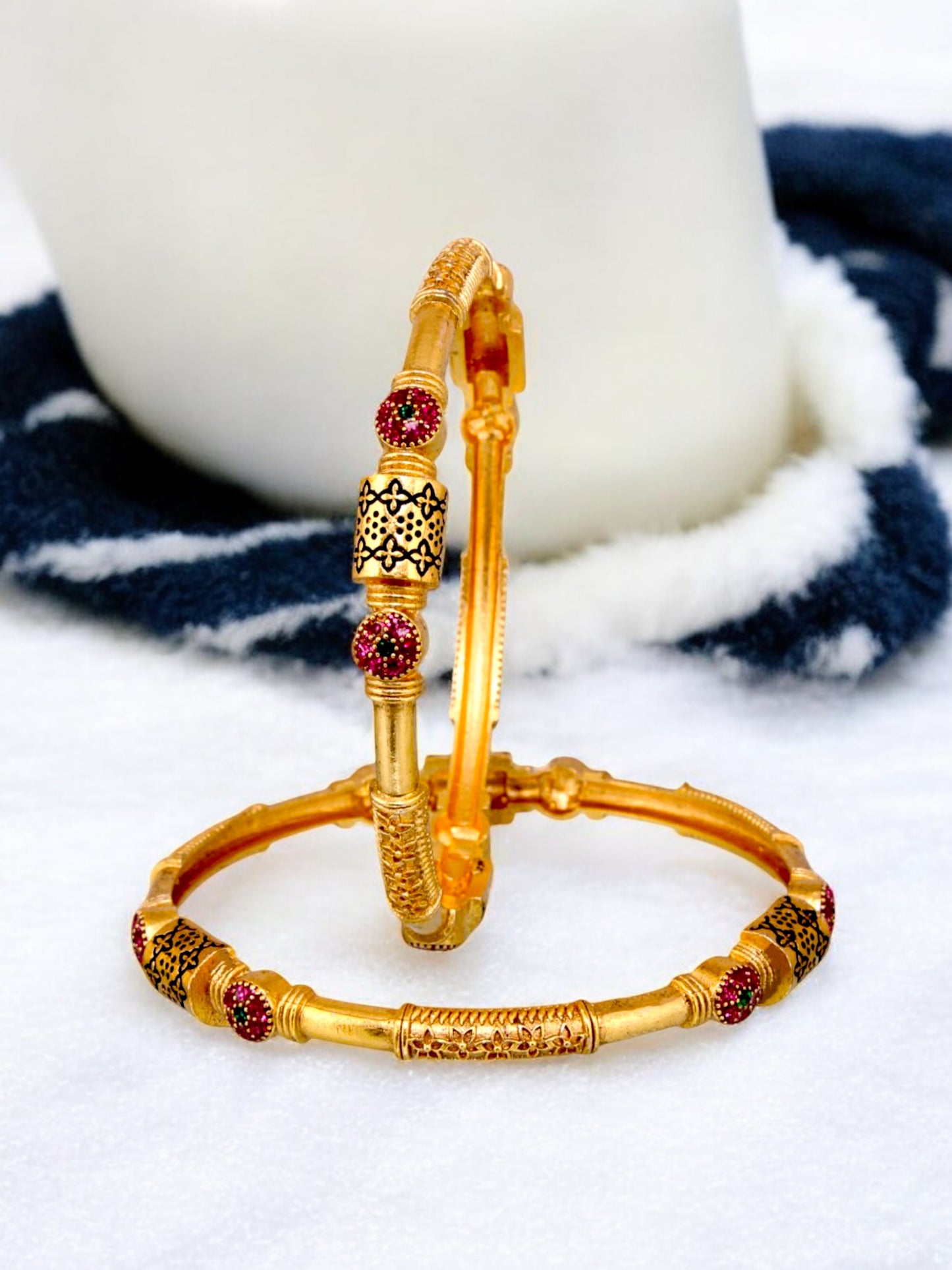 18k One Gram Gold Plated Traditional Designer Pack of 2 Bangle Set For Women