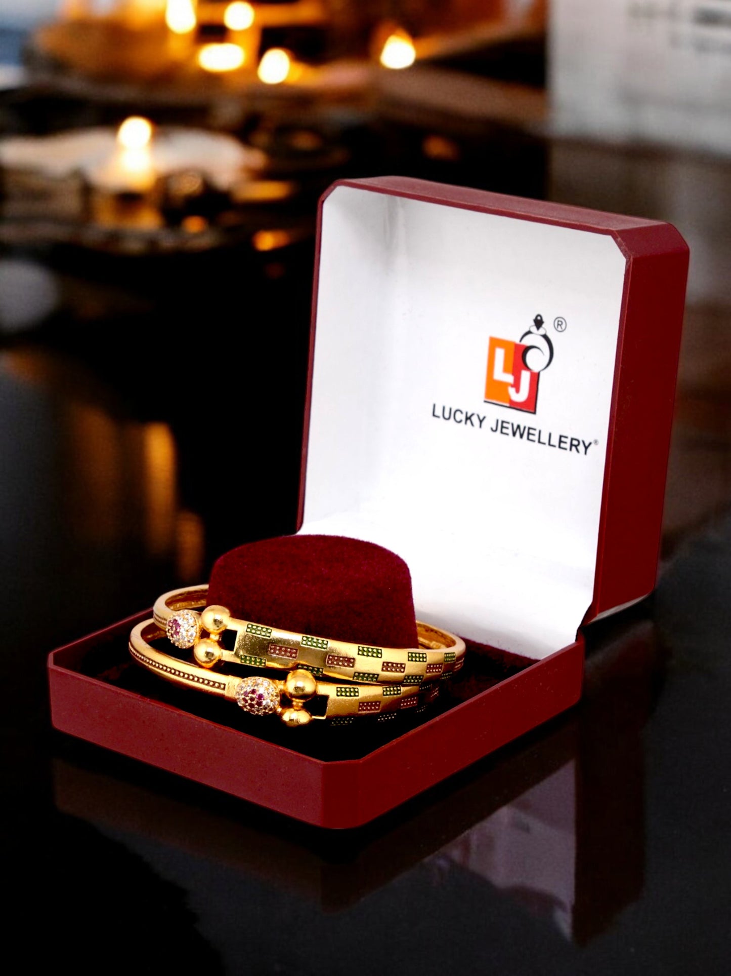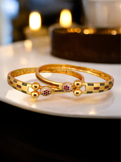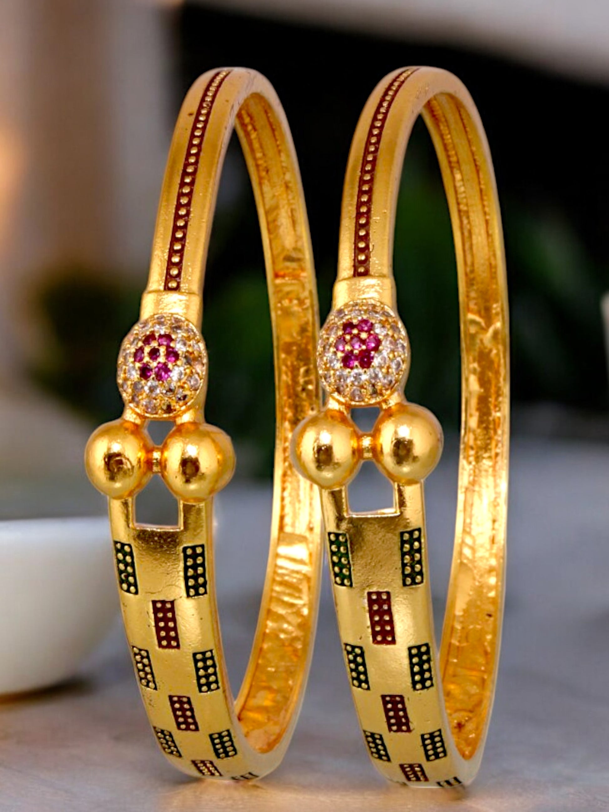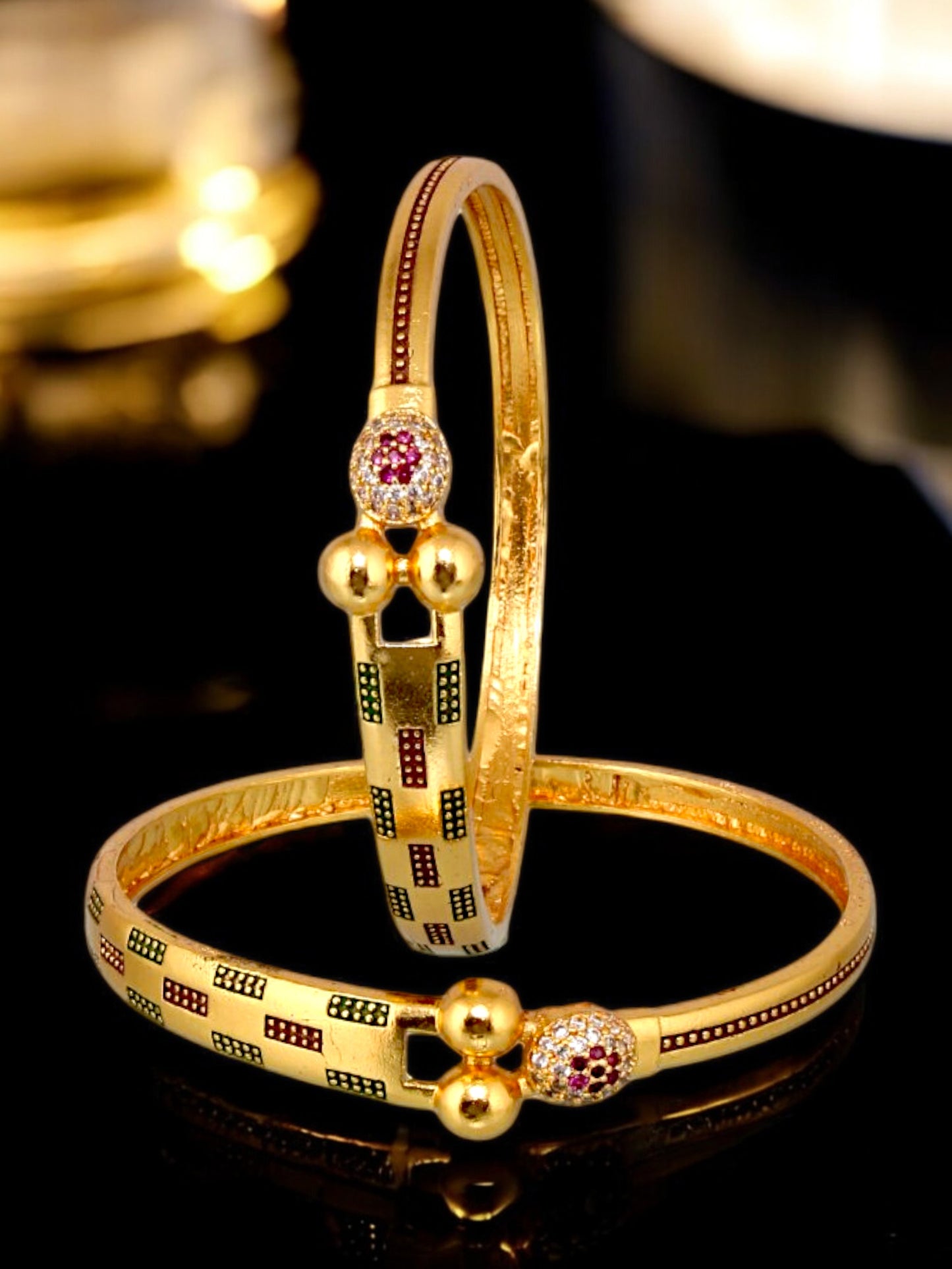 18k One Gram Gold Plated Traditional Designer Pack of 2 Bangle Set For Women