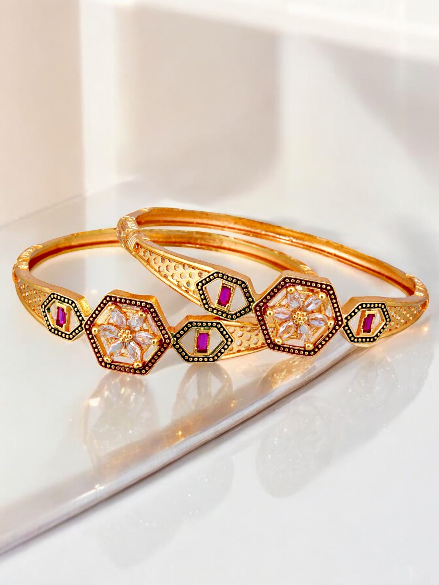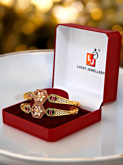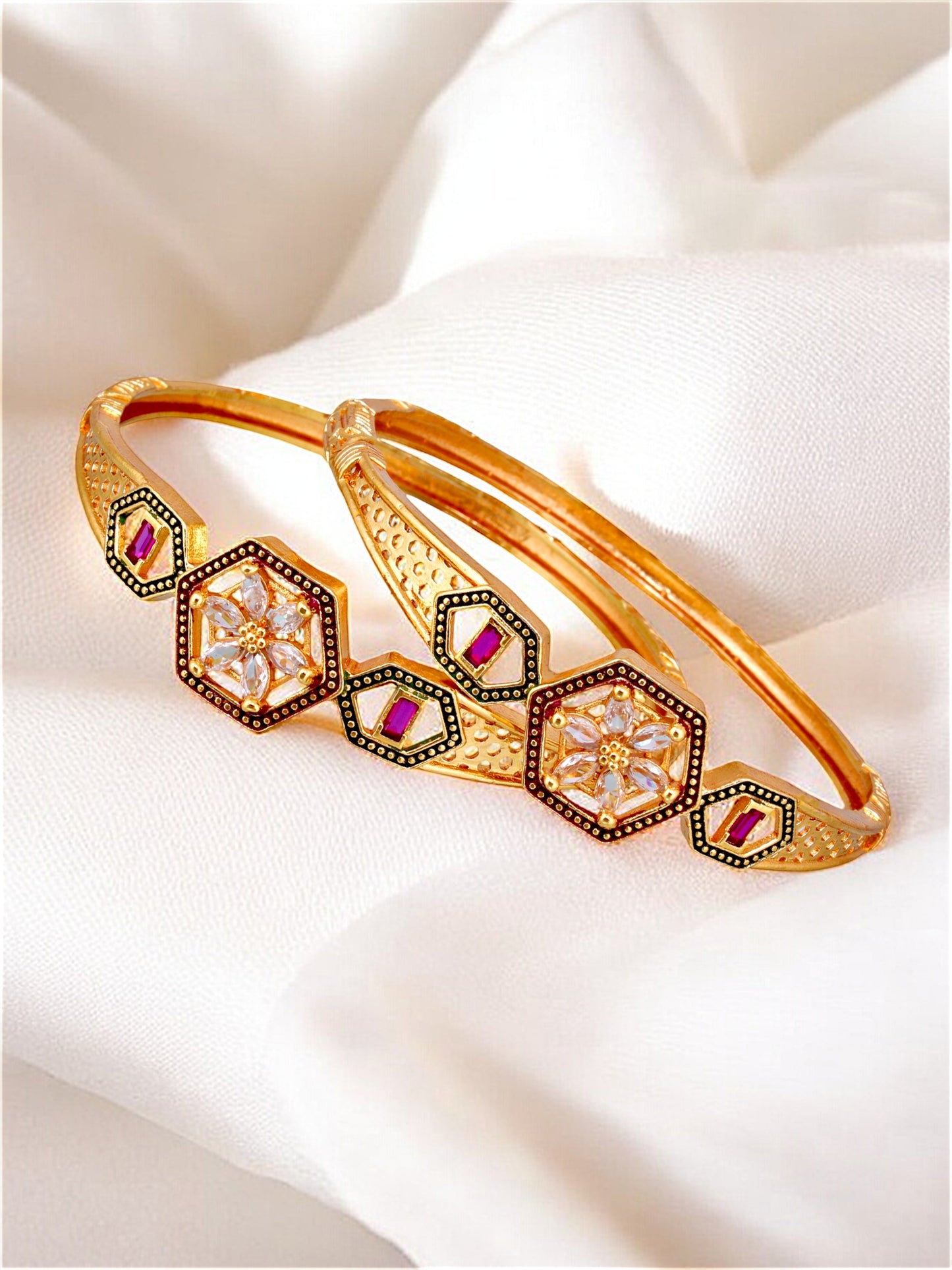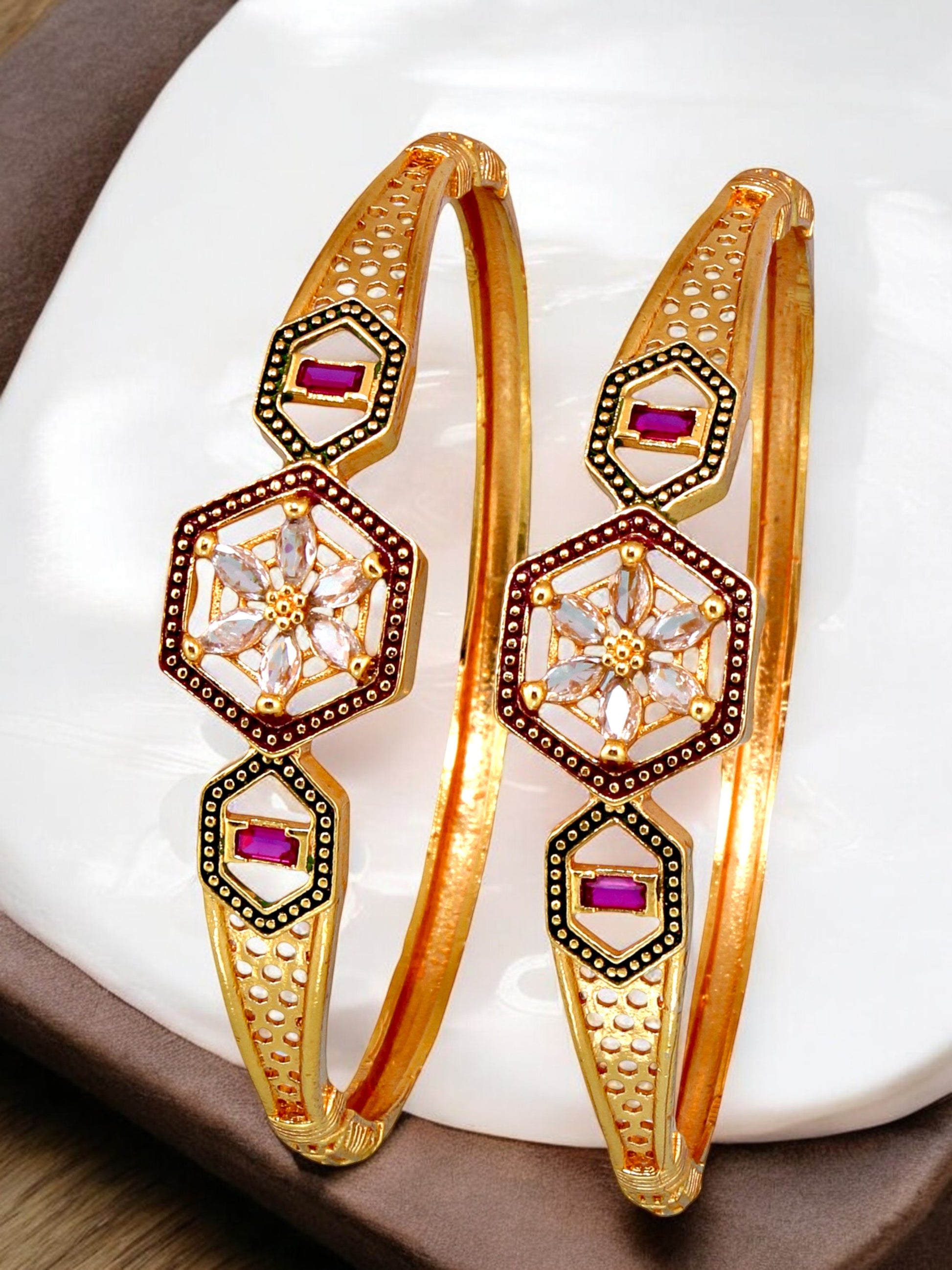 18k One Gram Gold Plated Traditional Designer Pack of 2 Bangle Set For Women