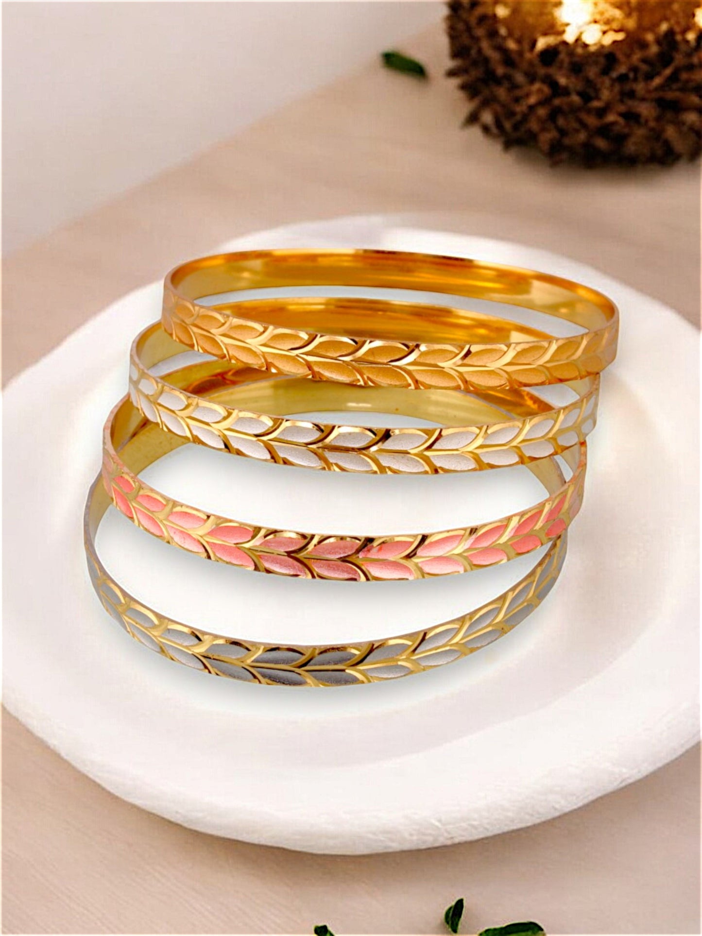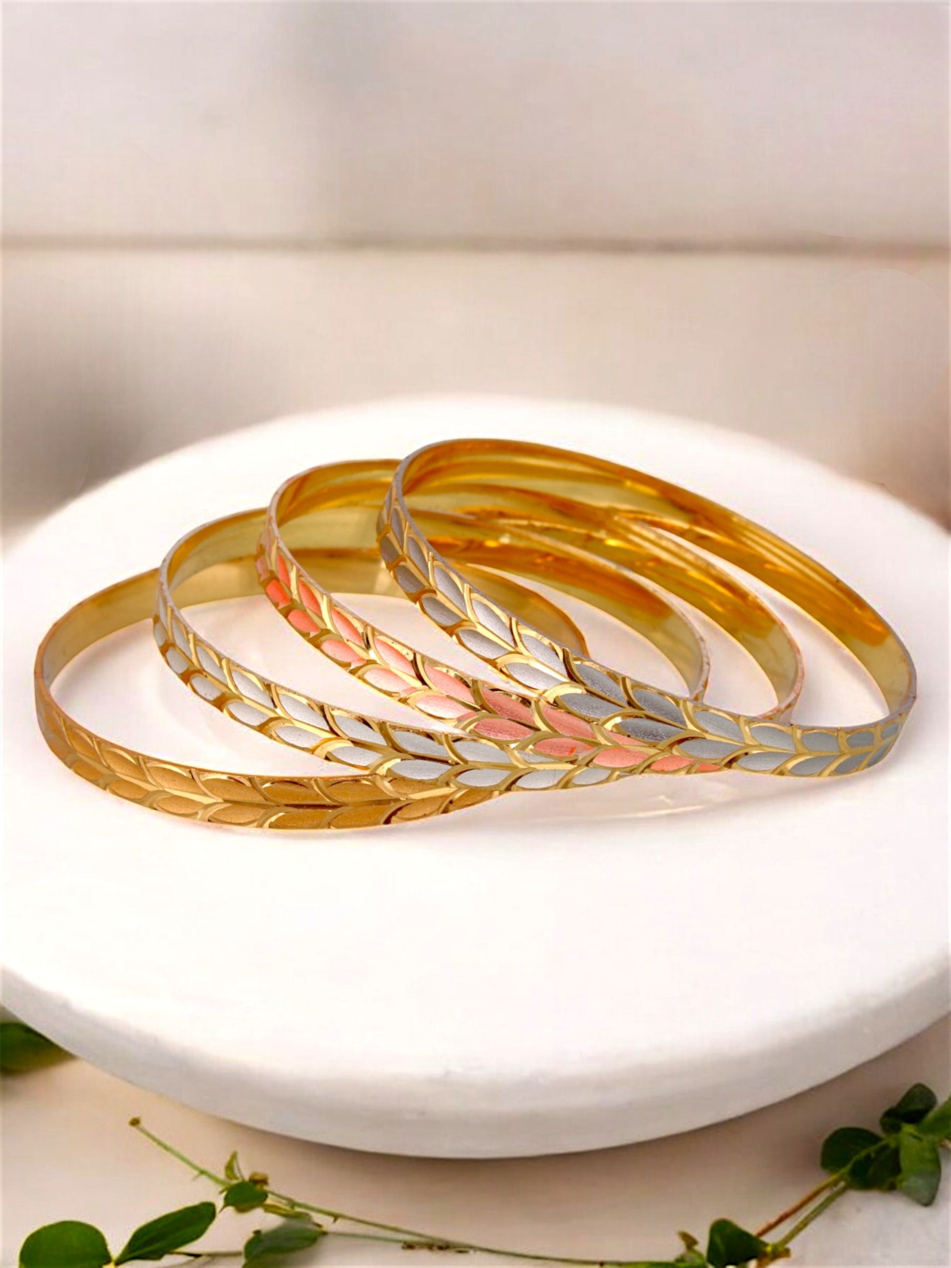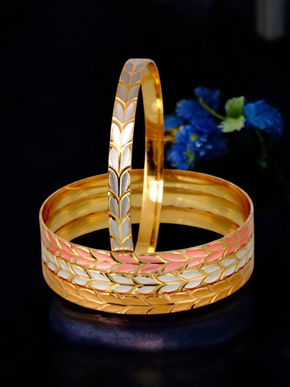 18k One Gram Gold Plated Traditional Designer Pack of 4 Bangle Set For Women