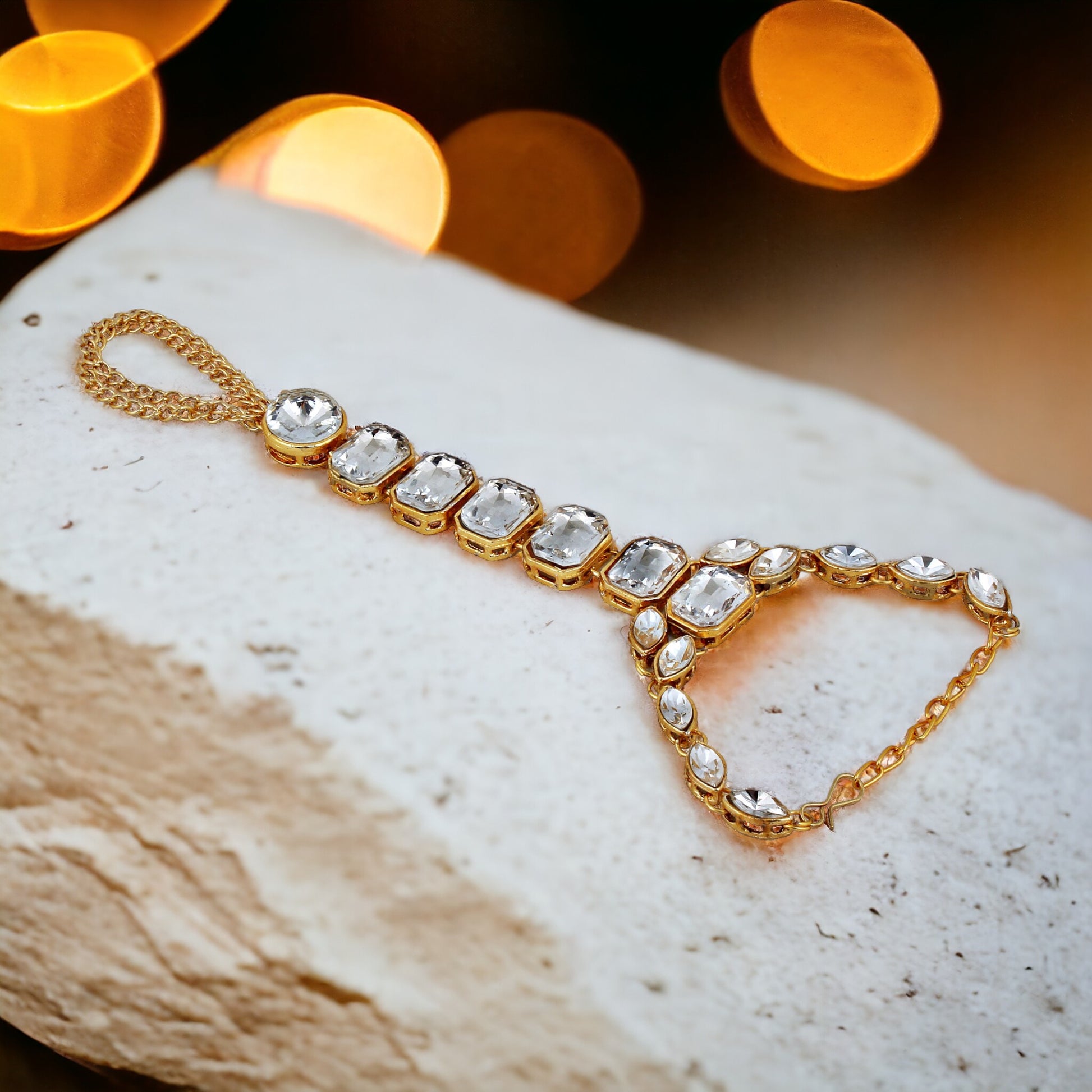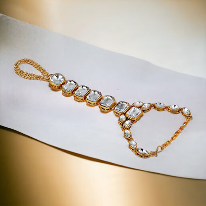 This beautiful gold toned Bracelet is handcrafted stones. This gorgeous hathphool with your bridal or wedding outfit to add a spark to your traditional look. This adjustable bracelet  wear is perfect for Girls & Women and it goes perfect with her ethnic wear/ Party Wear. This stone Bracelet gives your girl a princess look and best suited when she wear crown. This is perfect for Wedding, fancy dress competition, Birthday,Parties etc.  This piece of jewelry comes with the Lucky Jewellery assurance of quality and durability.