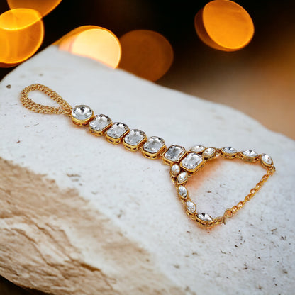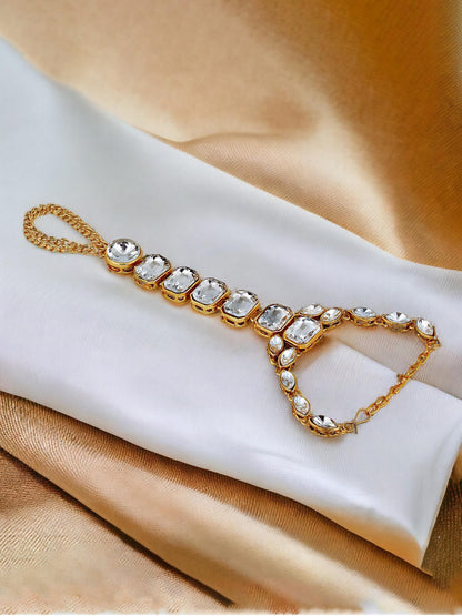 Lucky Jewellery Elegant White Color Gold Plated Finger Ring Bracelet Hand Harness Hathphool For Girls & Women
