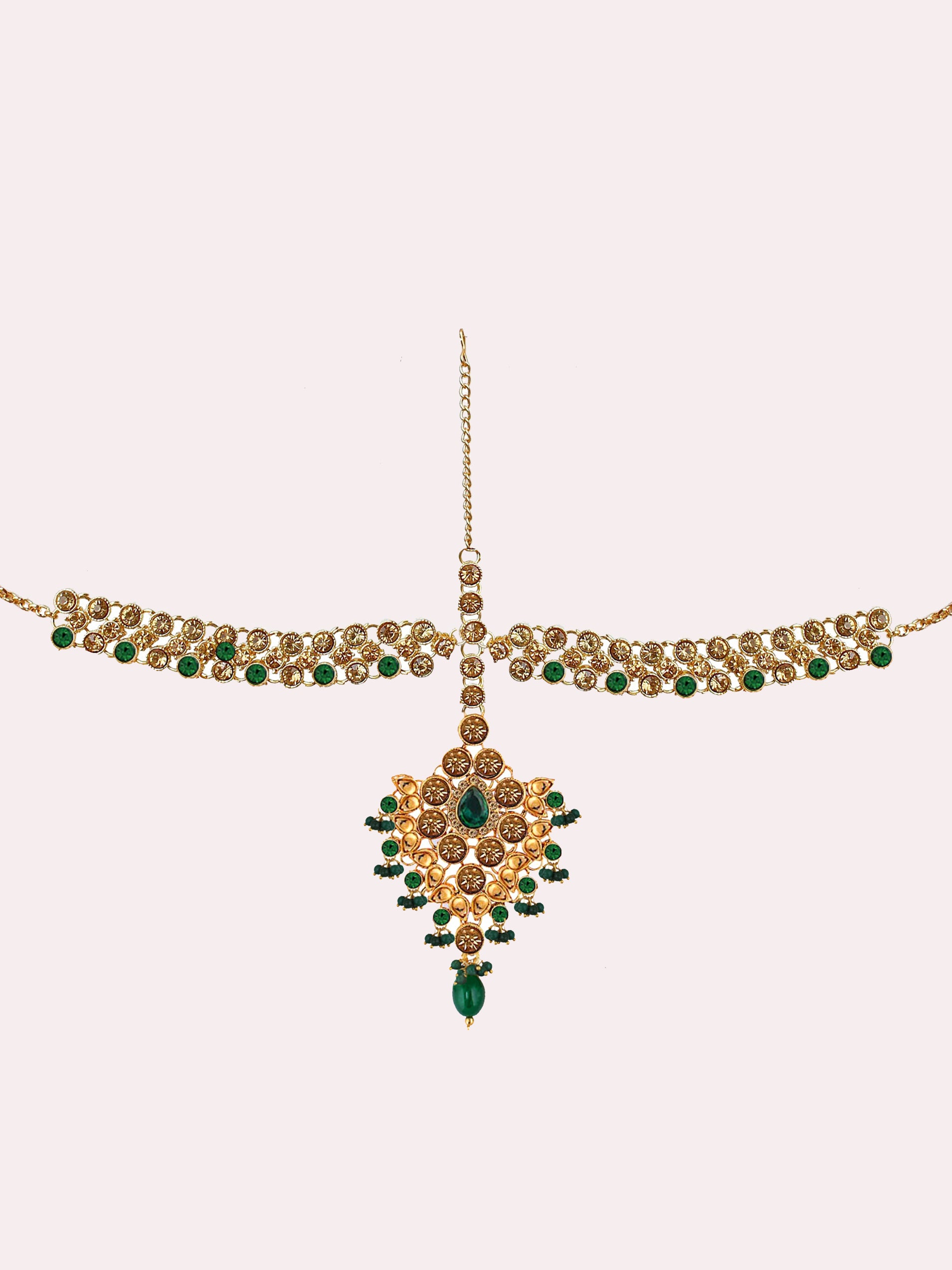 | Lucky Jewellery Wedding Designer Gold Plated Dulhan Bridal Set with sheeshpatti for Girls & Women |