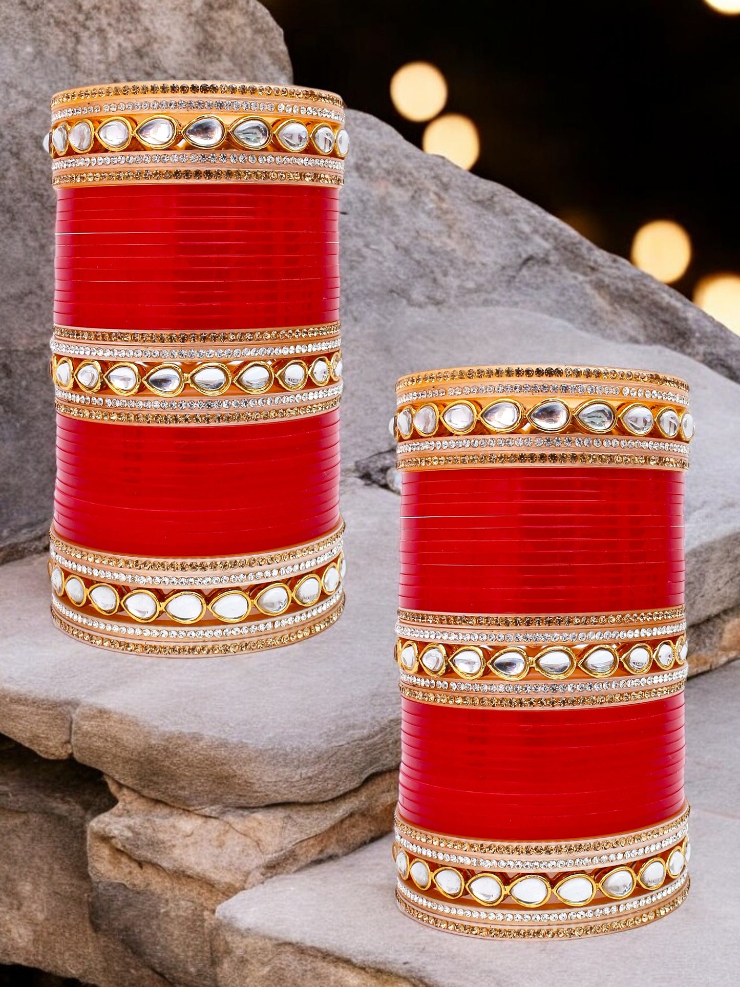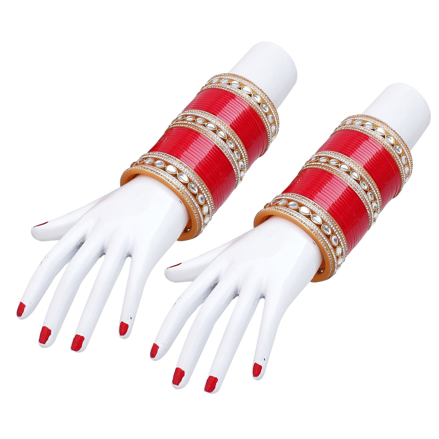 Lucky Jewellery Red White Kundan & Golden Stone Choora Bangle Set for Women