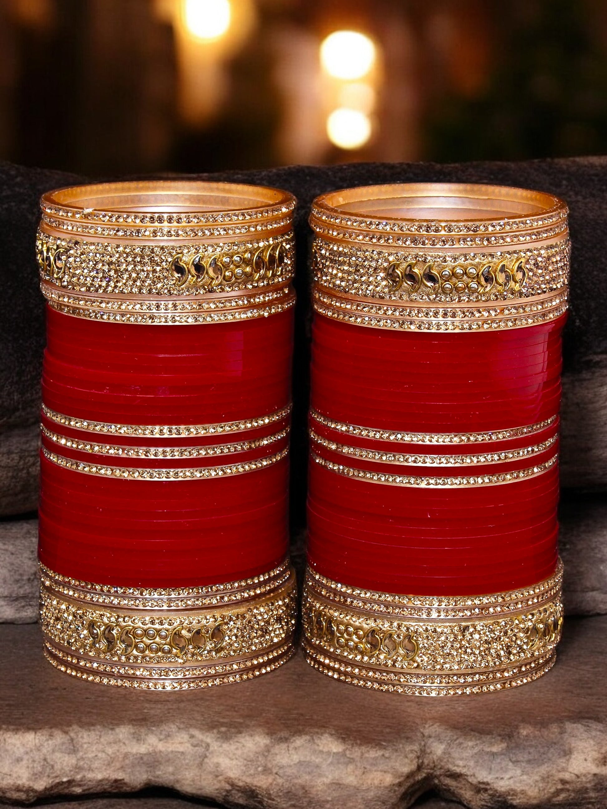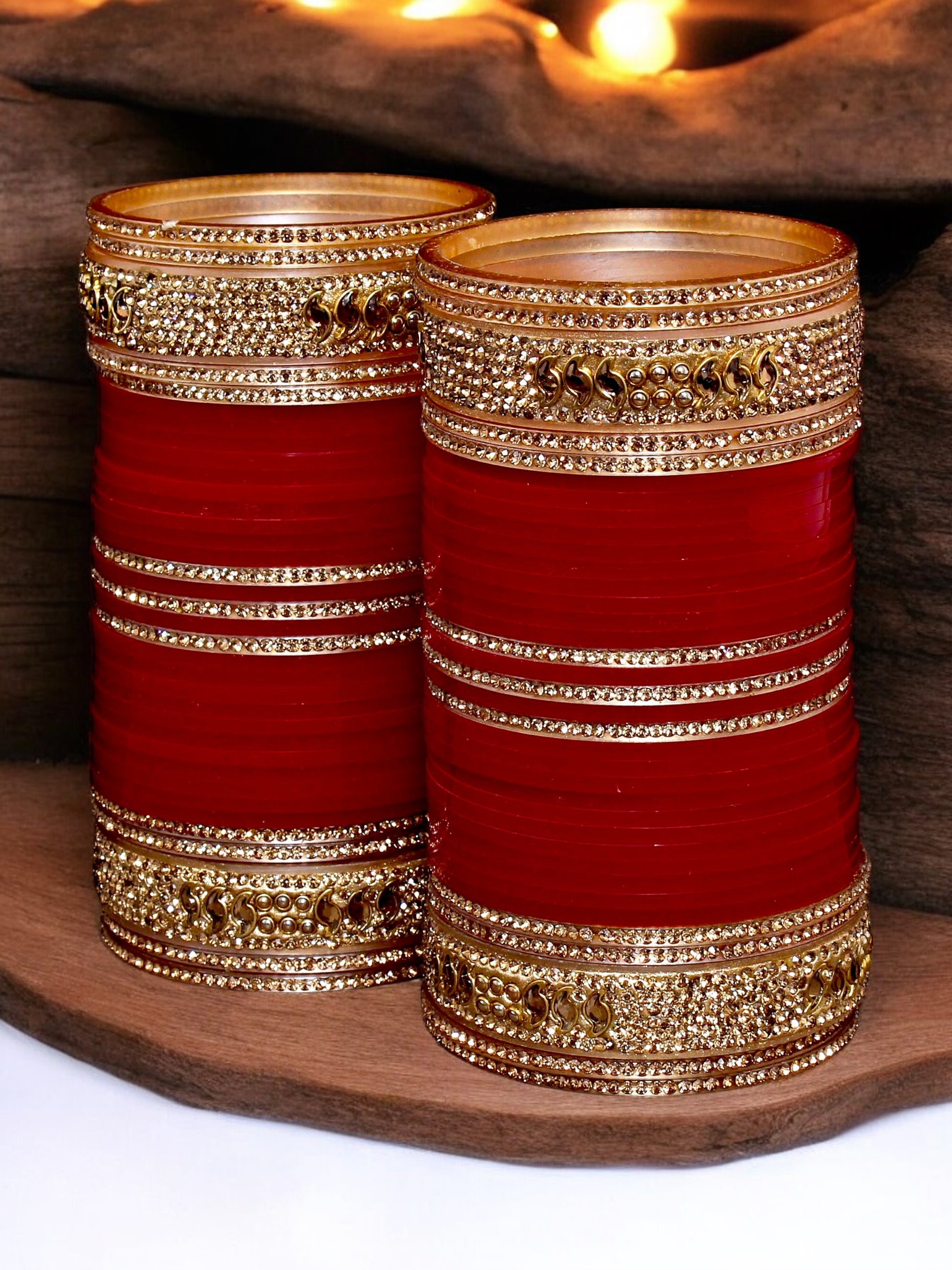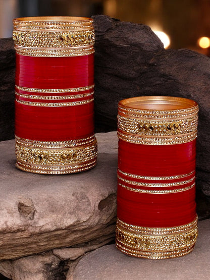 Lucky Jewellery Bridal Bangle Set Wedding Punjabi Chuda Designer Chura CZ Stone with Kundan Stone with Pearl Maroon Color Choora For Women Celebrate your special day with the timeless elegance of our Bridal Punjabi Chura. This stunning set of traditional red bangles, adorned with intricate, symbolizes prosperity and marital bliss. Each bangle is crafted with meticulous attention to detail, blending classic artistry with modern flair to create a truly unique accessory. Perfectly capturing the essence of Punjabi heritage, this chura will not only enhance your bridal ensemble but also serve as a cherished keepsake of your beautiful journey. Make an admirable gift for your Mother, Sister, Wife and Girlfriend. | Ideal For Party, Office & Daily Wear | Can Be Used On Birthday, Marriage, Engagement, Shadi Any Occassion. |