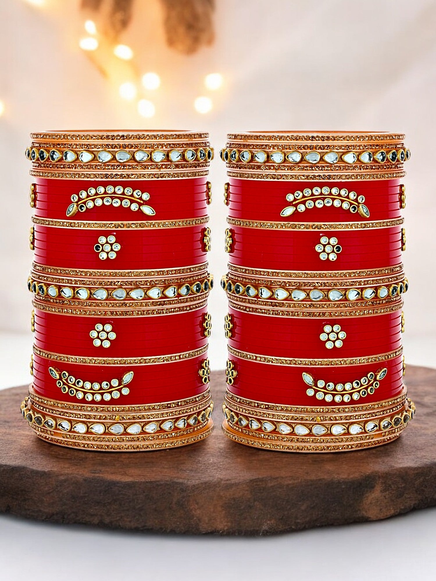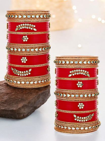 Lucky Jewellery Bridal Bangle Set Red Designer Chura Wedding Punjabi Choora Fashion Jewellery Chuda For Women Celebrate your special day with the timeless elegance of our Bridal Punjabi Chura. This stunning set of traditional red bangles, adorned with intricate, symbolizes prosperity and marital bliss. Each bangle is crafted with meticulous attention to detail, blending classic artistry with modern flair to create a truly unique accessory. Perfectly capturing the essence of Punjabi heritage, this chura will not only enhance your bridal ensemble but also serve as a cherished keepsake of your beautiful journey. Make an admirable gift for your Mother, Sister, Wife and Girlfriend. | Ideal For Party, Office & Daily Wear | Can Be Used On Birthday, Marriage, Engagement, Shadi Any Occassion. |
