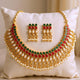 • Elegant gold plated beaded choker necklace with matching earrings, perfect for festive occasions and party wear