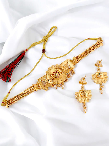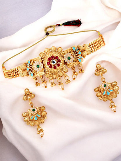 Gold-Plated Meenakari Guluband Choker Necklace with Earrings for Women & Girls (396-G2SR-2079-RPKF)