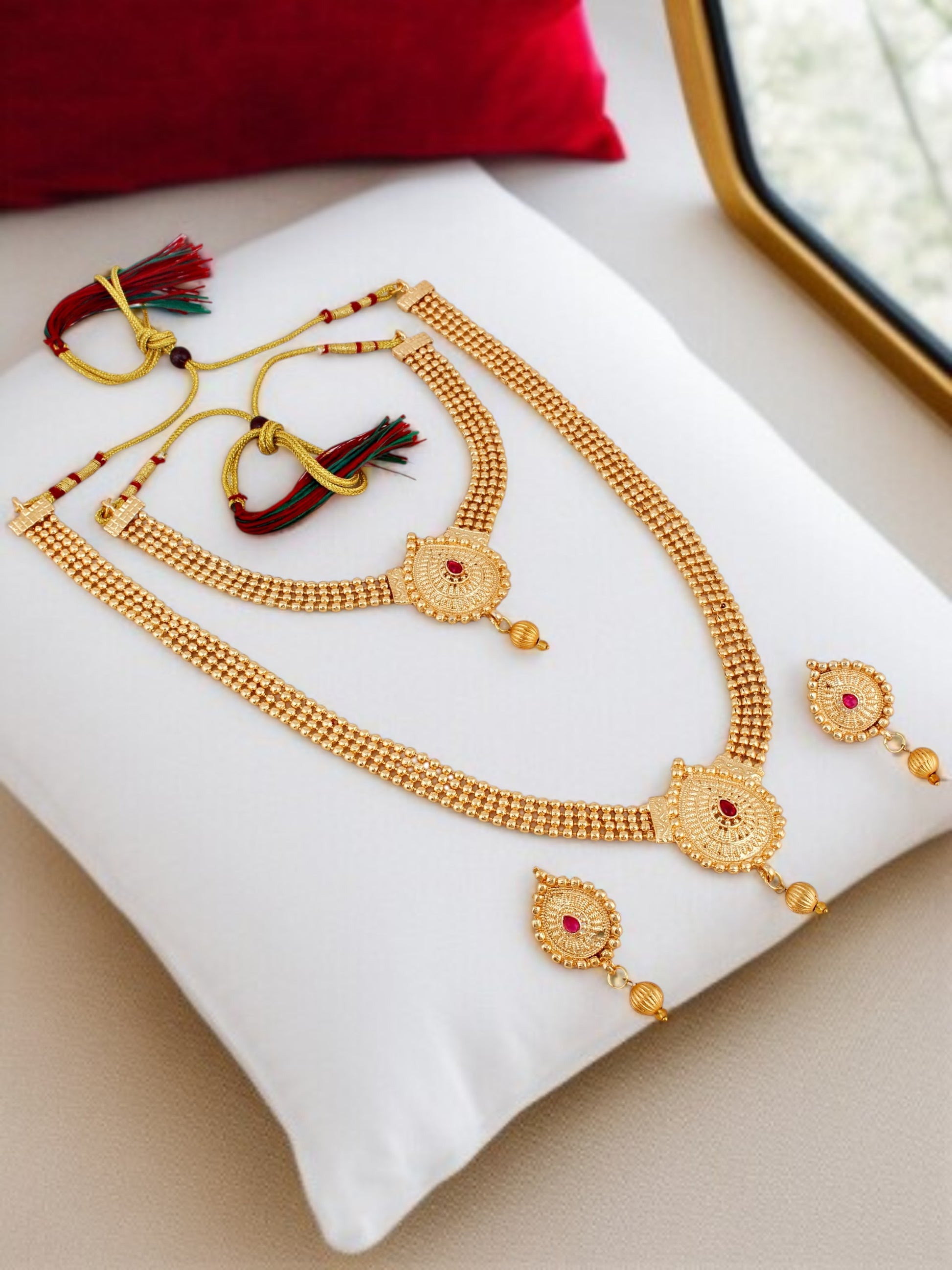 Gold Plated Traditional Double Necklace Set with Earrings For Women & Girls (330-PSX-2096-R)