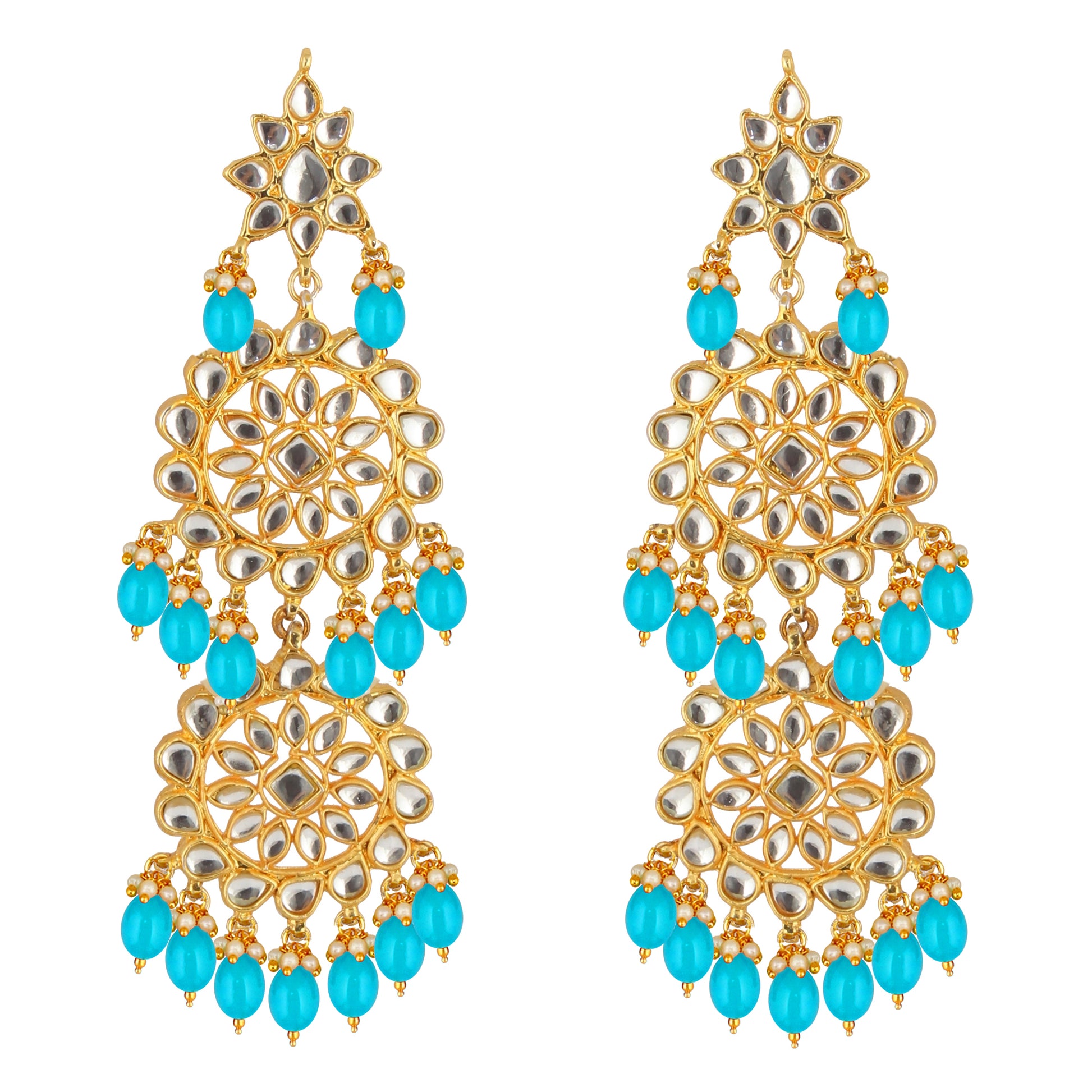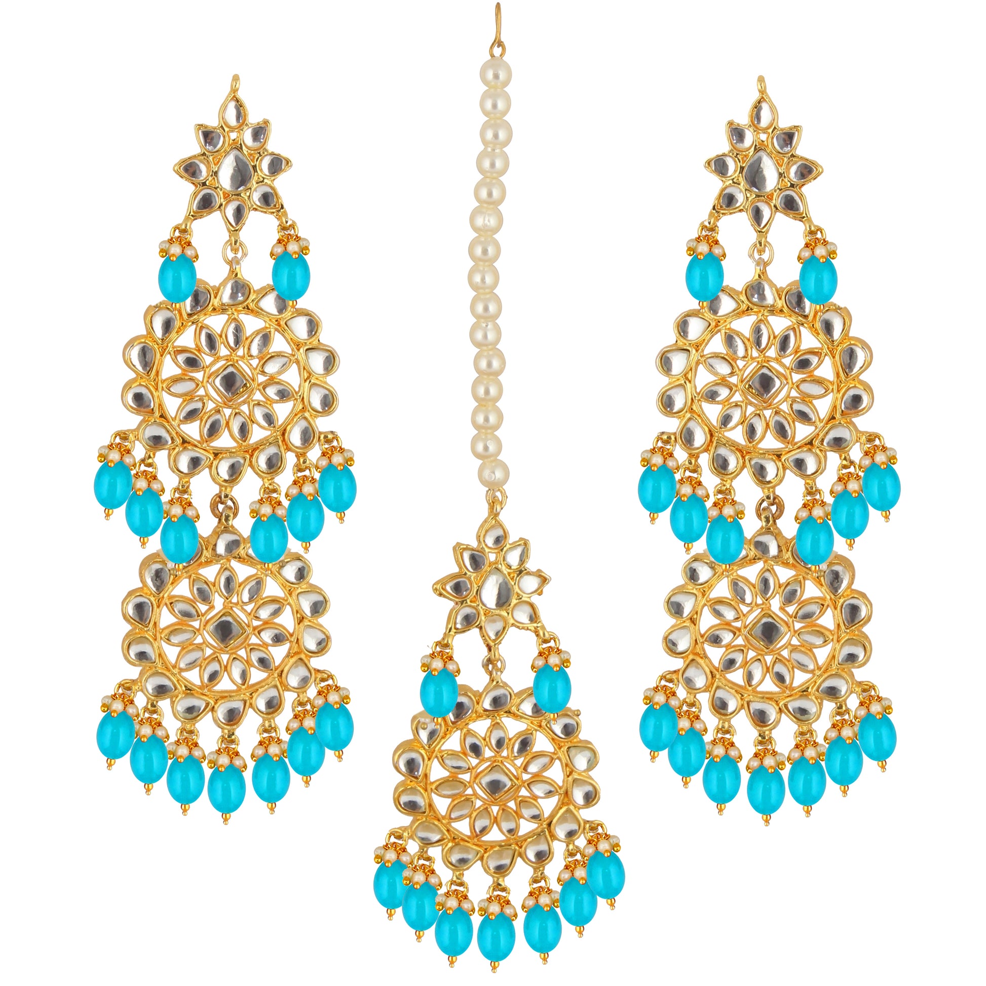 LUCKY JEWELLERY Designer Gold Plating Firoji Color Pearl with Kundan Choker Bridal Dulhan Necklace Set For Girls & Women Elevate your style with our gorgeous Kundan and Pearl Long Necklace Set, including earrings and a forehead ornament (Mang Tikka), perfect for the modern woman who loves a touch of tradition. This set is all about blending classic and contemporary styles. The necklace sits beautifully on your neck, decorated with shiny pearls and Kundan stones. It's a real eye-catcher! And don't forget the matching earrings that frame your face elegantly. They're just as stunning as the necklace, with pearls and Kundan stones that shimmer and shine. To top it all off, the Mang Tikka adds a special touch to your look. It's like the cherry on top, completing your ensemble with its own pearls and Kundan stones. Whether you're going to a wedding, a party, or just want to feel extra special, our Kundan and Pearl Long Necklace Set with Earrings and Mang Tikka will make you stand out in style!